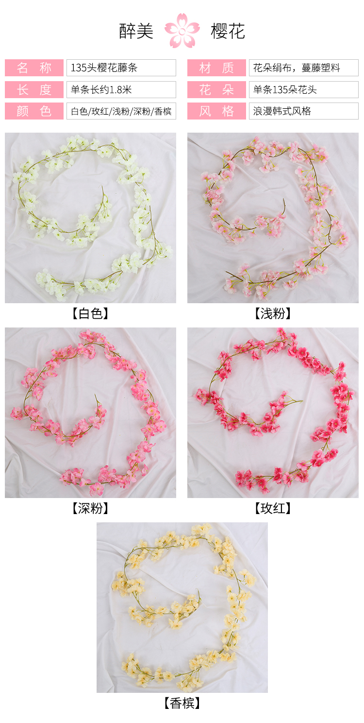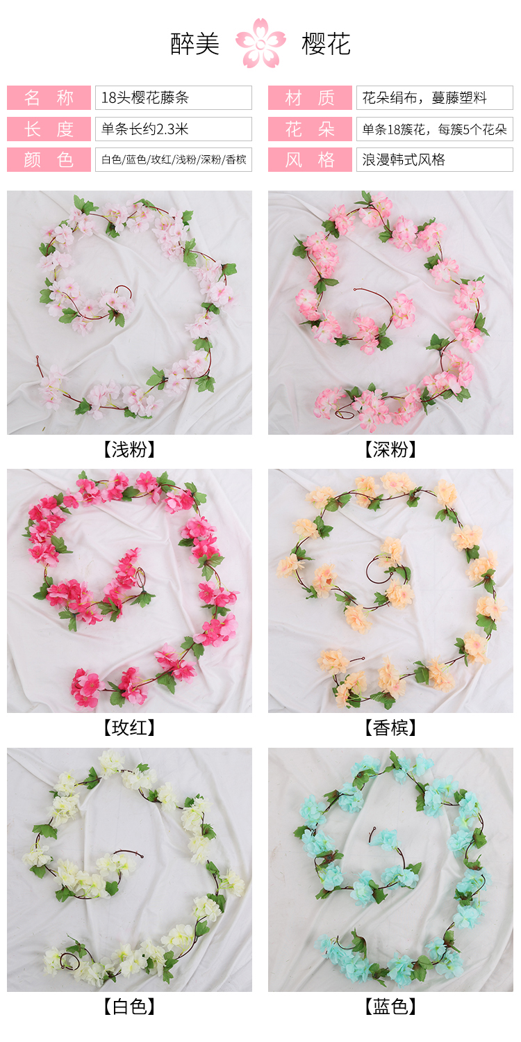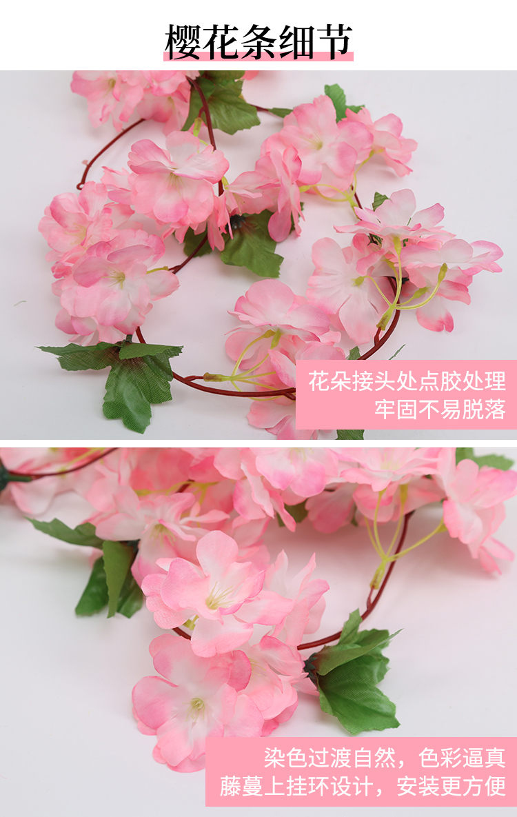 仿真樱花花藤空调暖气管道房顶吊顶室内装饰塑料假花藤条拱门缠绕