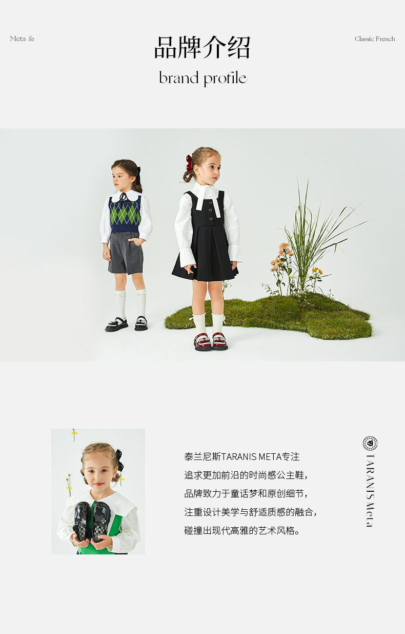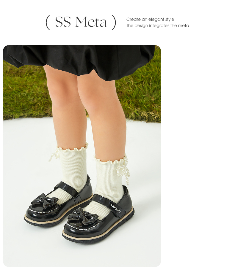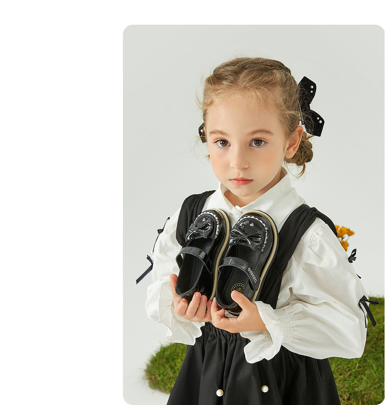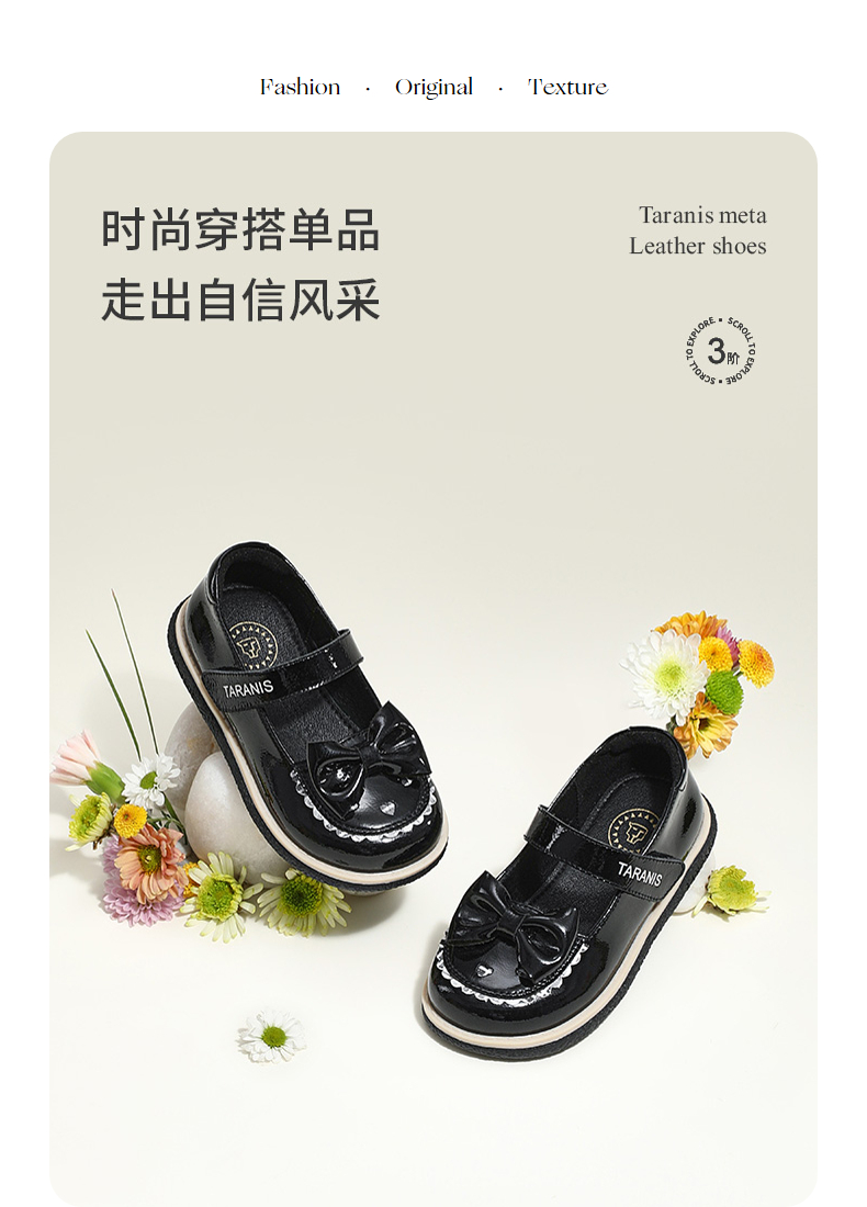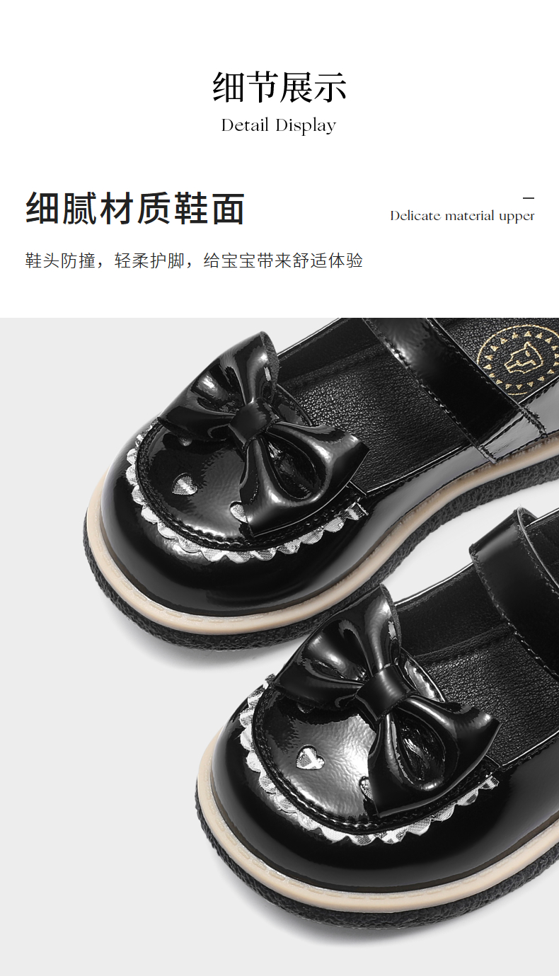 泰兰尼斯meta女童皮鞋春秋季儿童鞋女宝宝软底演出小黑鞋公主单鞋