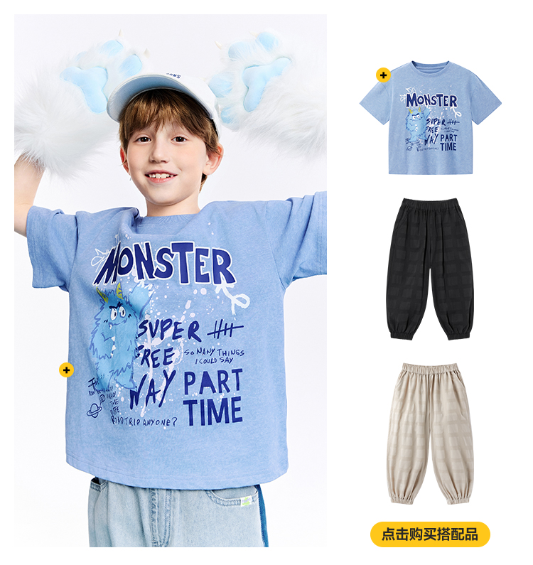 太平鸟童装儿童裤子夏季纯棉束脚肌理长裤男童轻薄长裤潮
