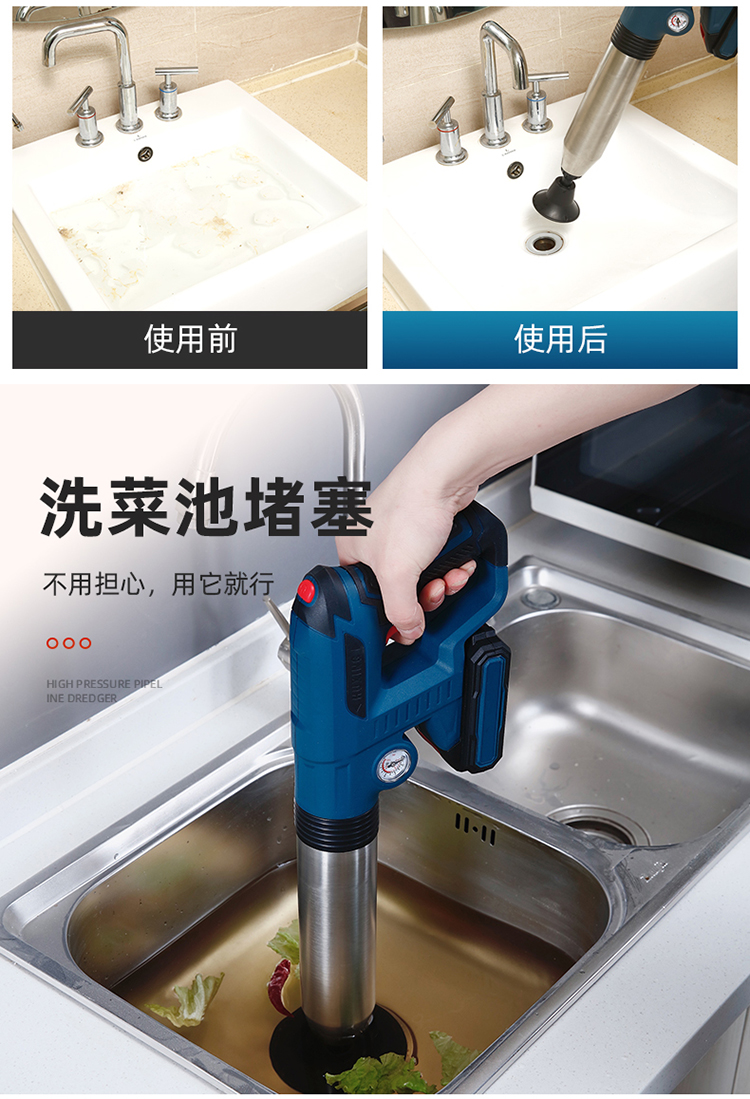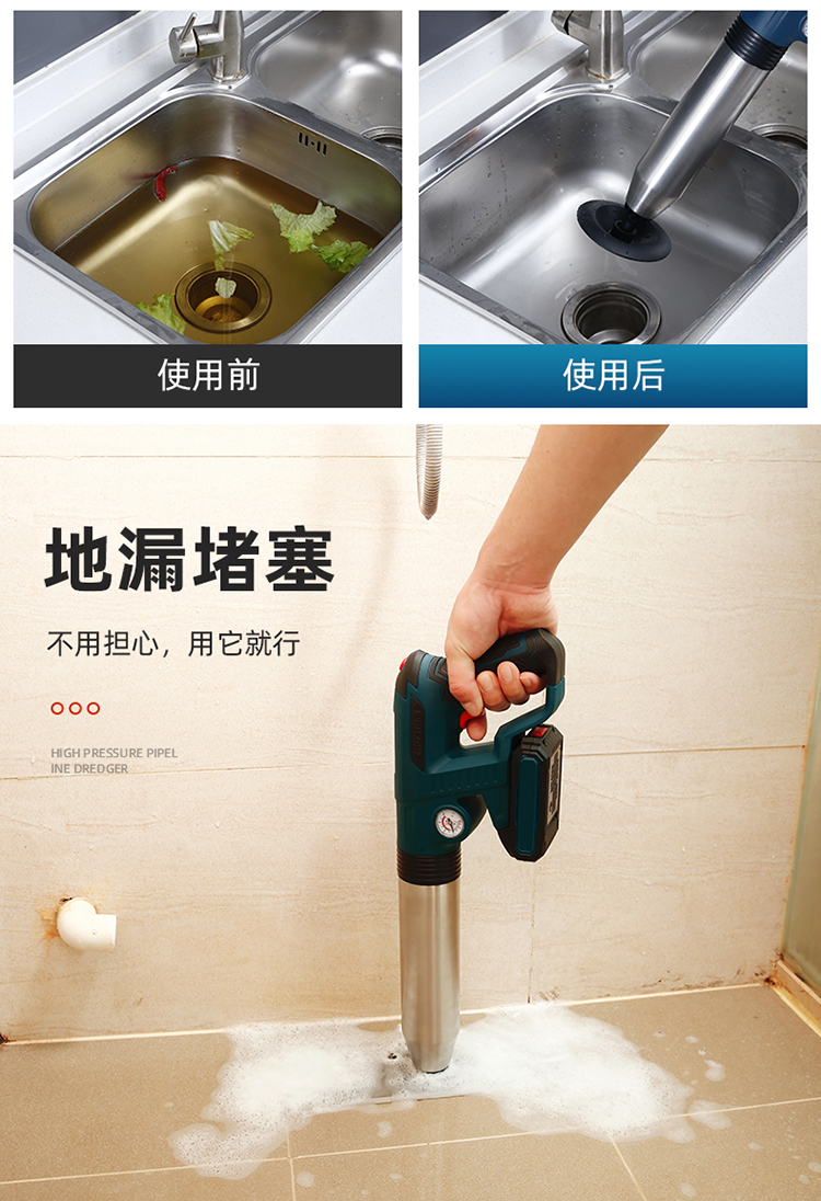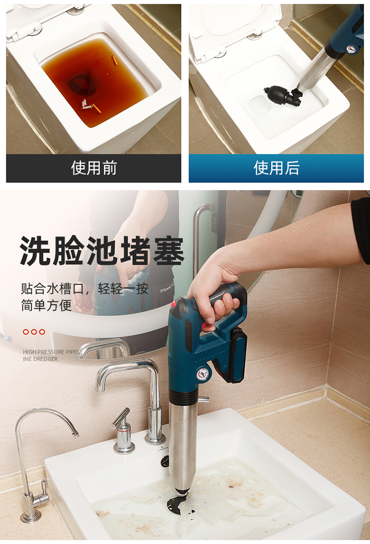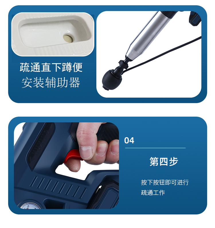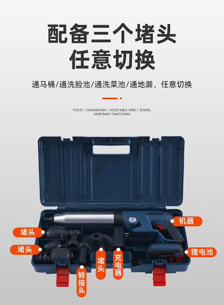 虎行电动下水道疏通神器一炮通马桶厕所家用厨房疏通器卫生间地漏
