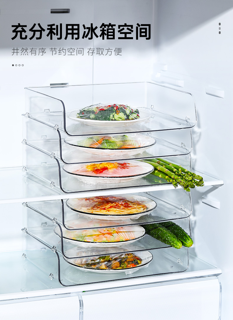冰箱分层剩菜盘子置物架肉菜碟盘冷藏收纳架自由叠加冰柜隔板透明
