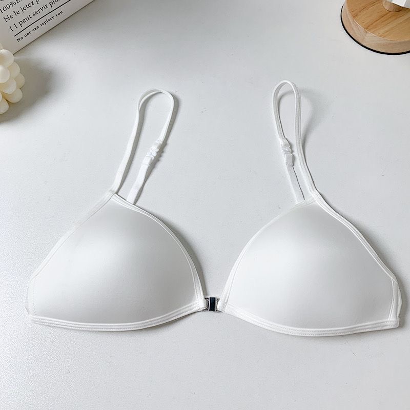 前扣内衣女无钢圈小胸聚拢法式三角杯性感美背薄款挂脖无痕文胸