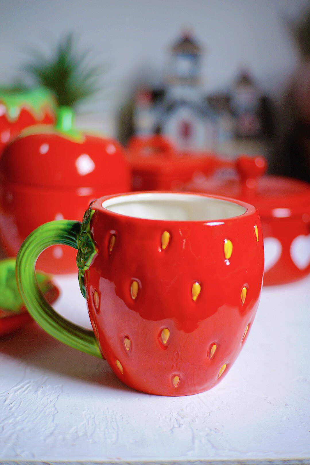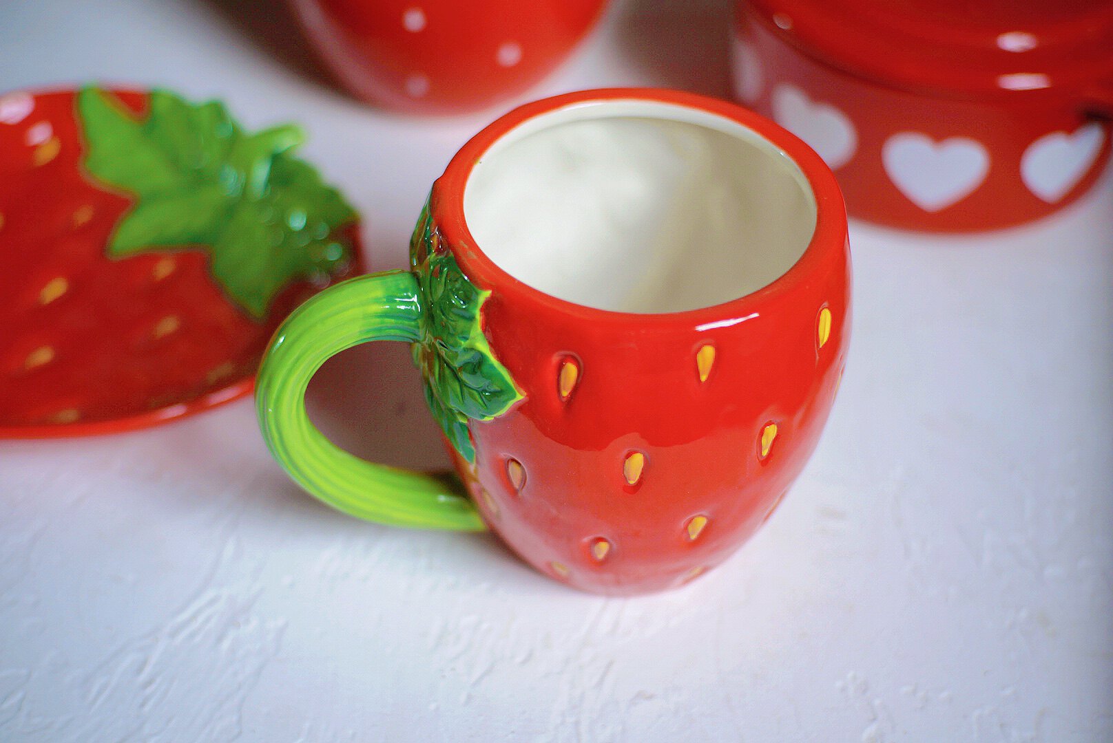 草莓心形双皮奶碗甜品带盖焗饭碗烤箱陶瓷盅布丁宝宝蒸蛋烘焙餐具