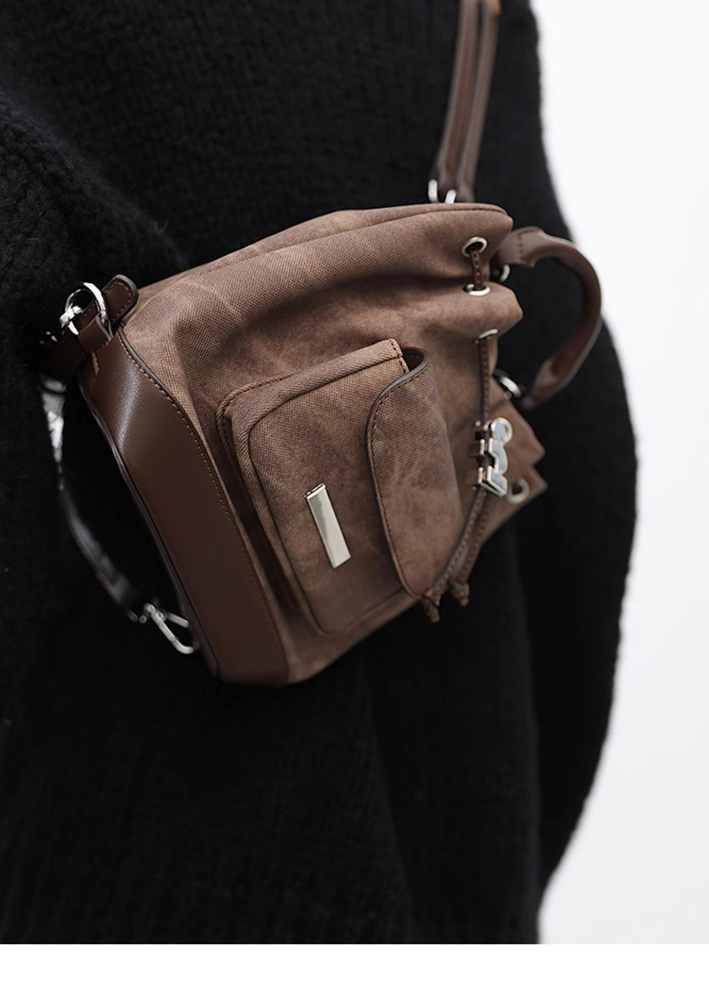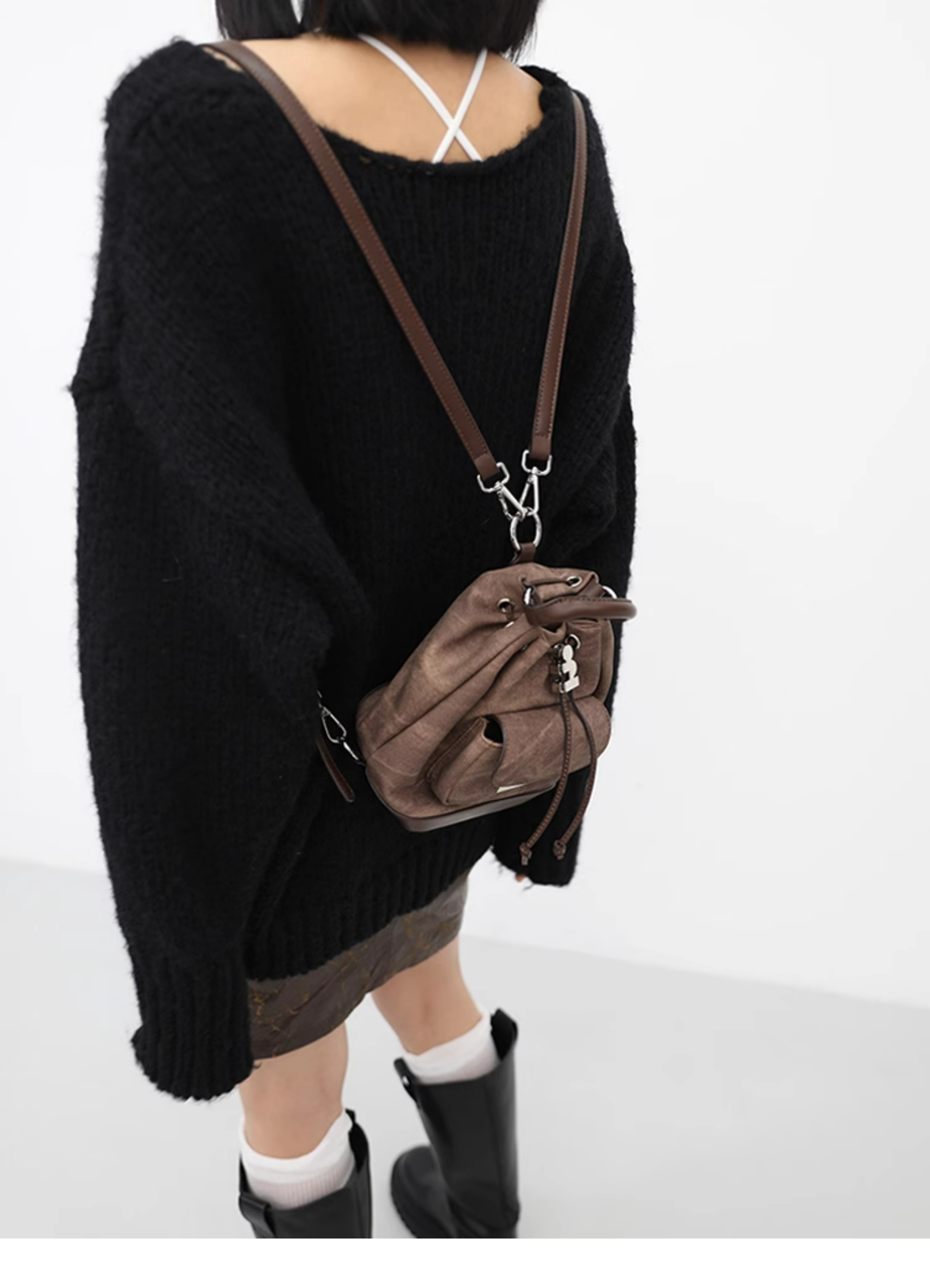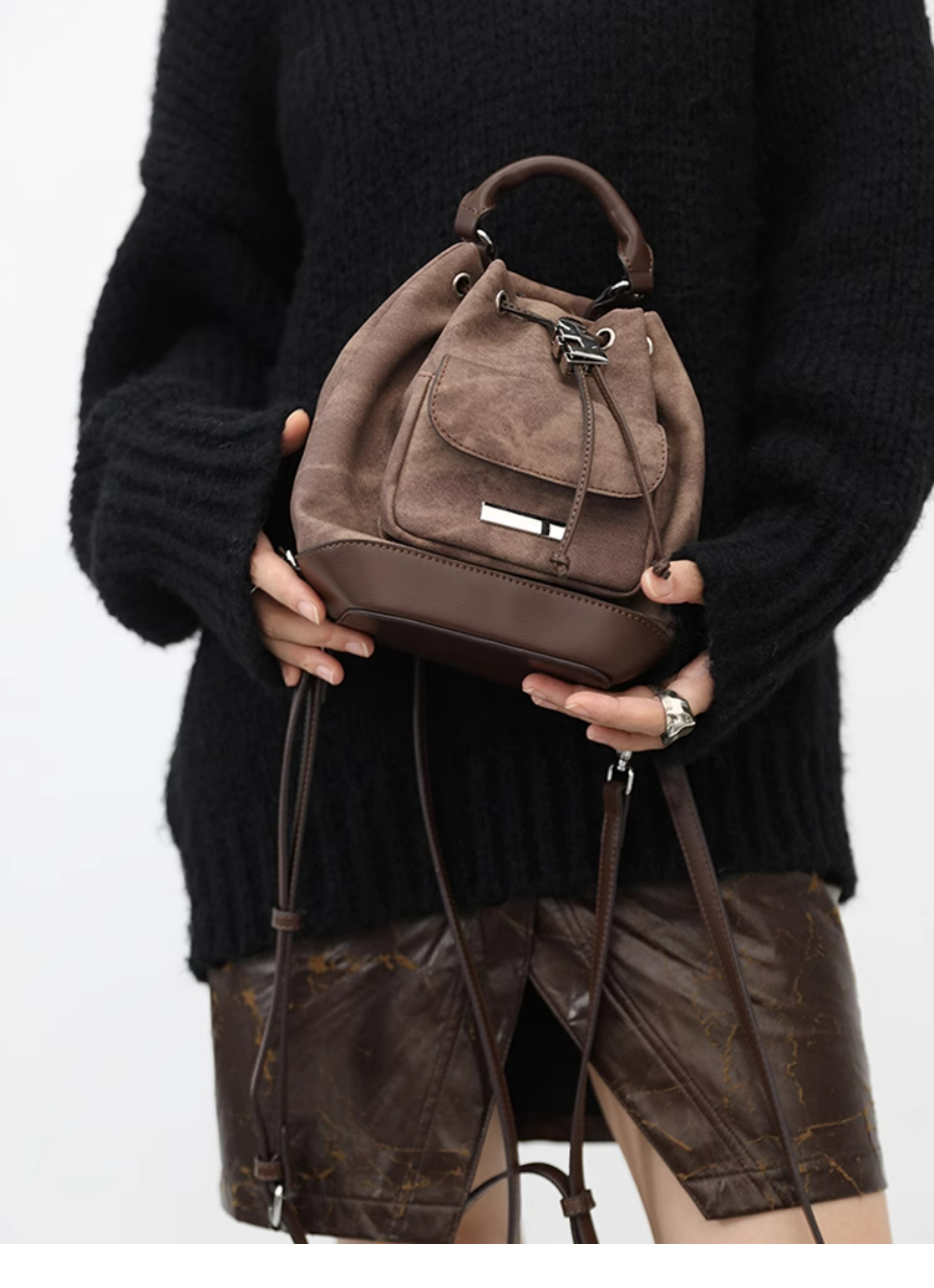 简着 /原创 罗卡小背包沙丘棕色 3用·斜挎/双肩/手提 迷你水桶包