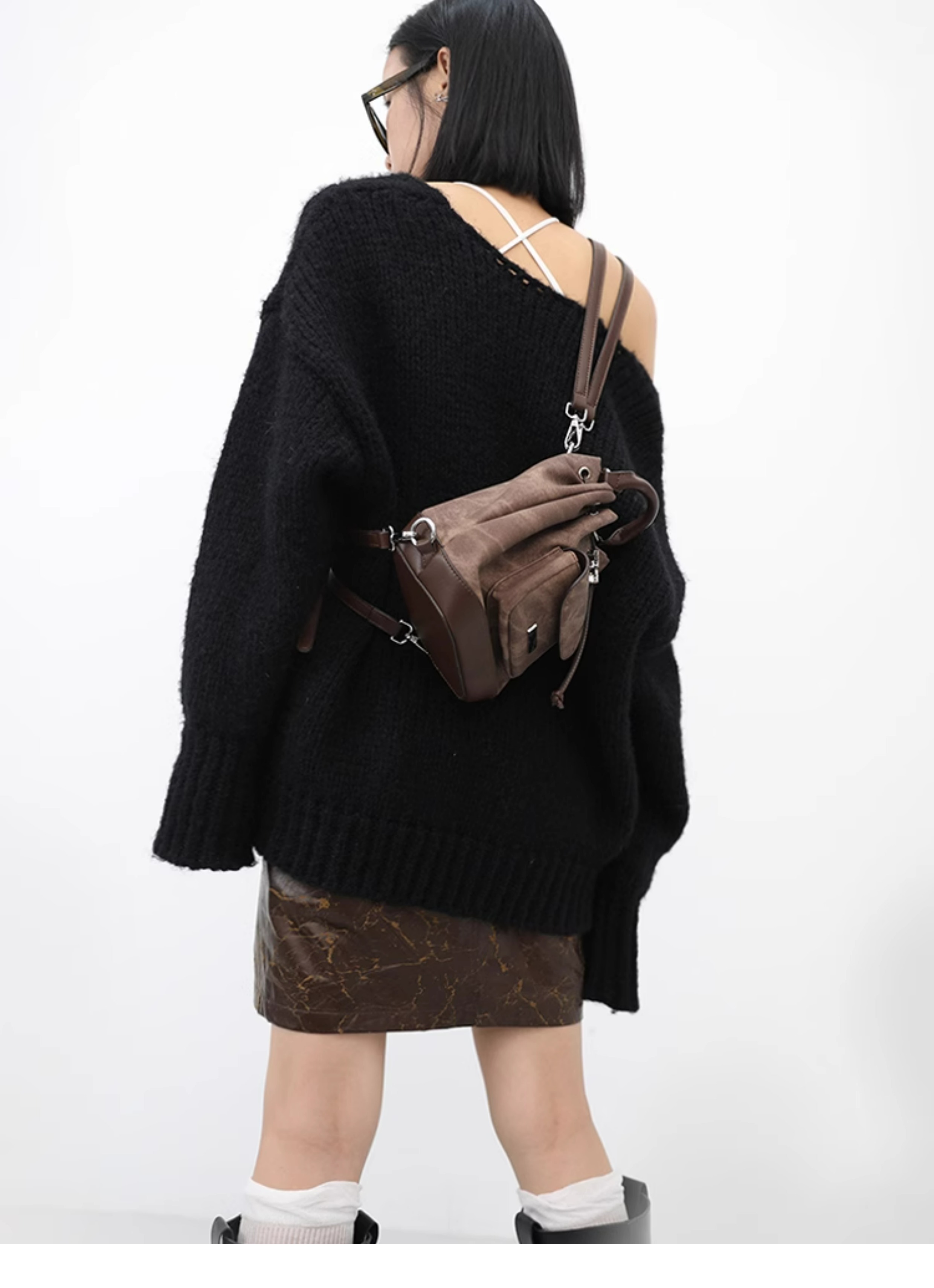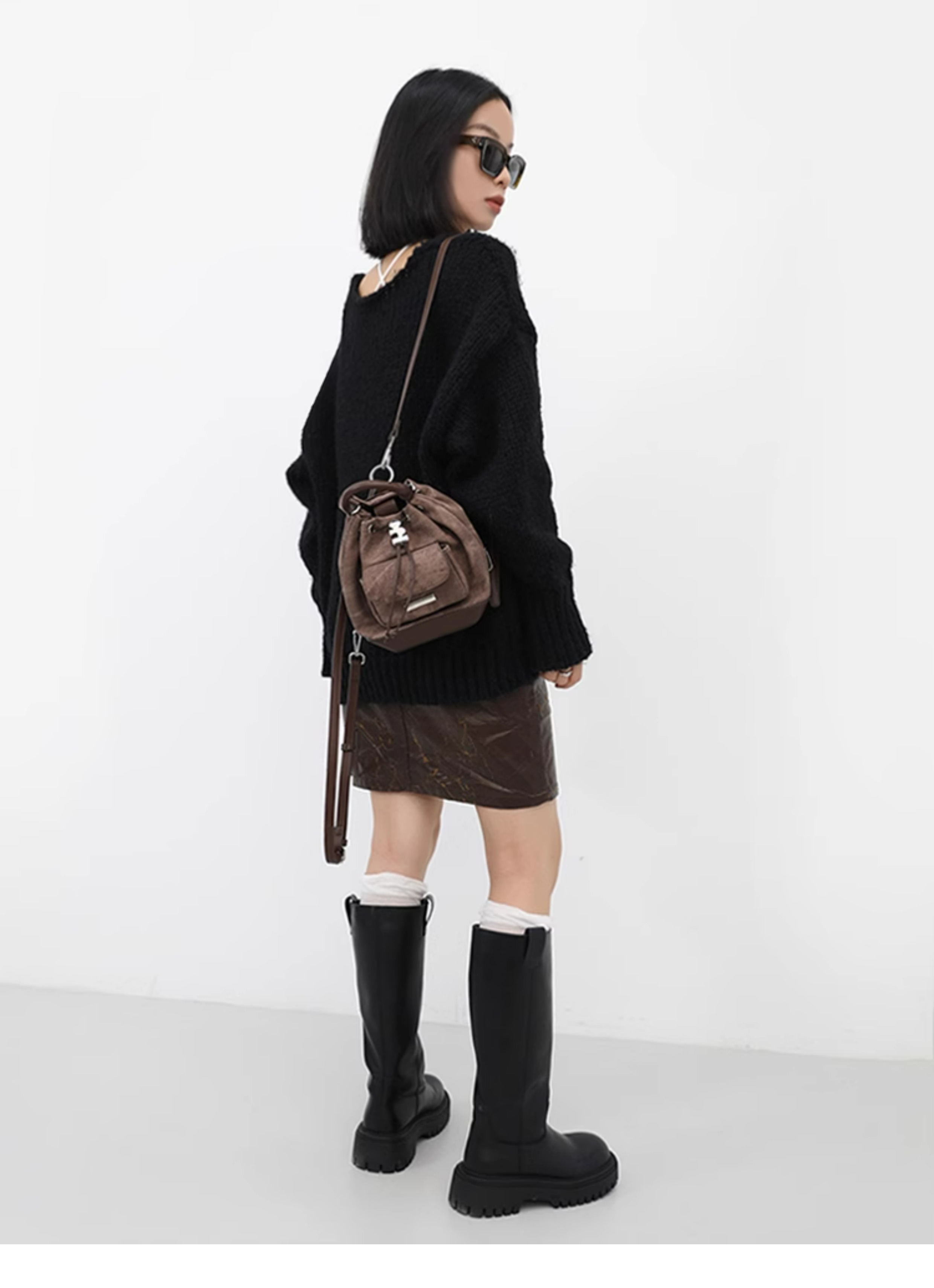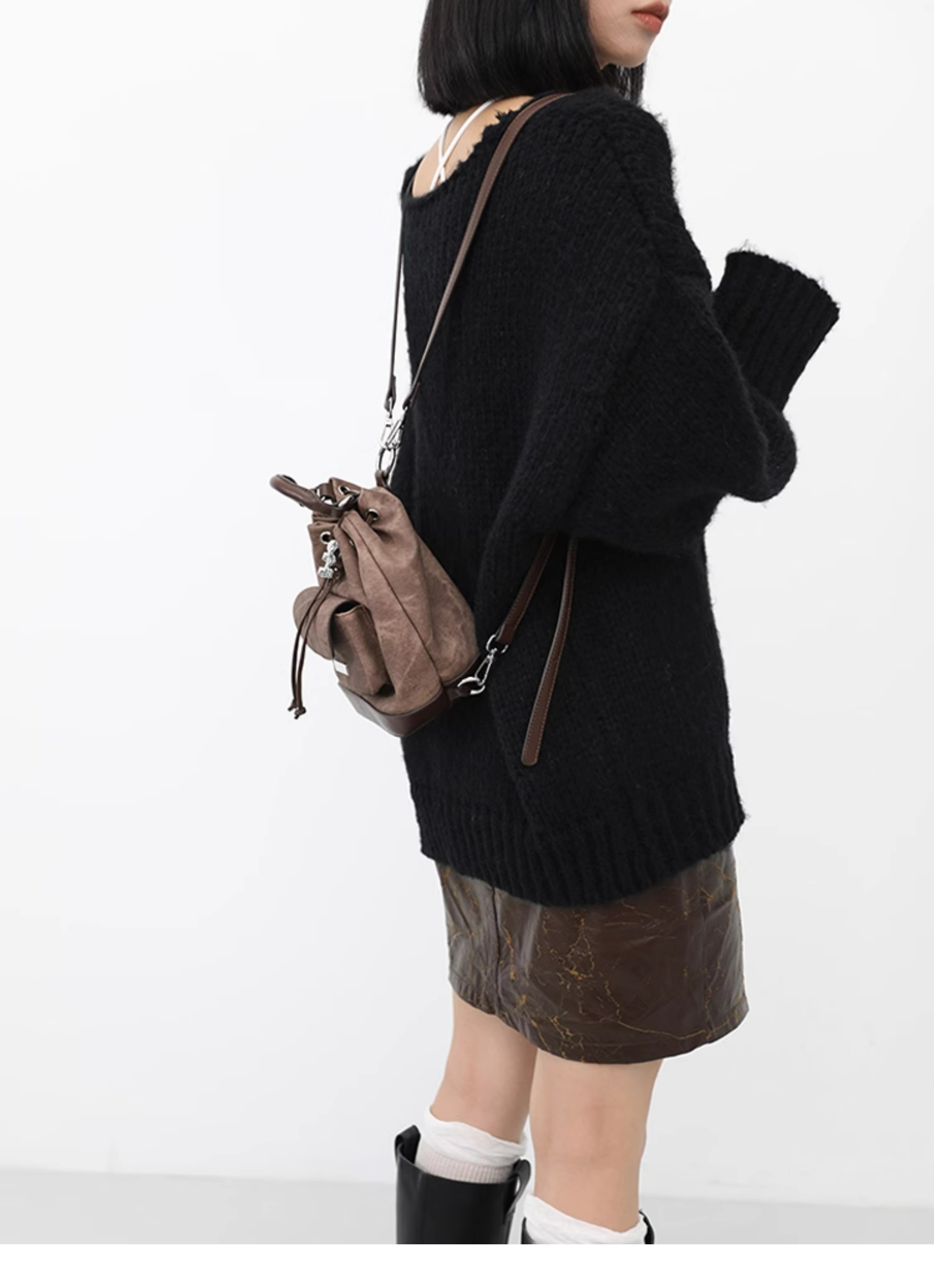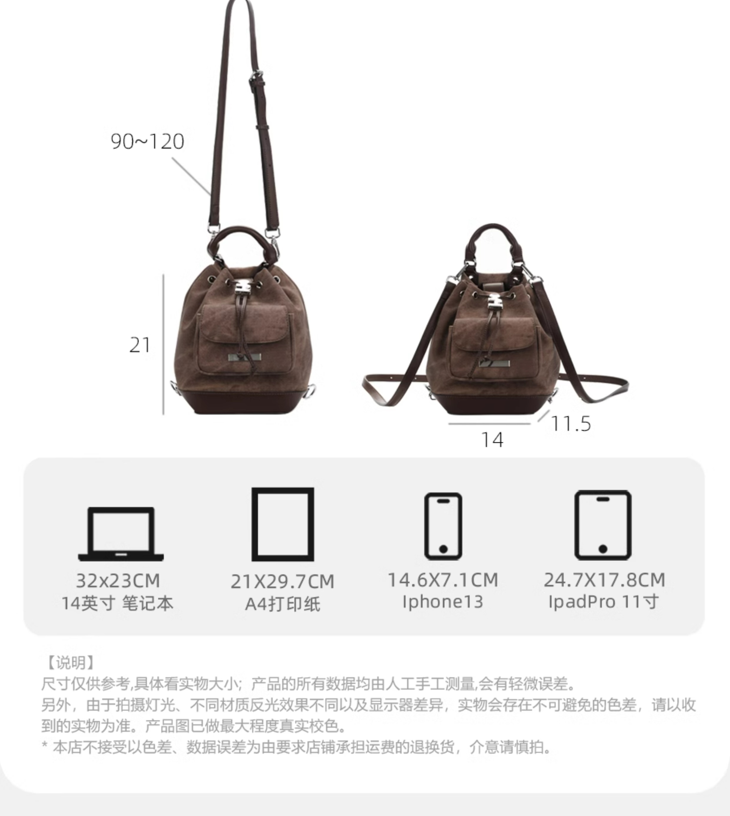 简着 /原创 罗卡小背包沙丘棕色 3用·斜挎/双肩/手提 迷你水桶包