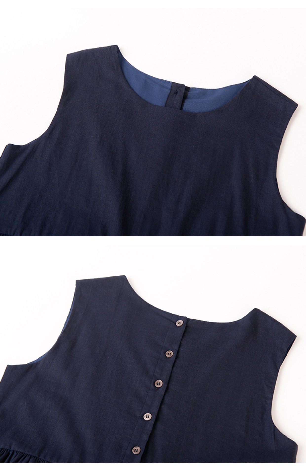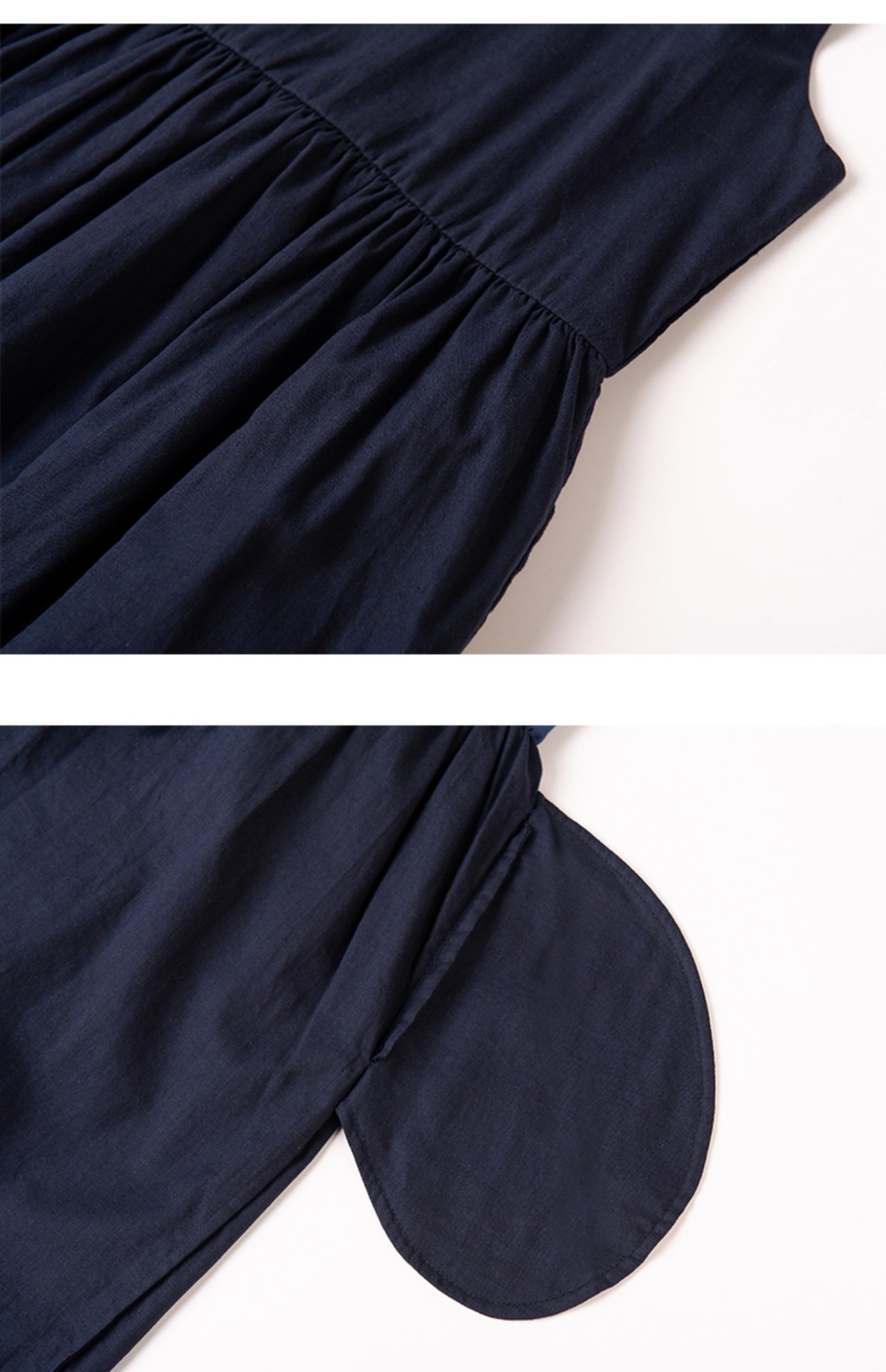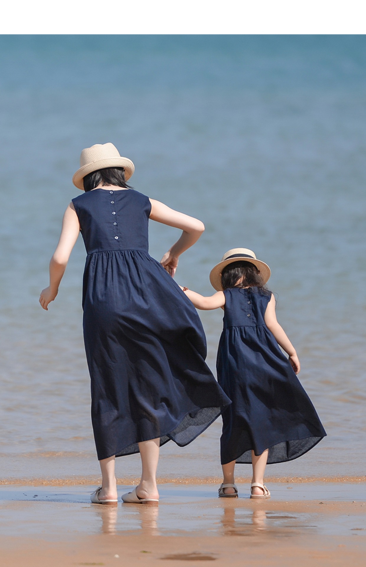 小乐往亲子装103 夏度假深蓝棉清新文艺女童姐妹显瘦连衣裙母女装