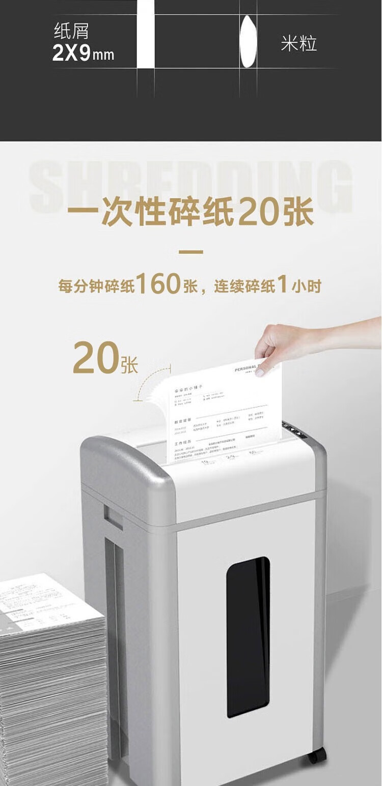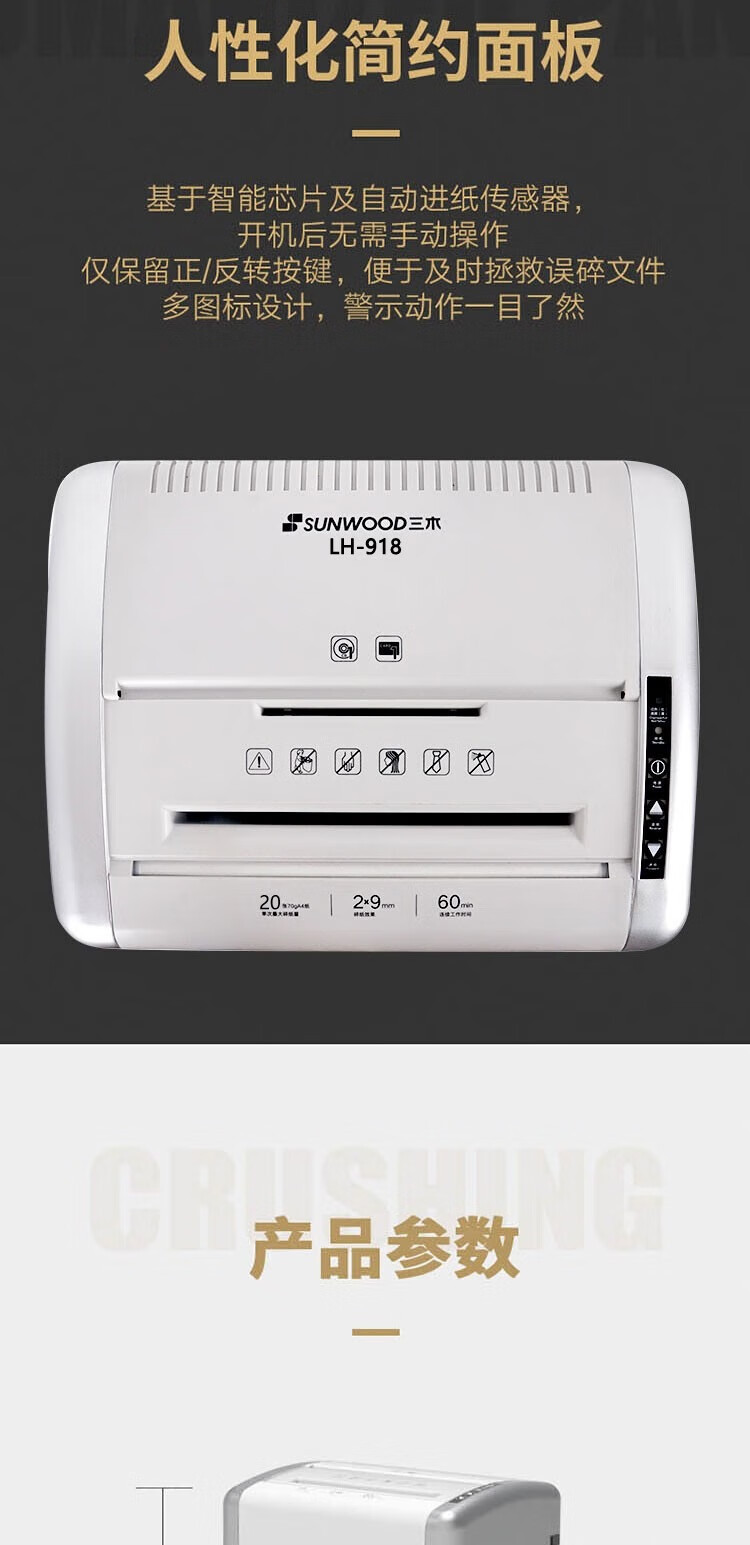 三木LH-918碎纸机五级保密20张2*9mm30L持续60分钟可碎纸卡钉