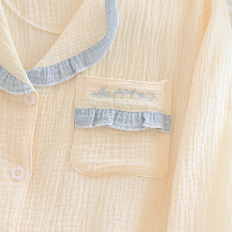 睡衣女2025年新款网红爆款纯棉纱布春秋季长袖薄款简约家居服套装