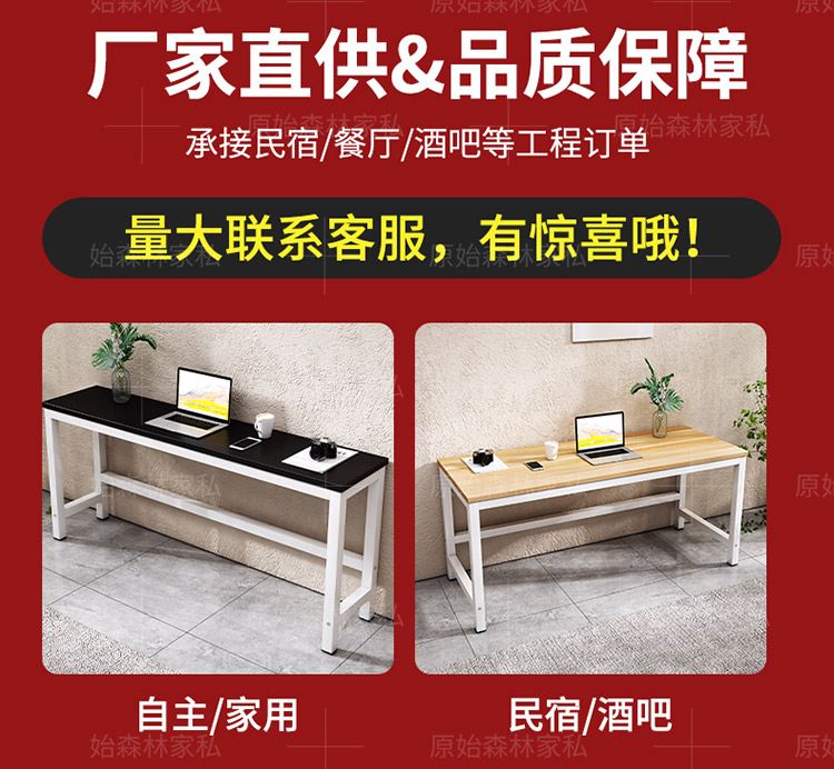 定制简易长方形靠墙长桌子工作台家用书桌卧室长条桌阳台窄电脑桌