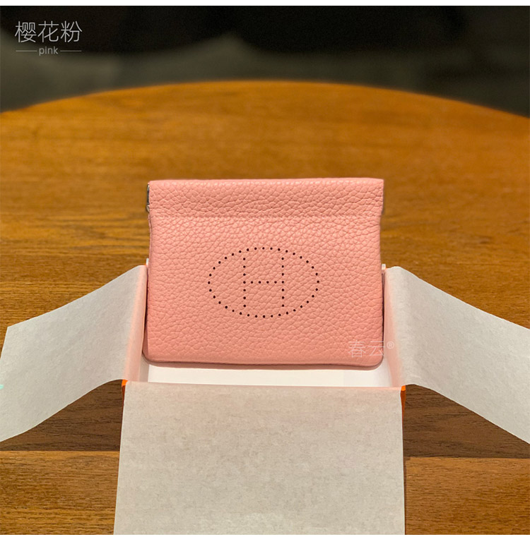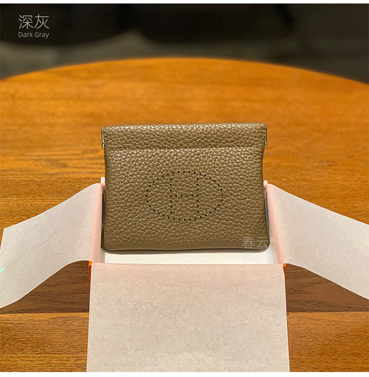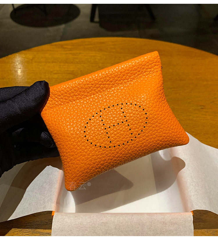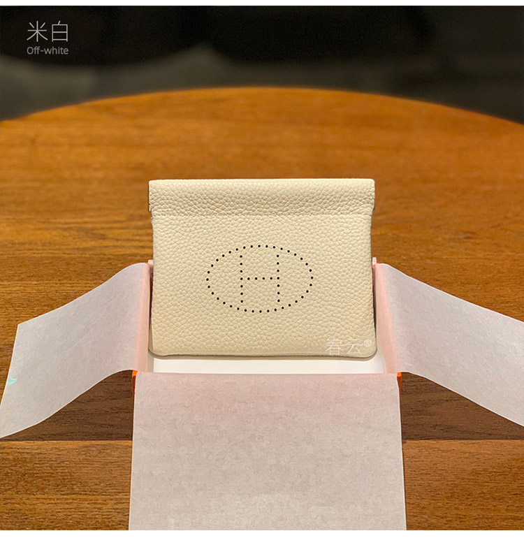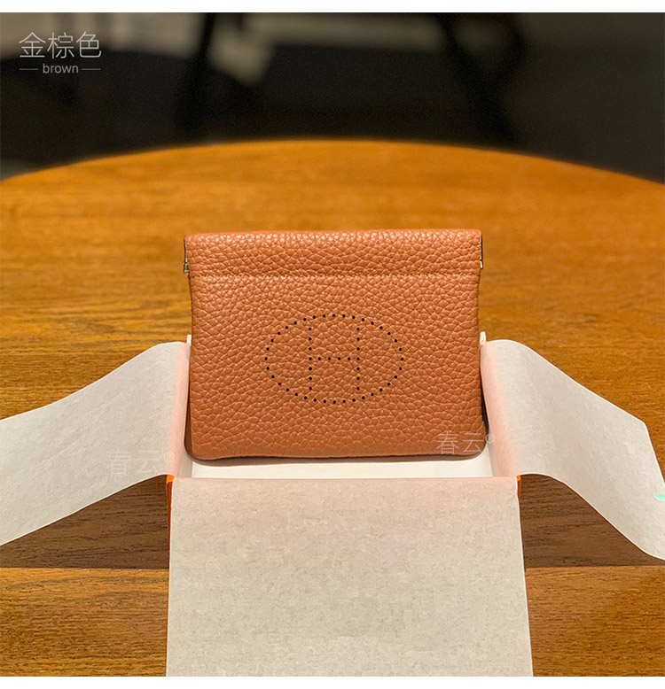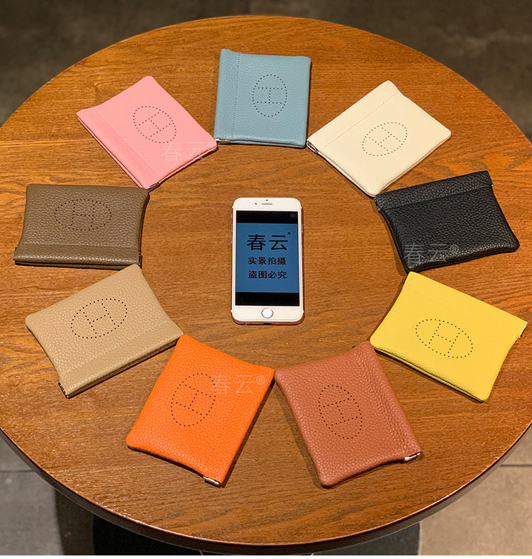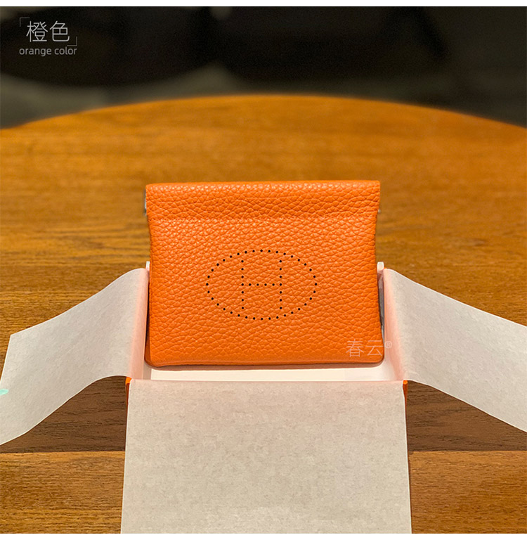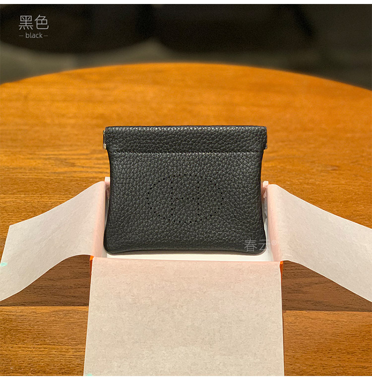H家迷你零钱包女 男弹簧自闭合牛皮口红收纳硬币包镂空真皮钱包小