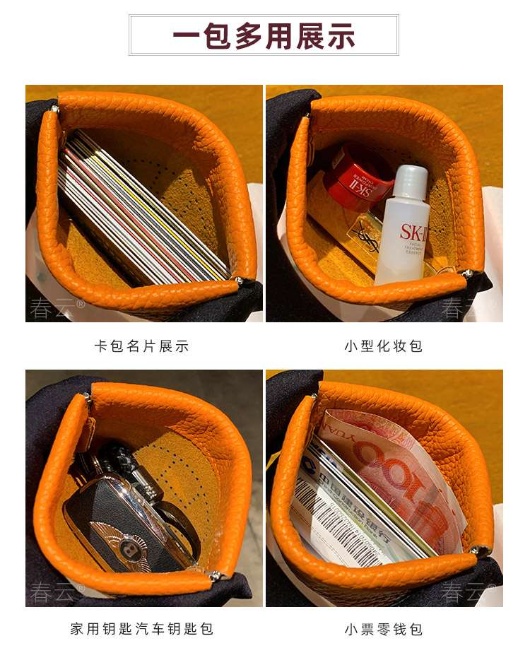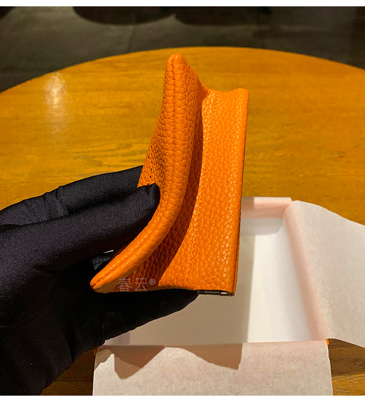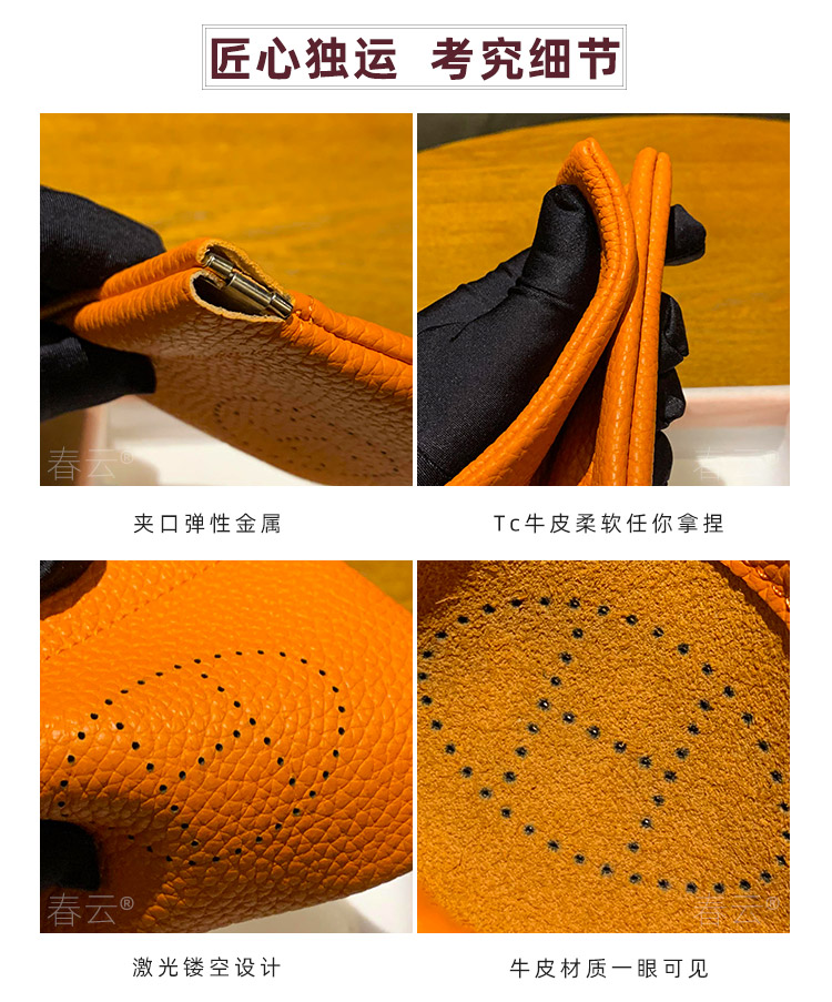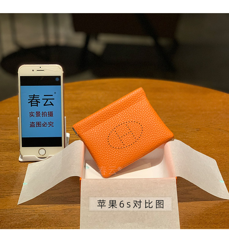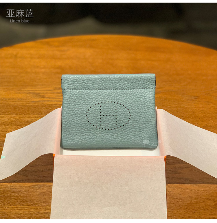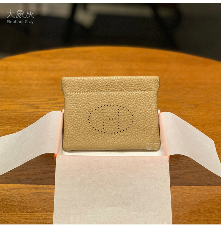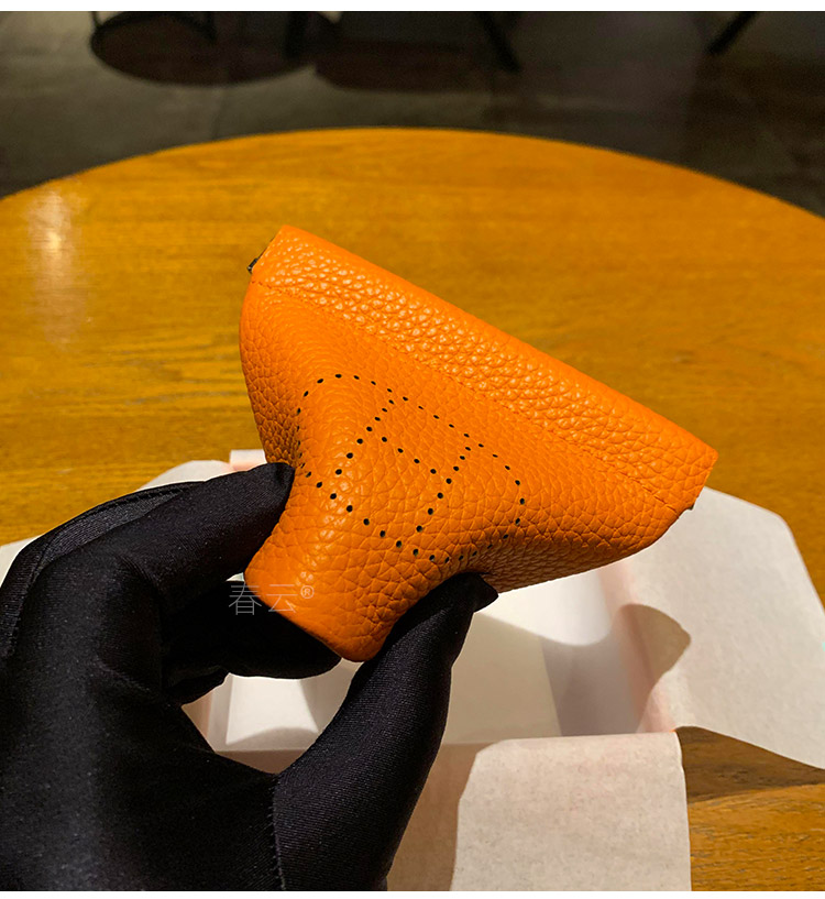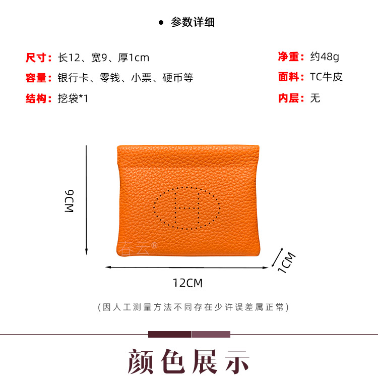 H家迷你零钱包女 男弹簧自闭合牛皮口红收纳硬币包镂空真皮钱包小