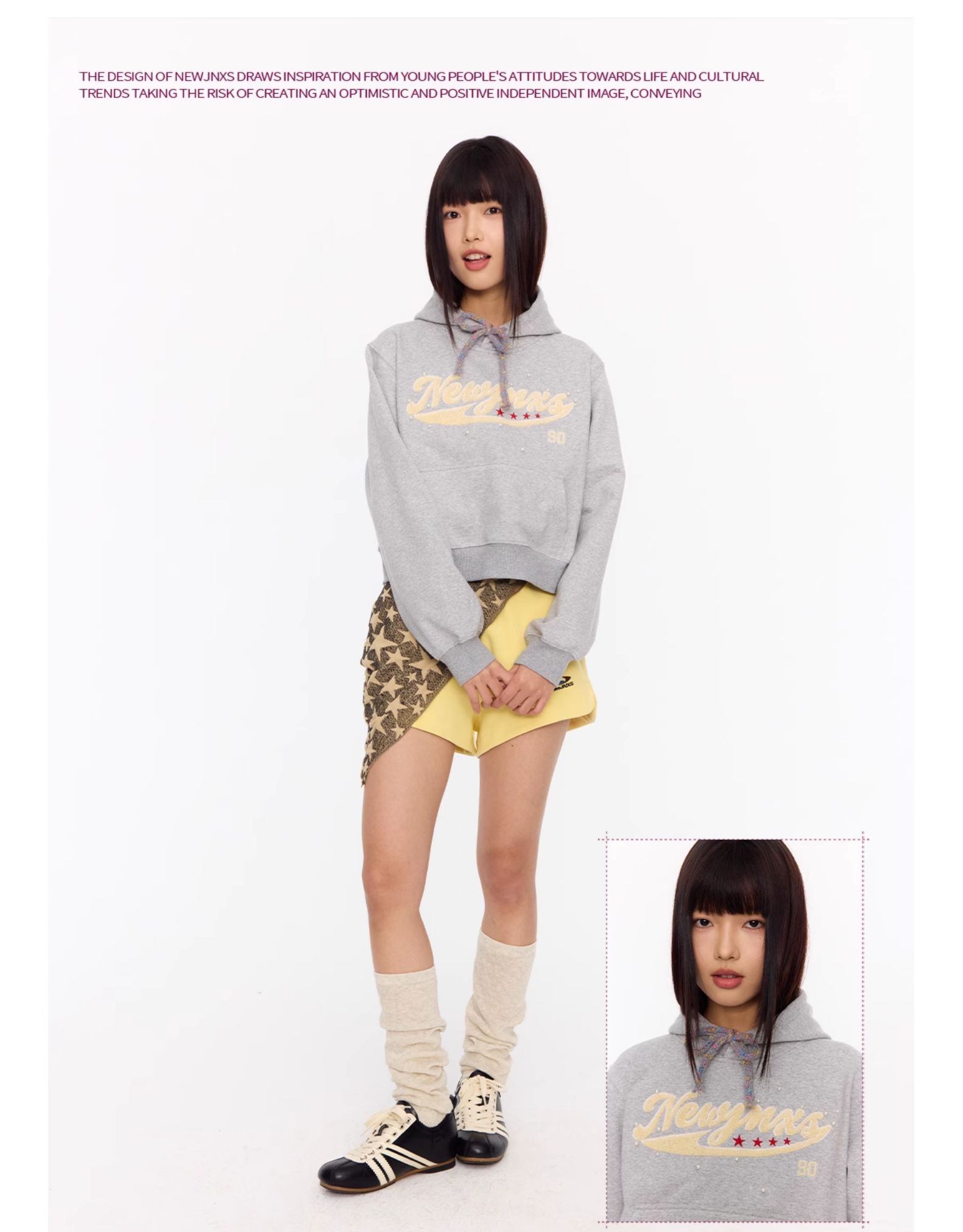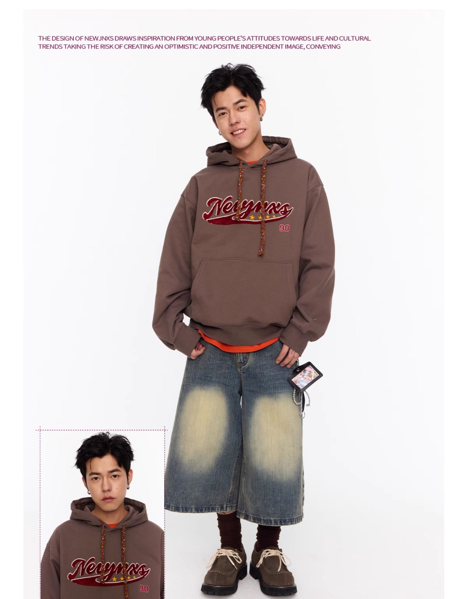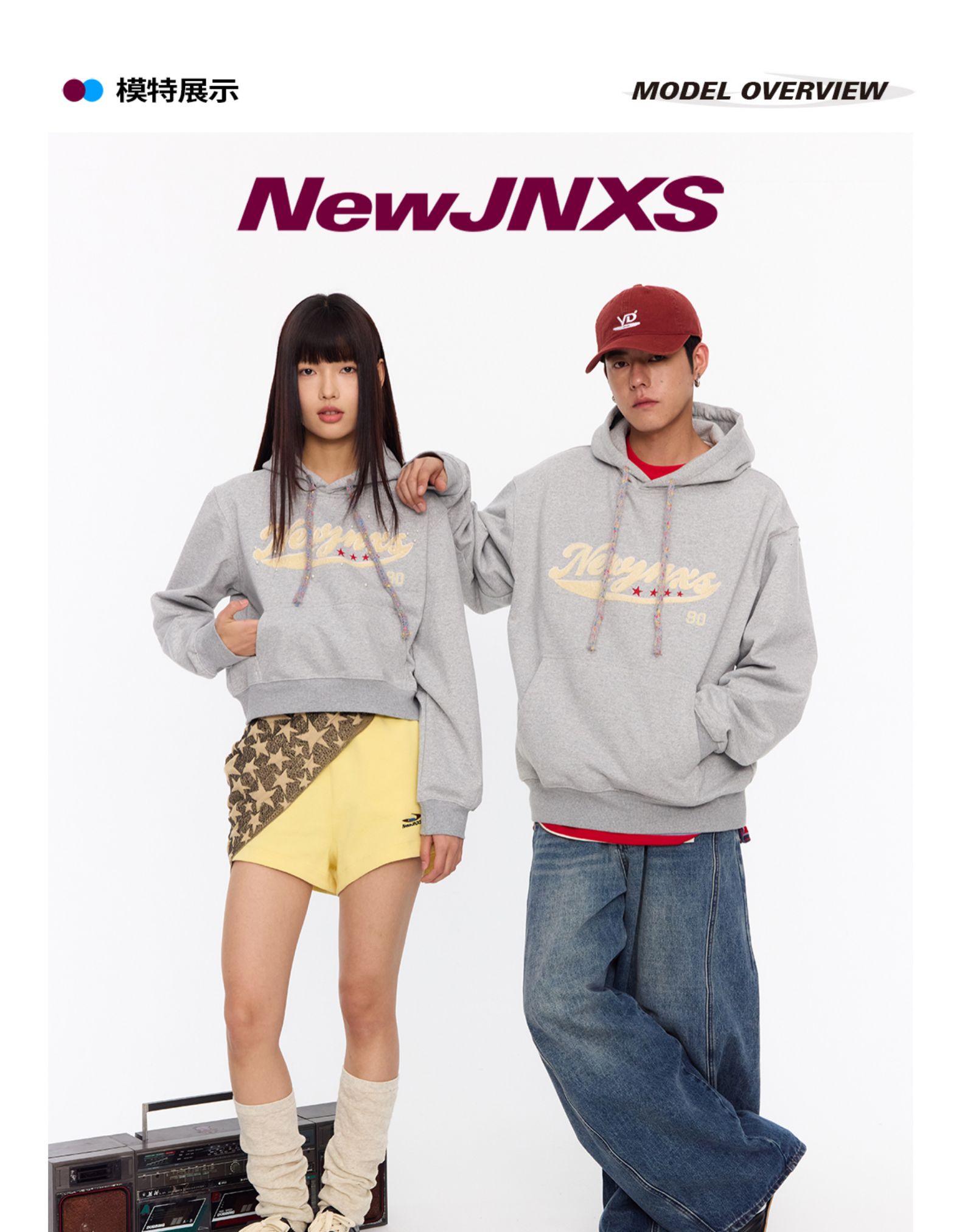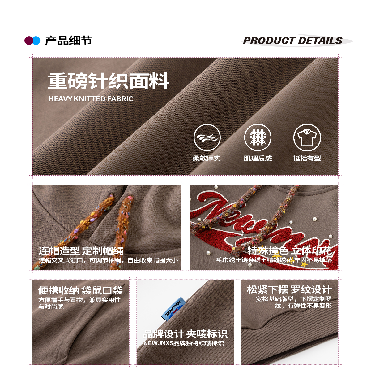 江南先生NewJNXS美式复古毛巾绣钉珠长短款连帽卫衣男女休闲外套