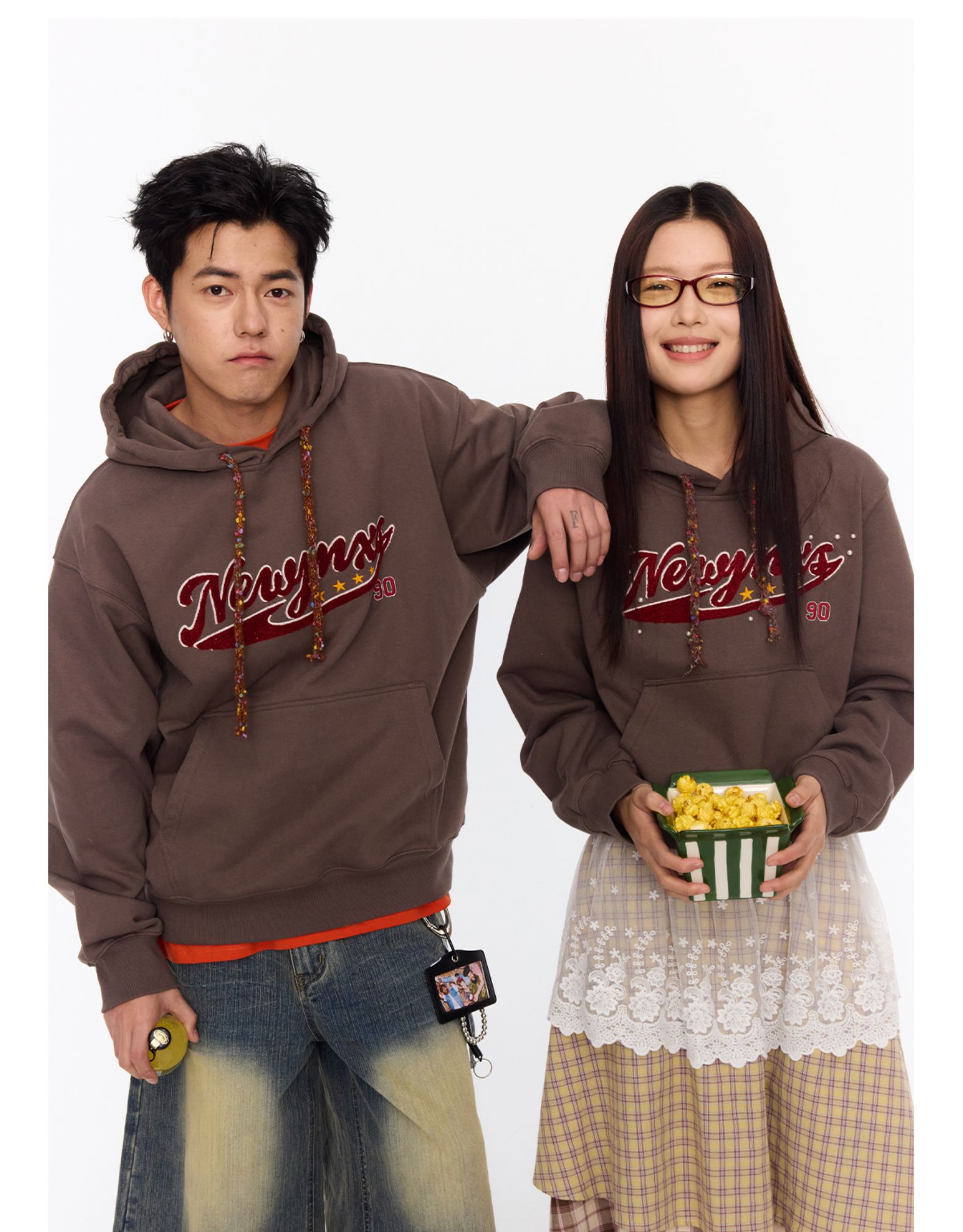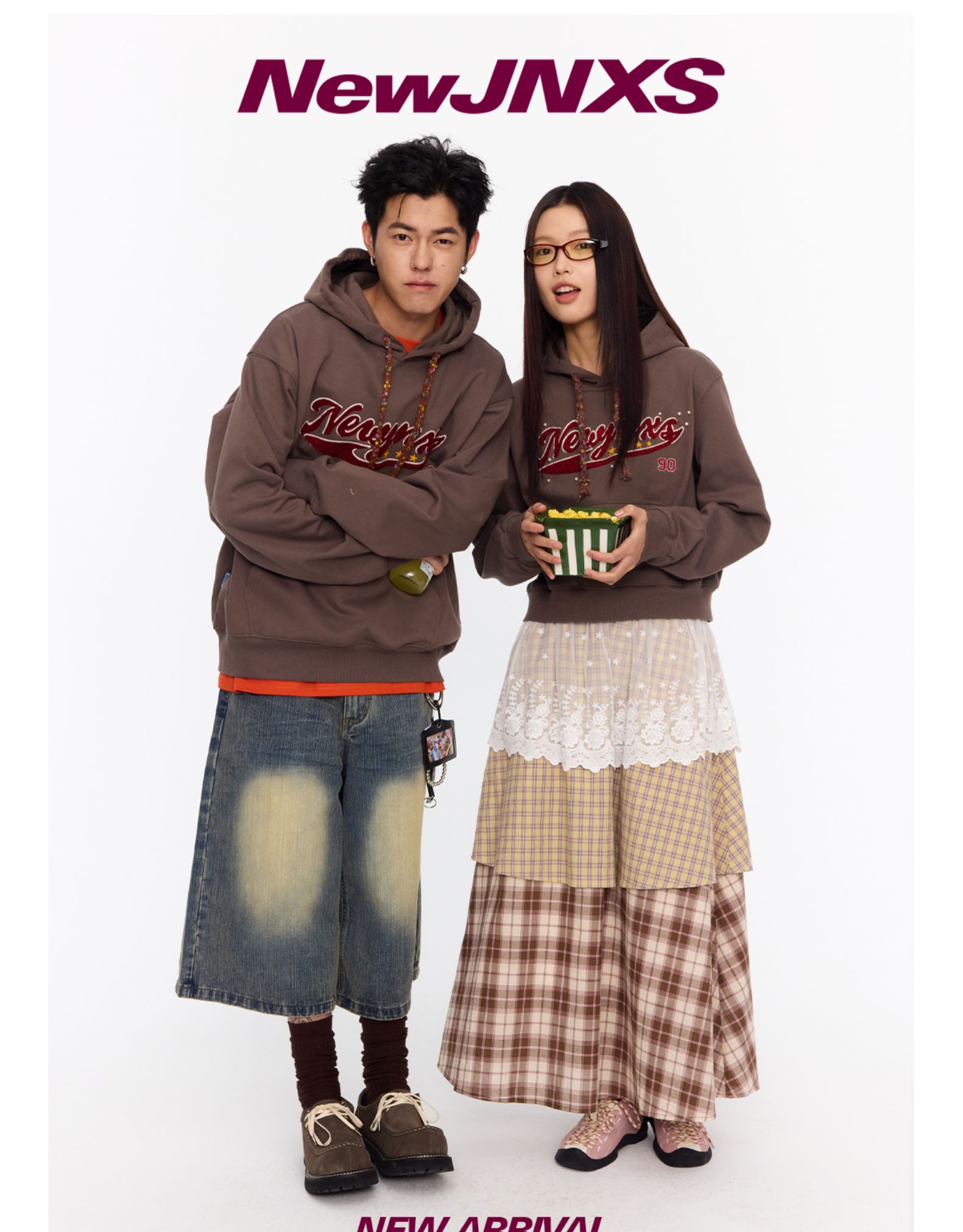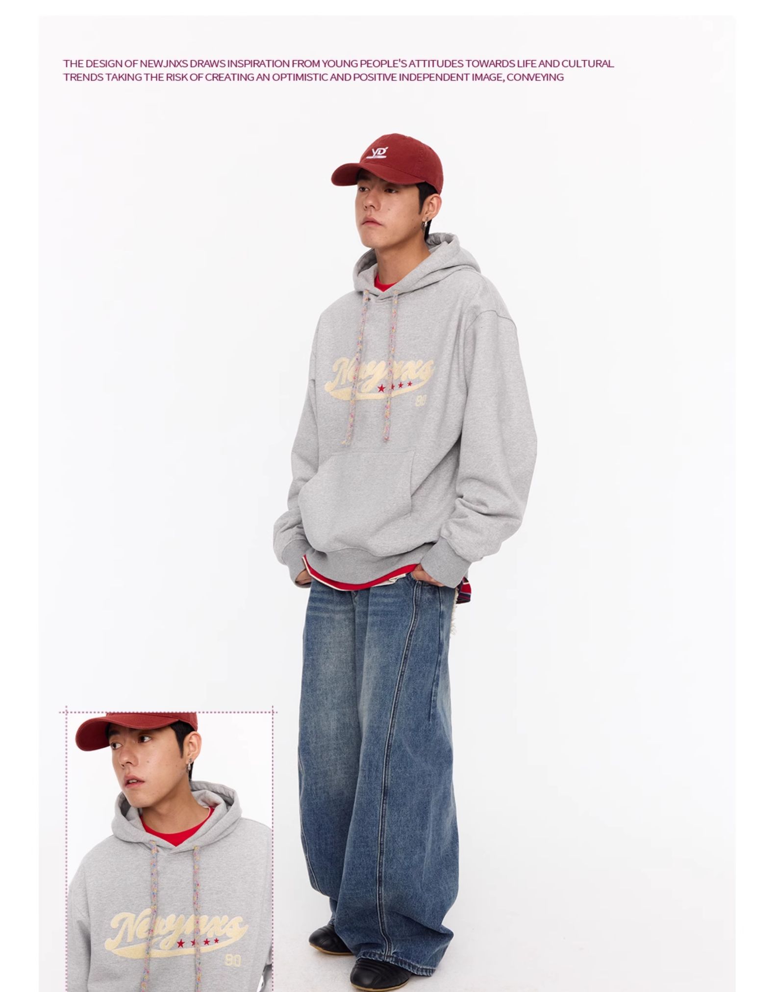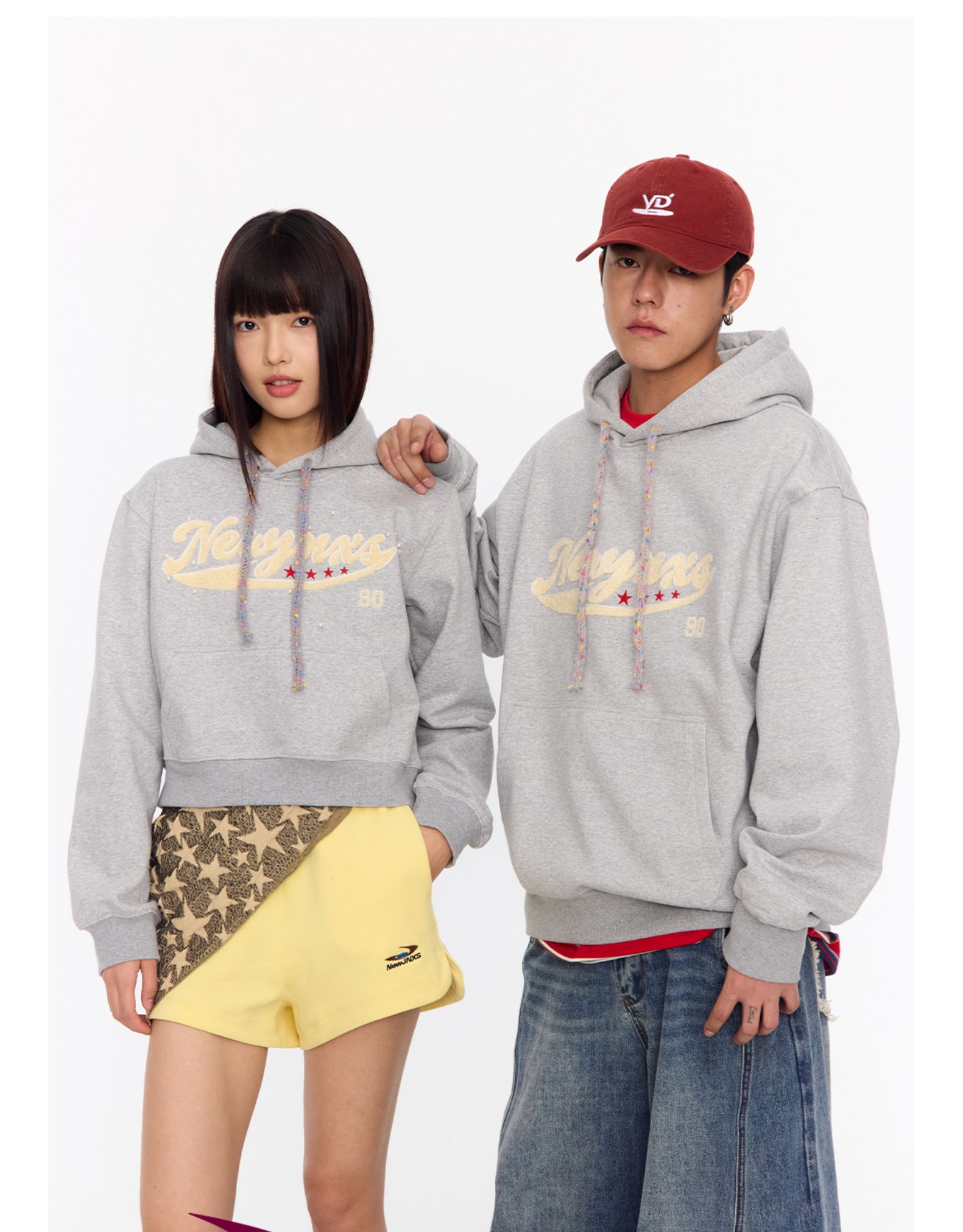 江南先生NewJNXS美式复古毛巾绣钉珠长短款连帽卫衣男女休闲外套