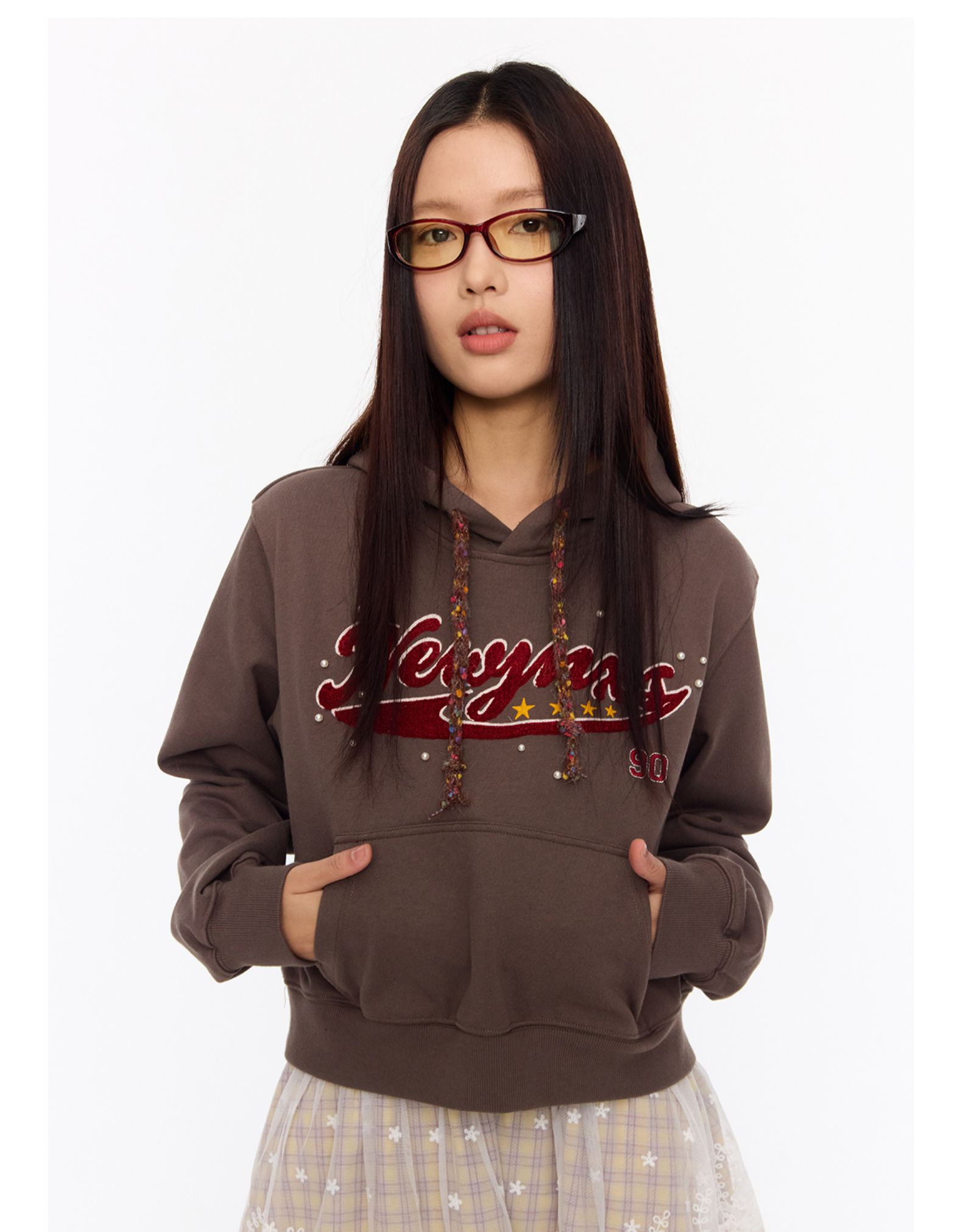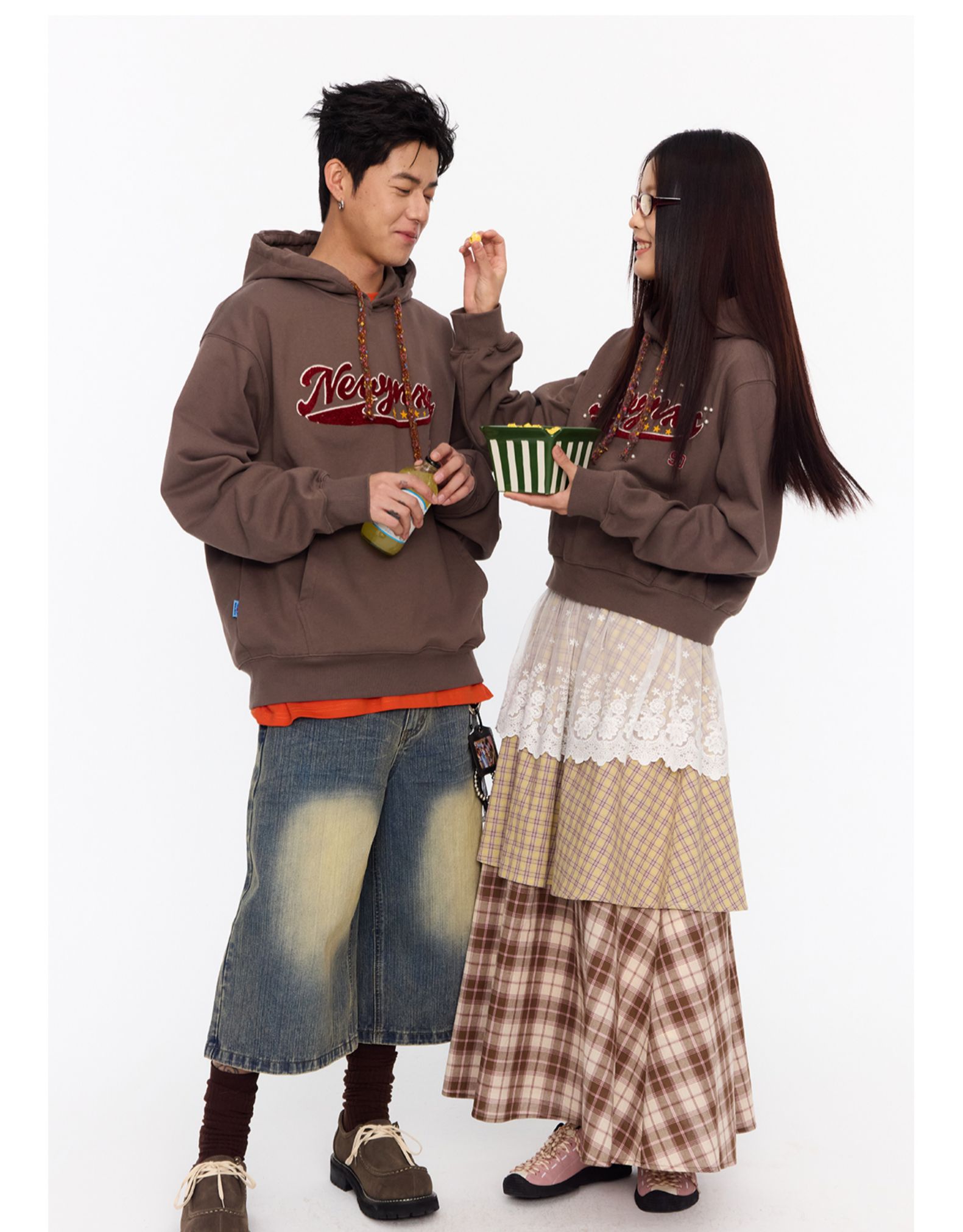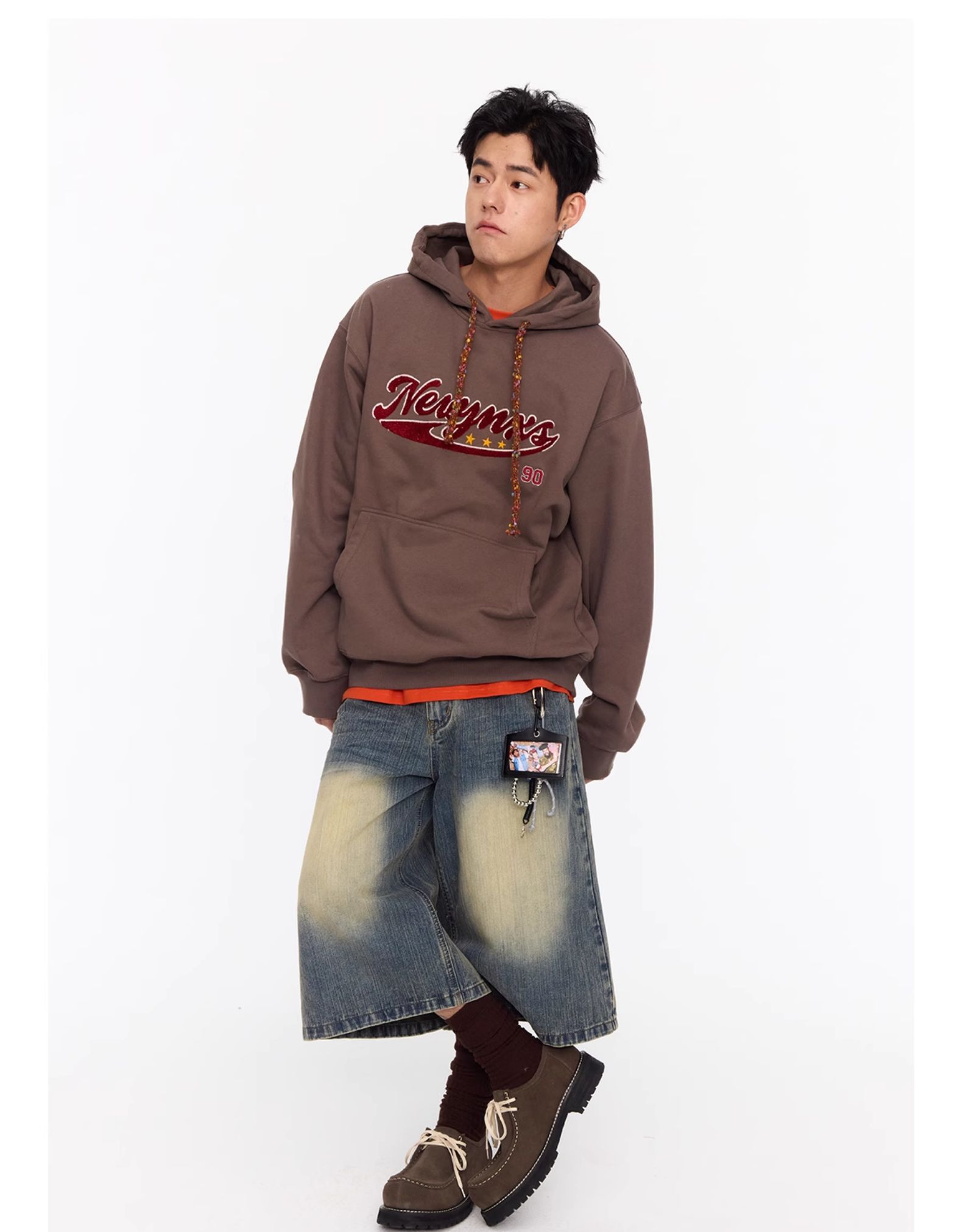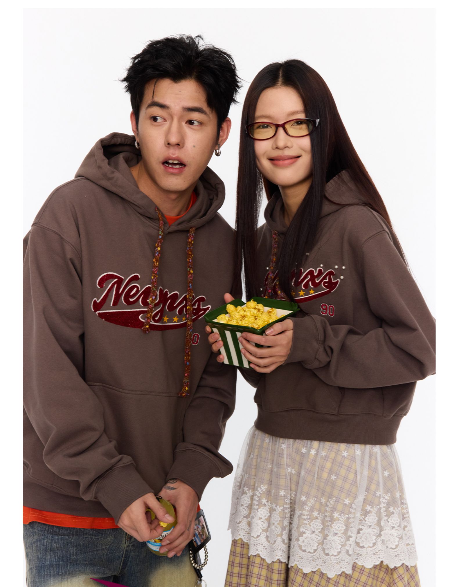 江南先生NewJNXS美式复古毛巾绣钉珠长短款连帽卫衣男女休闲外套