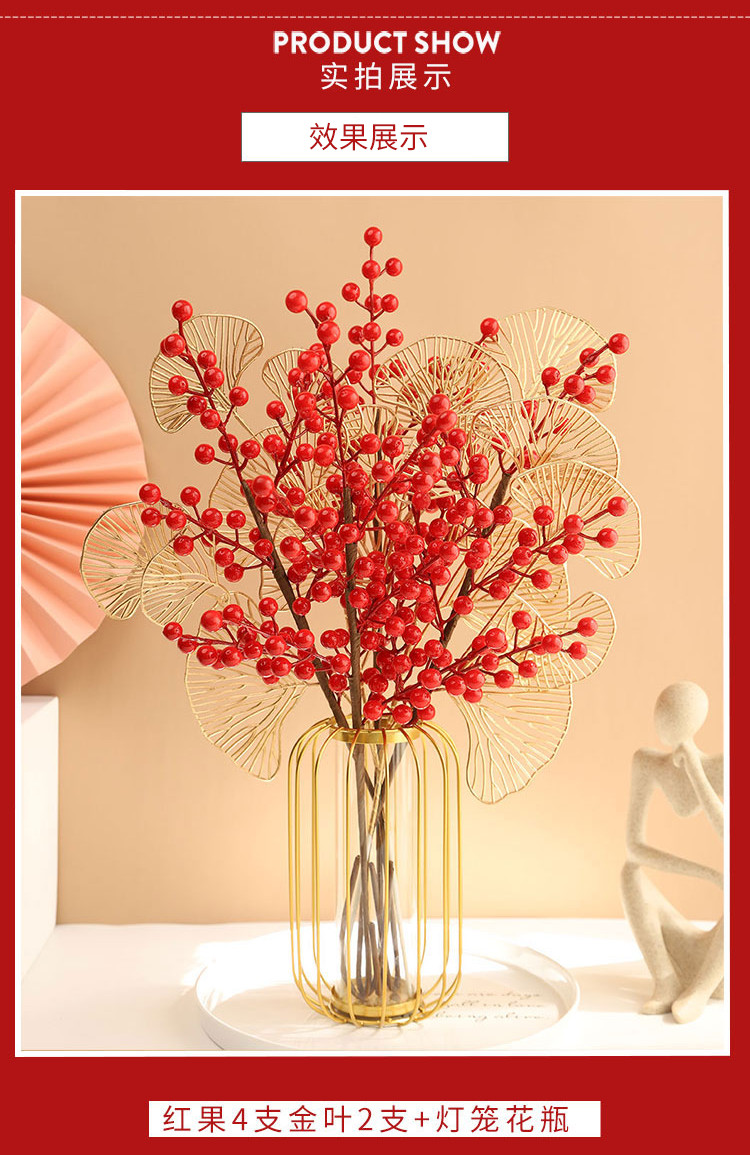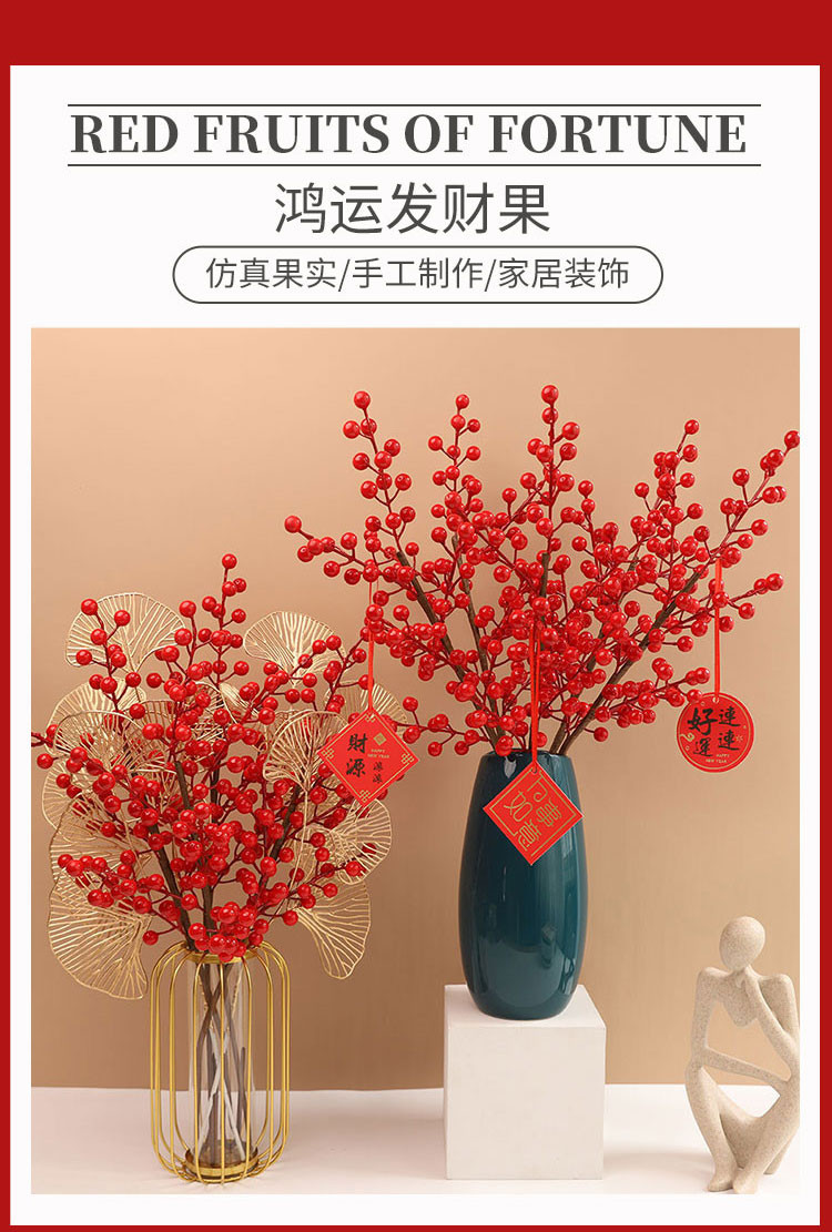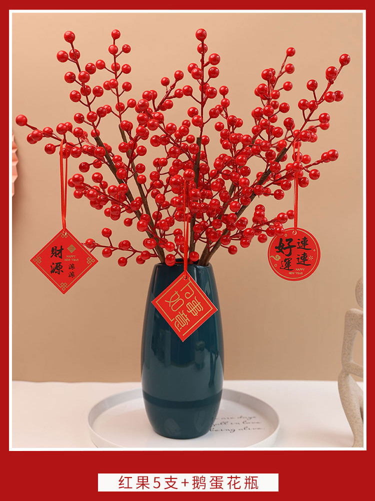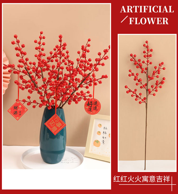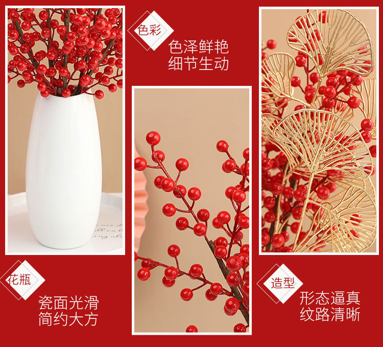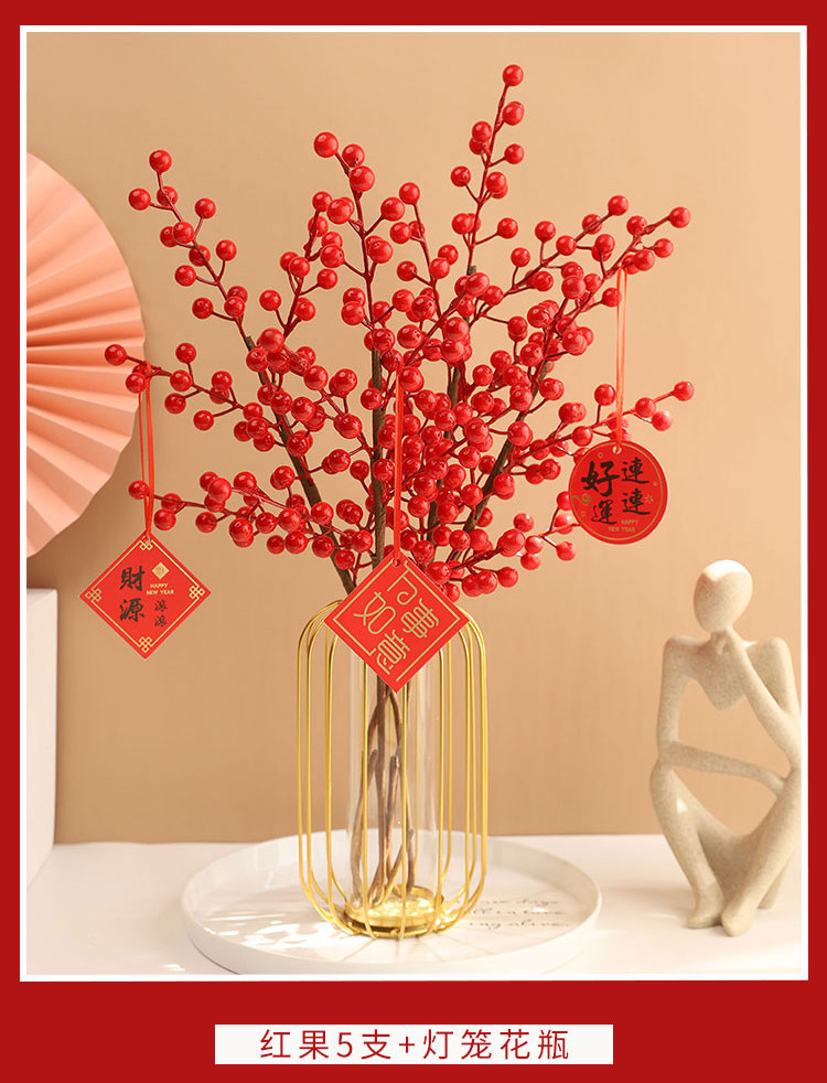 年宵花新年装饰花摆件发财果仿真花摆设假花冬青红果客厅乔迁插花