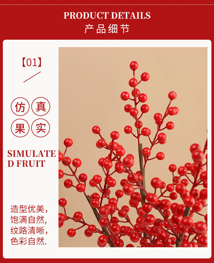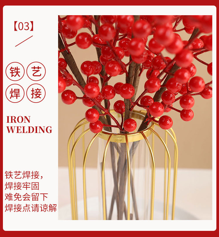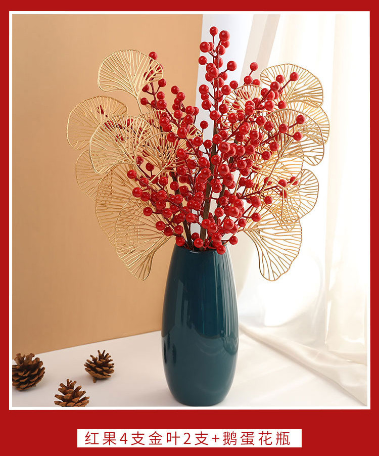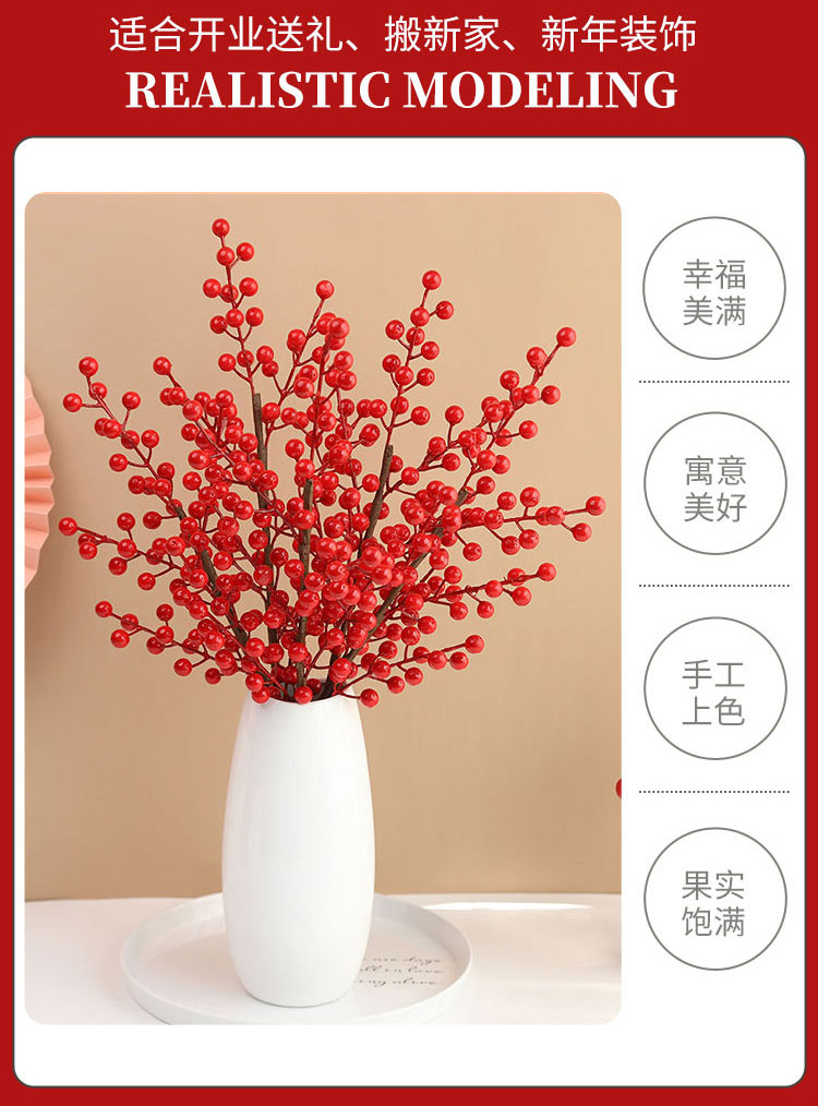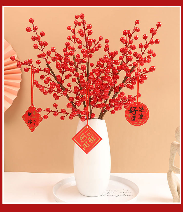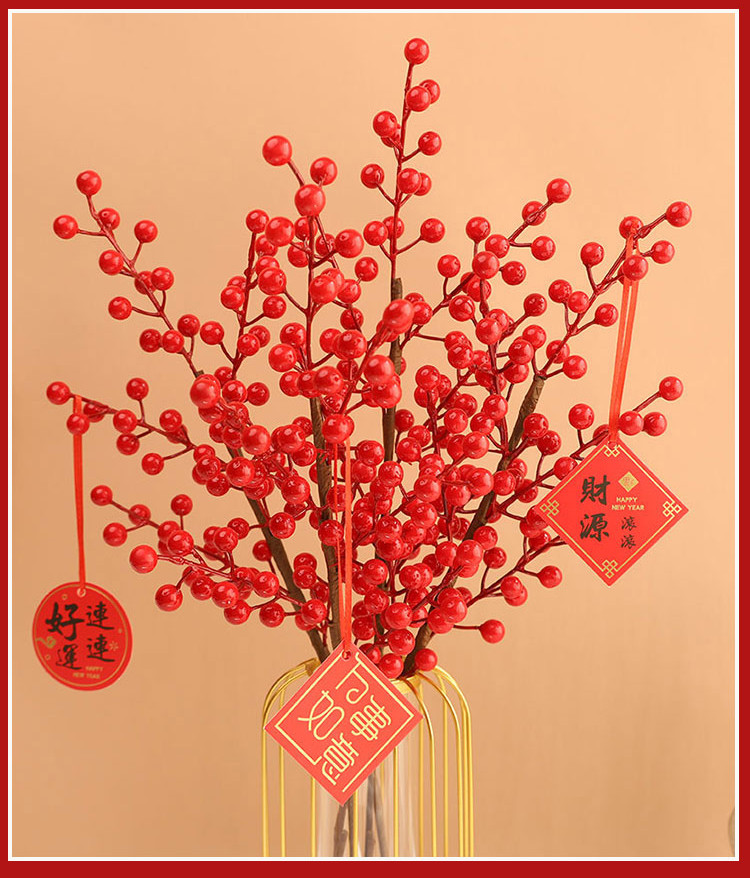 年宵花新年装饰花摆件发财果仿真花摆设假花冬青红果客厅乔迁插花