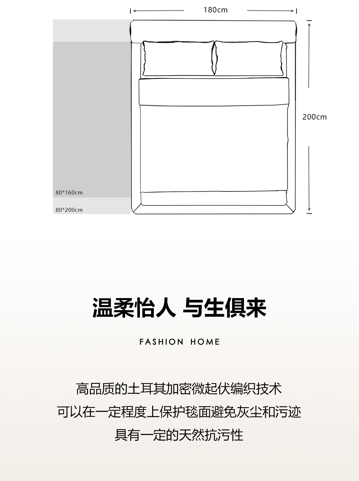 古臻进口卧室床边地毯防水免洗耐脏现代简约暖色主卧儿童房床尾毯