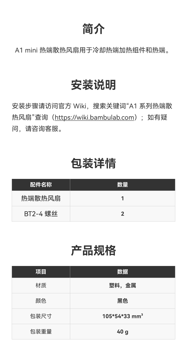 拓竹3D打印机配件 热端风扇Bambu Lab