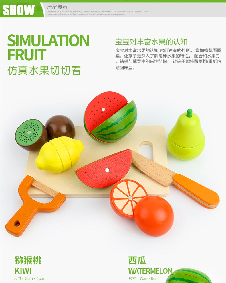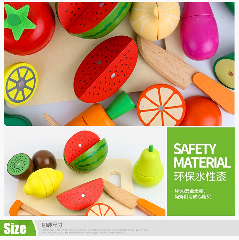 儿童磁性水果蔬菜切切乐宝宝木制切切看厨房仿真过家家套装玩具