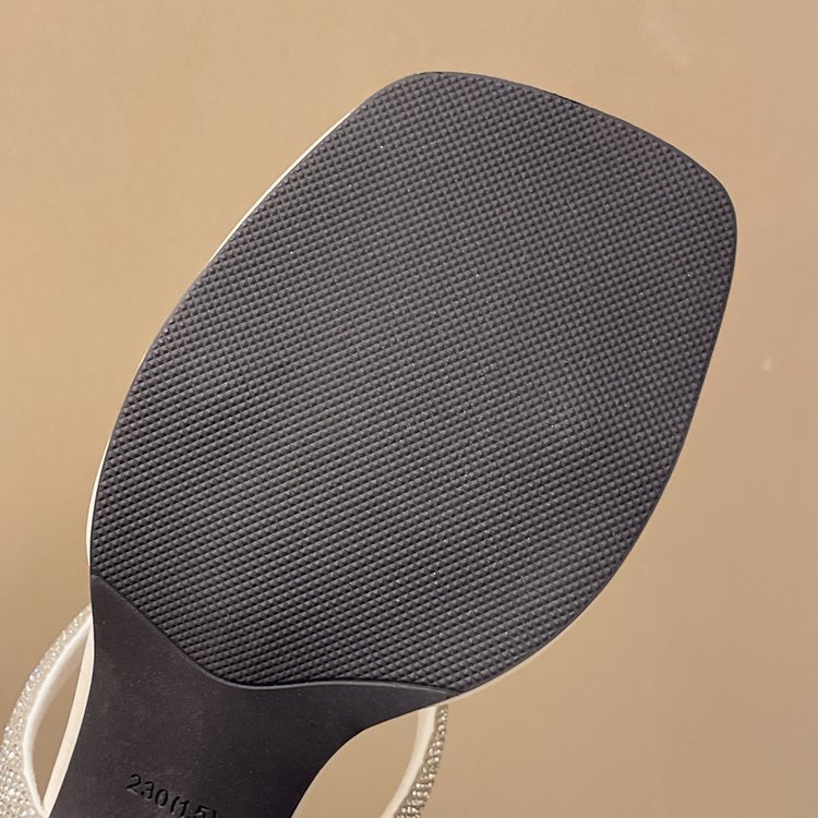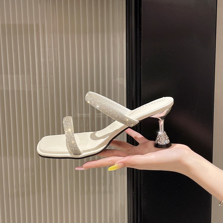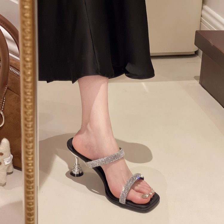高跟拖鞋女2025夏季新款绝美水钻一字半拖细跟仙女配裙子外穿凉拖