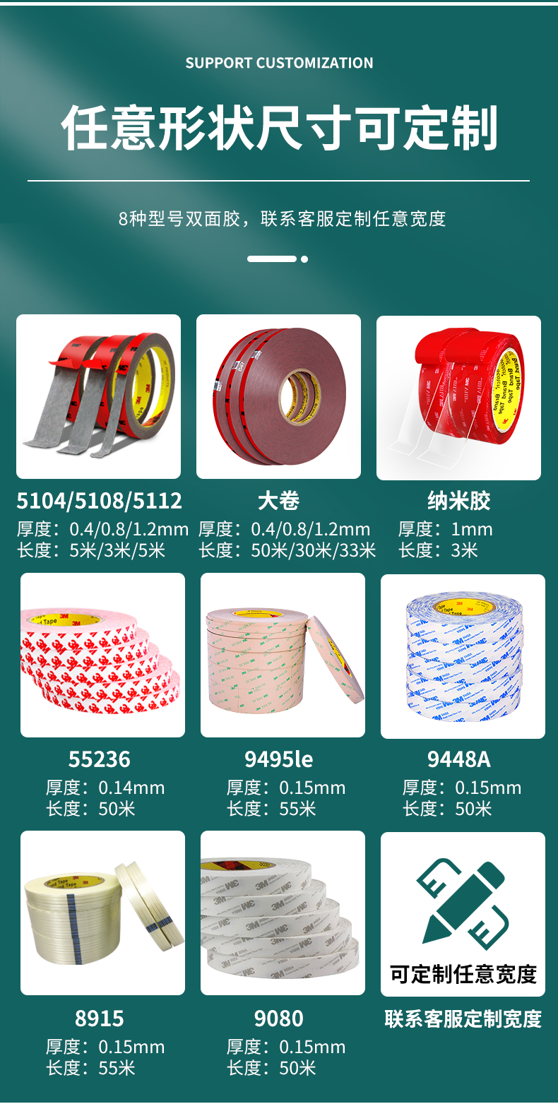 3M双面胶定制9080a厂家直销55236胶带9495LE两面胶9448B\AB黑色薄款双面胶多规格强力薄胶1cm1.5cm2cm3cm5cm