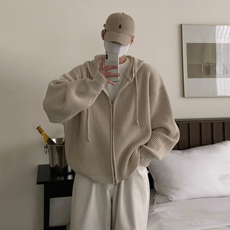 MRCYC慵懒风连帽针织衫外套男秋冬季通勤穿搭韩系宽松高级感毛衣