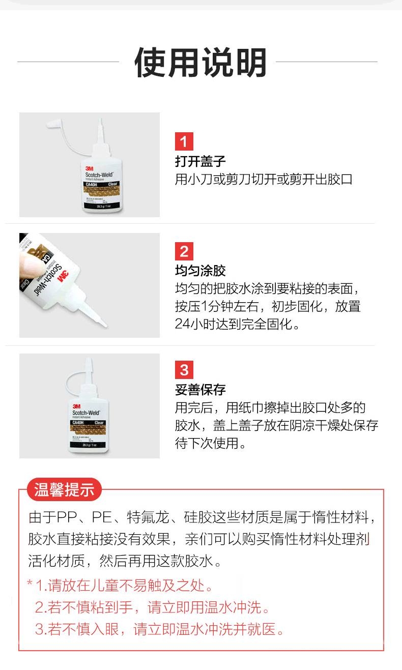 3M胶水 CA40H快干胶 CA8高强度 171万能强力金属木材陶瓷玻璃塑料