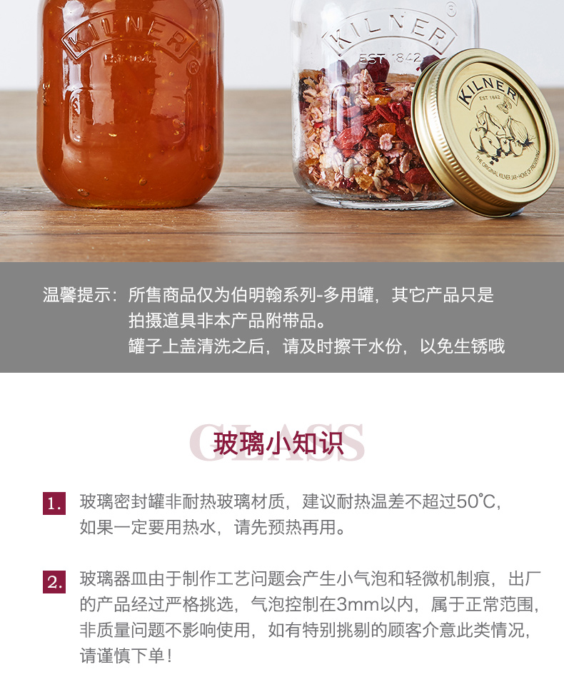 英国kilner密封罐食品级玻璃瓶子果酱瓶泡菜泡酒杂粮防潮罐子加厚