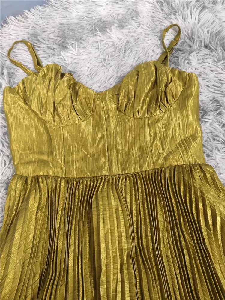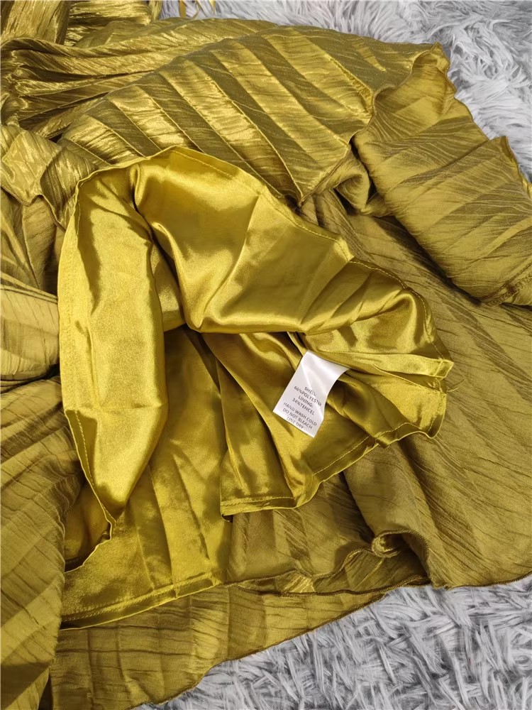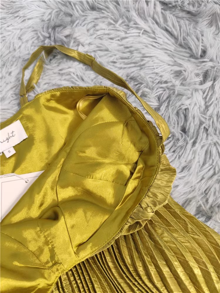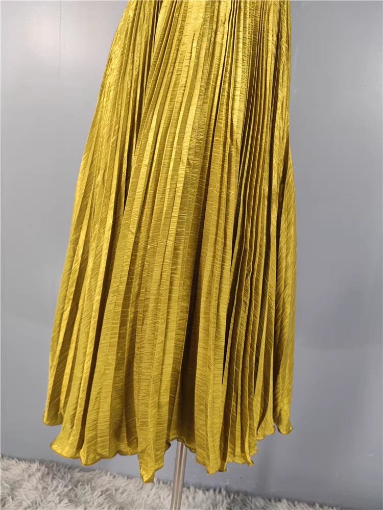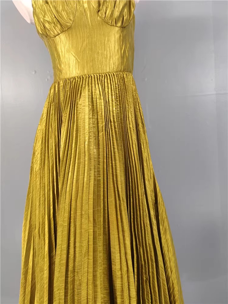外贸余单褶皱显胸款设计光滑缎面百褶大摆连衣裙女神派对长礼服