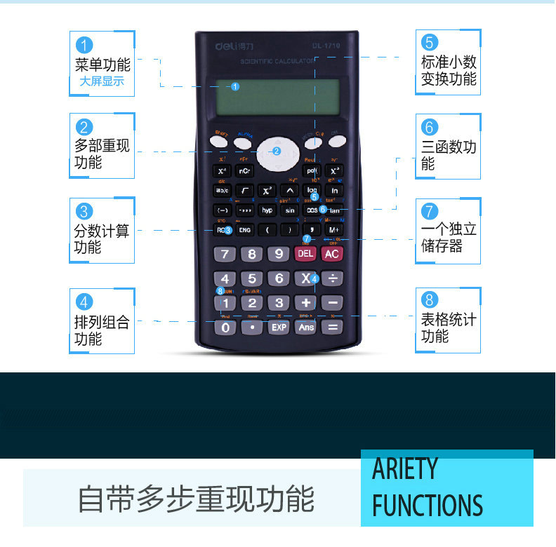 得力1710函数计算机1700学生考试科学计算器可爱学生多功能中小学生专用函数计算器多功能考试学习