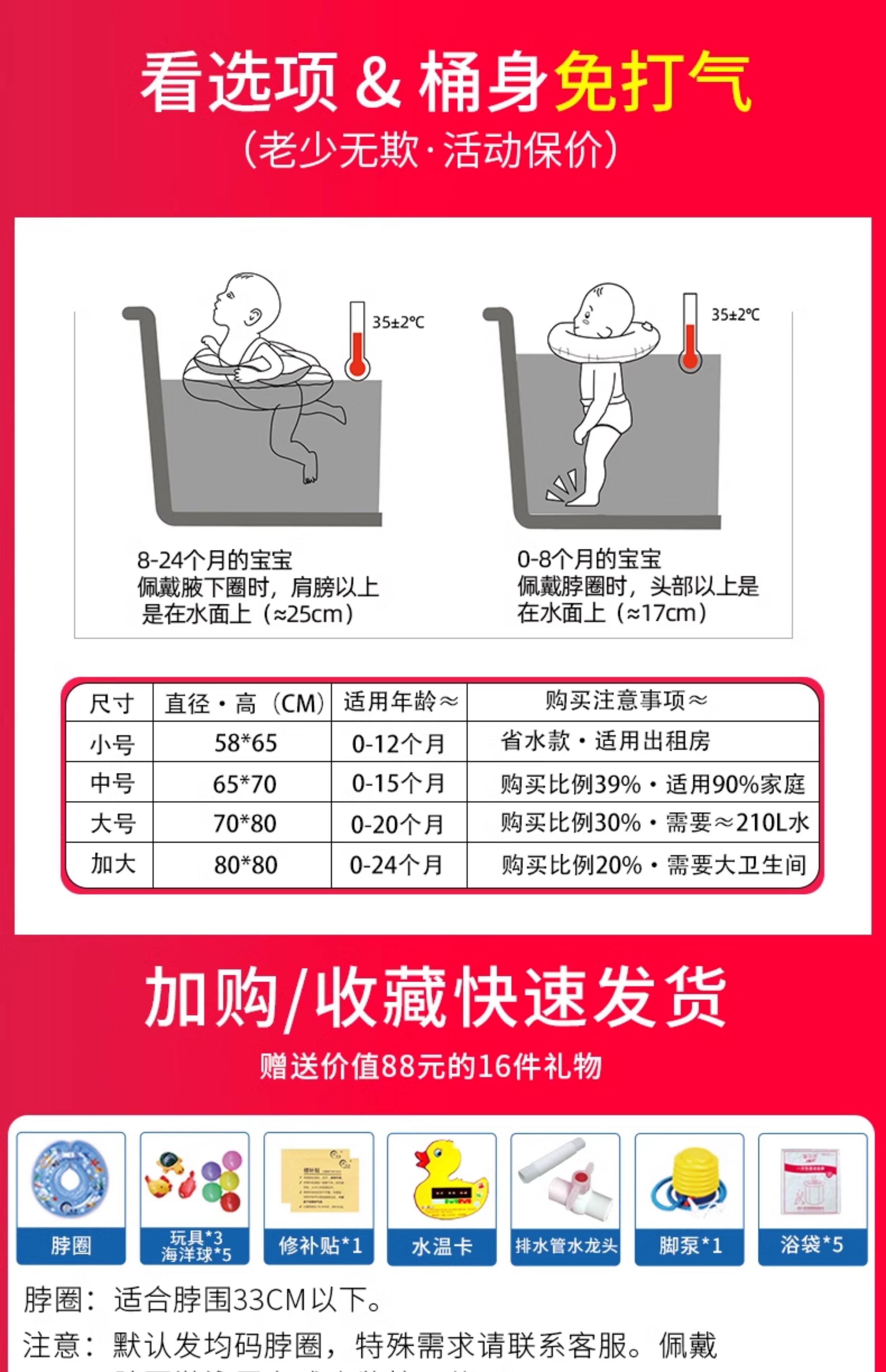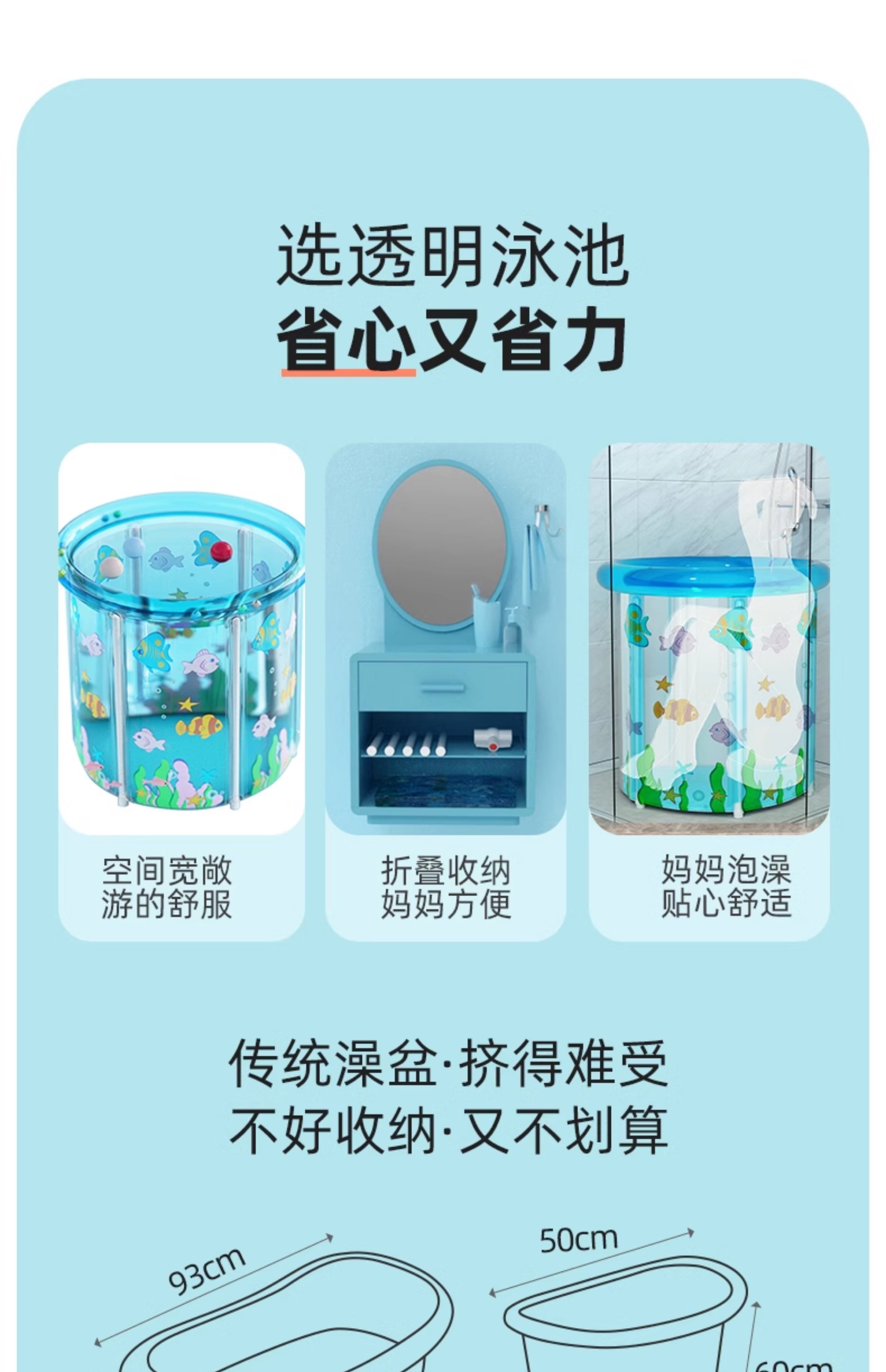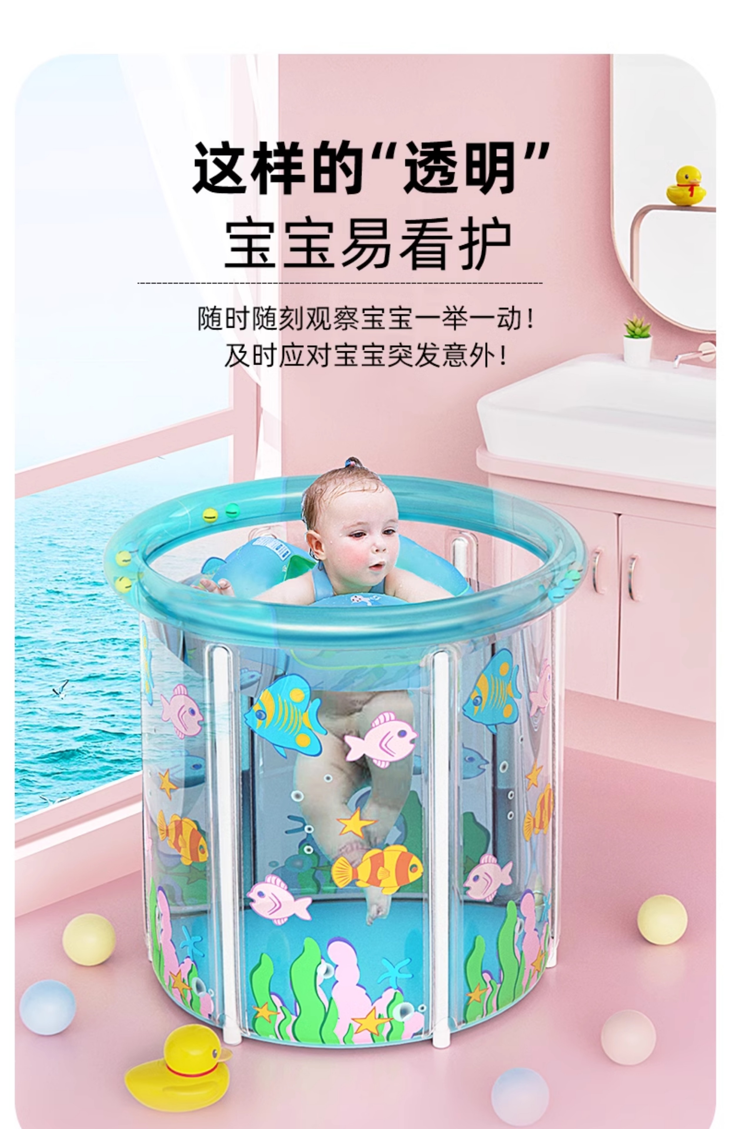 婴儿游泳桶家用宝宝游泳池新生儿童室内加厚充气折叠透明洗澡浴桶