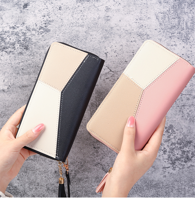 2025新款钱包女长款拉链大容量手机包百搭韩版时尚拼接手拿包卡包