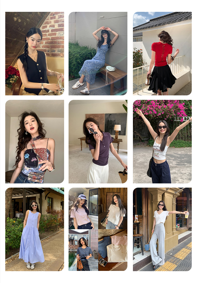 pusumede V领纯棉白色短袖T恤女夏新款小众刺绣宽松休闲正肩上衣