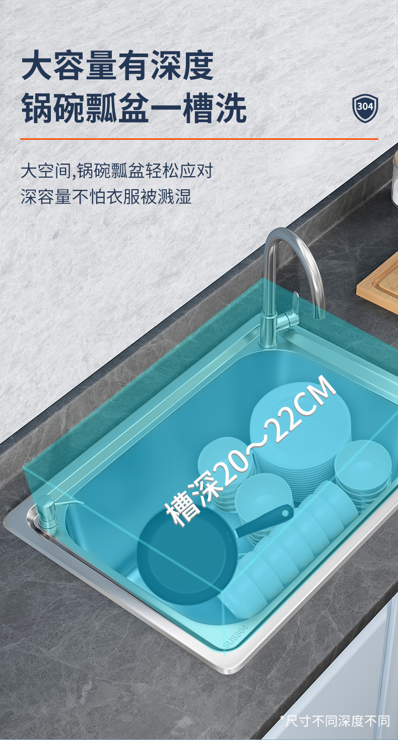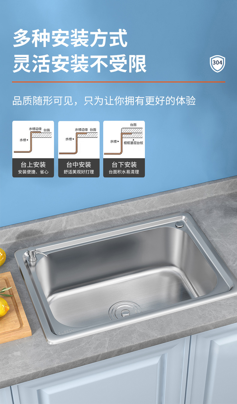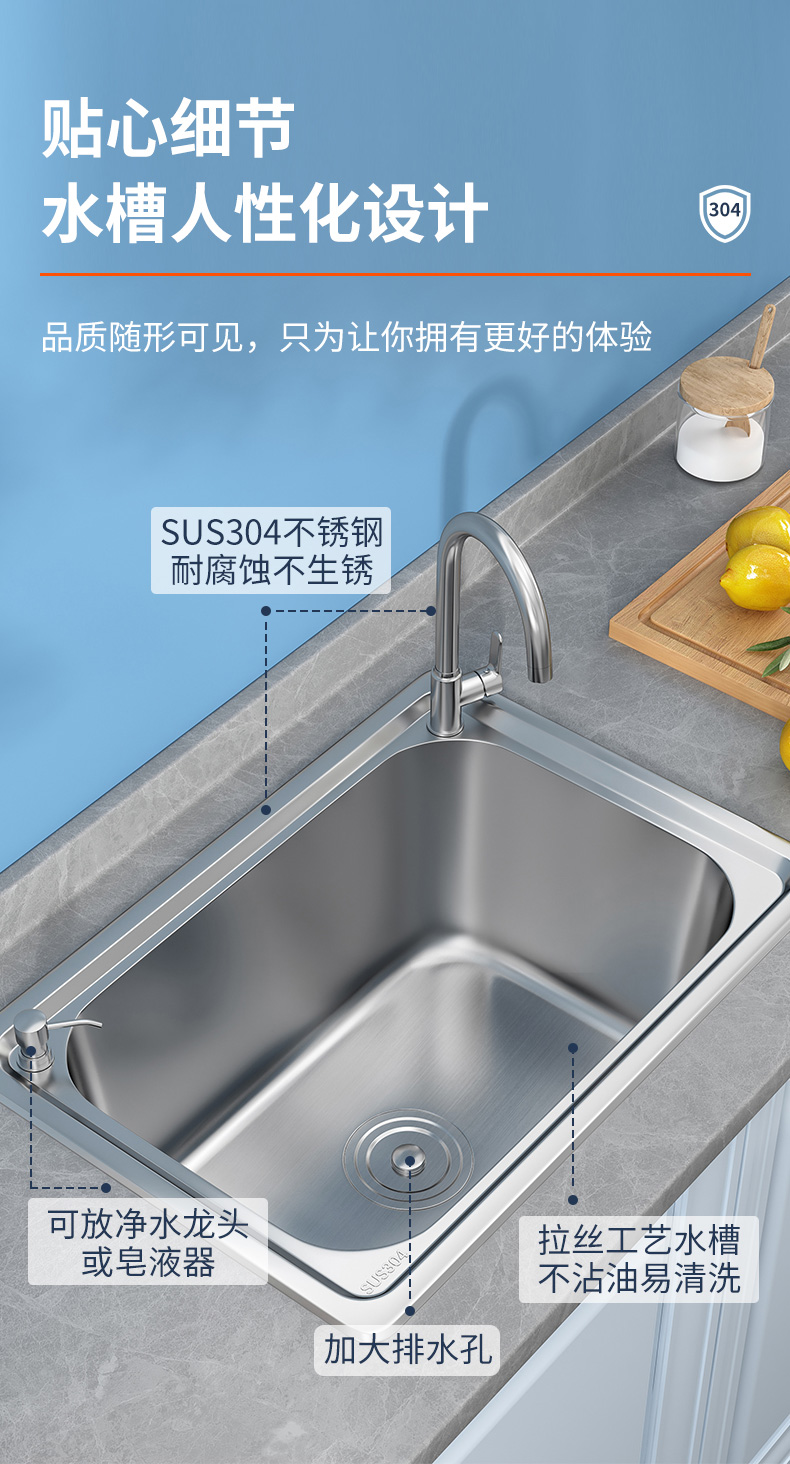 加厚304不锈钢水槽单槽洗菜盆洗碗洗手水池单盆厨房家用台上中盆