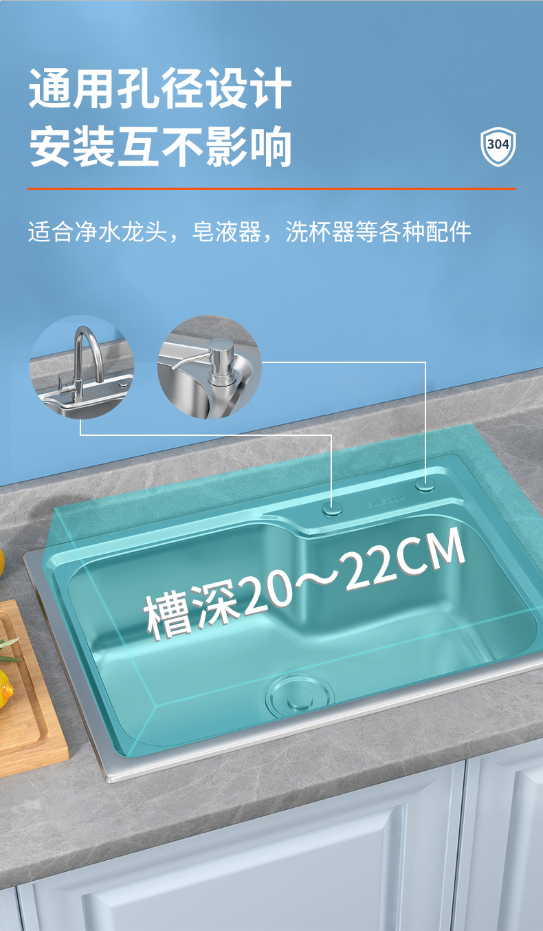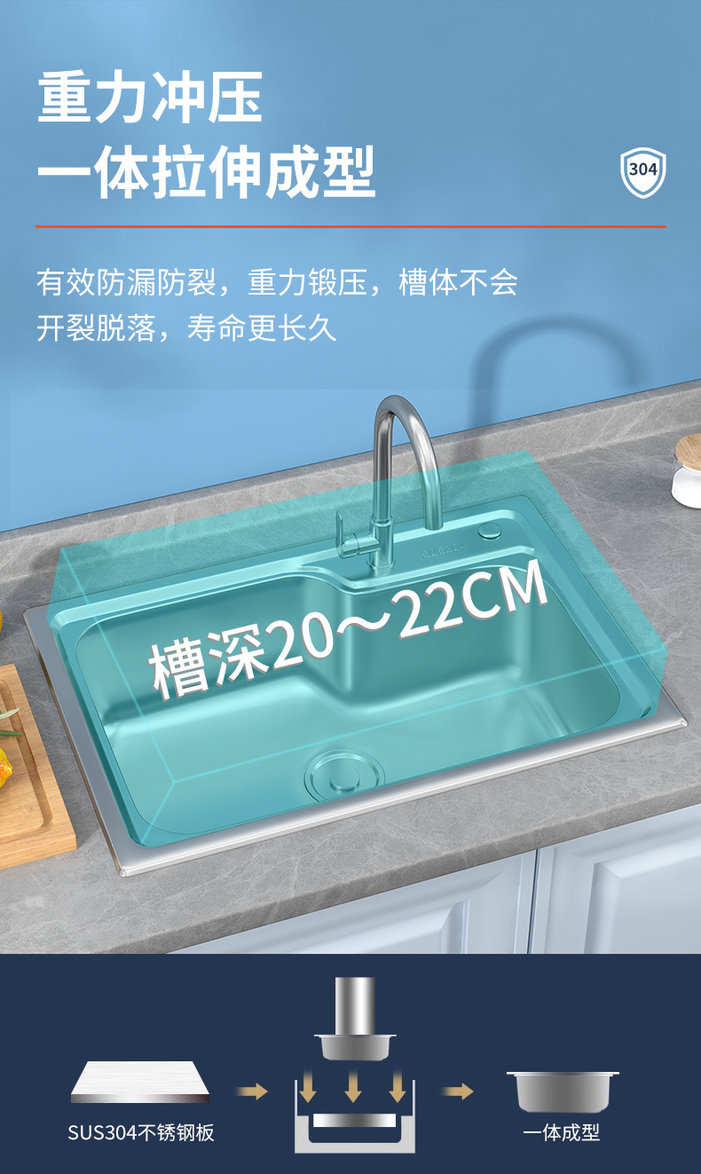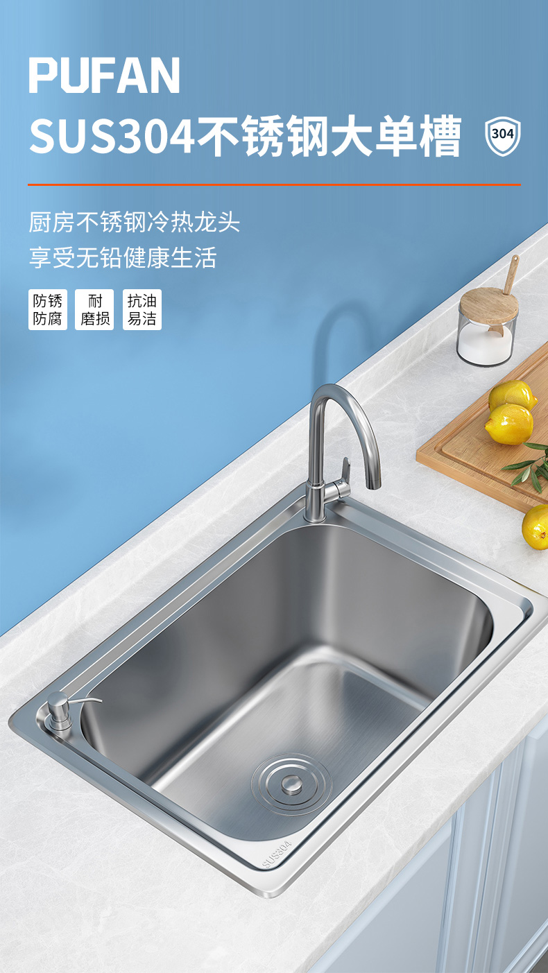 加厚304不锈钢水槽单槽洗菜盆洗碗洗手水池单盆厨房家用台上中盆