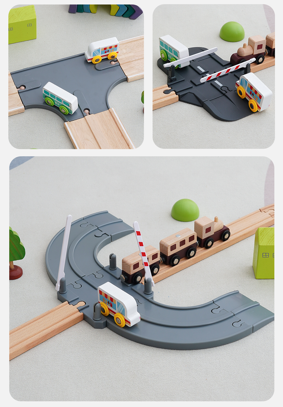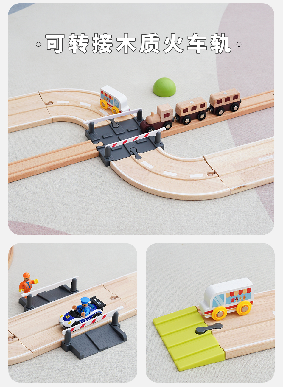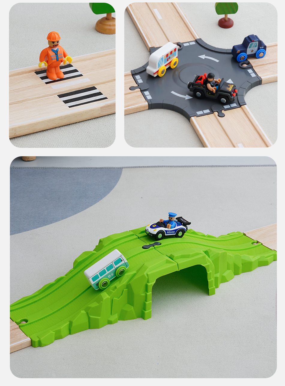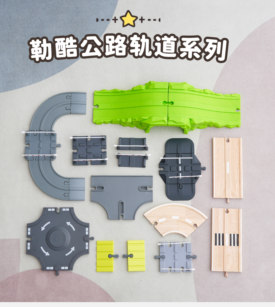 勒酷小火车轨道积木制公路配件 积木场景配件拓展拼搭益智玩具2岁