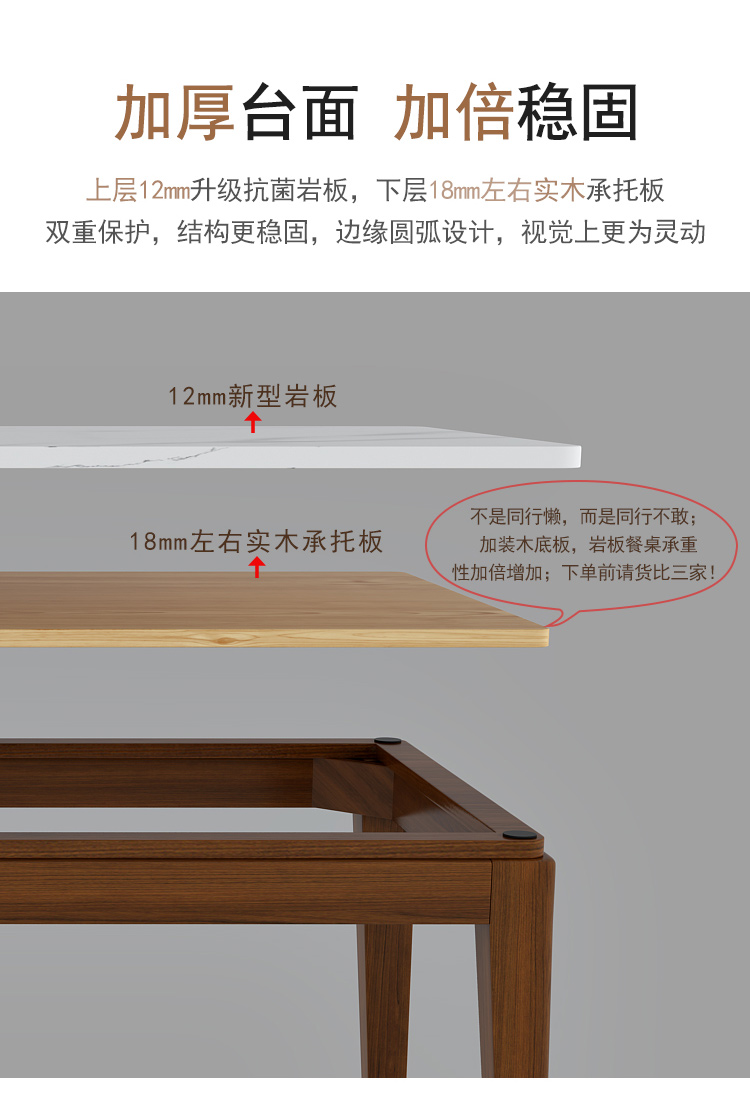 岩板餐桌椅组合家用小户型长方形实木饭桌25款餐桌胡桃木色桌子