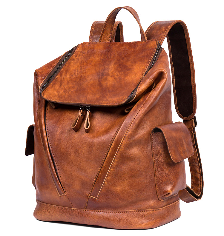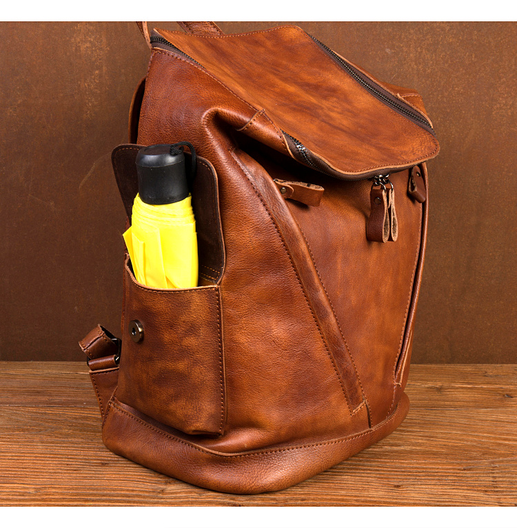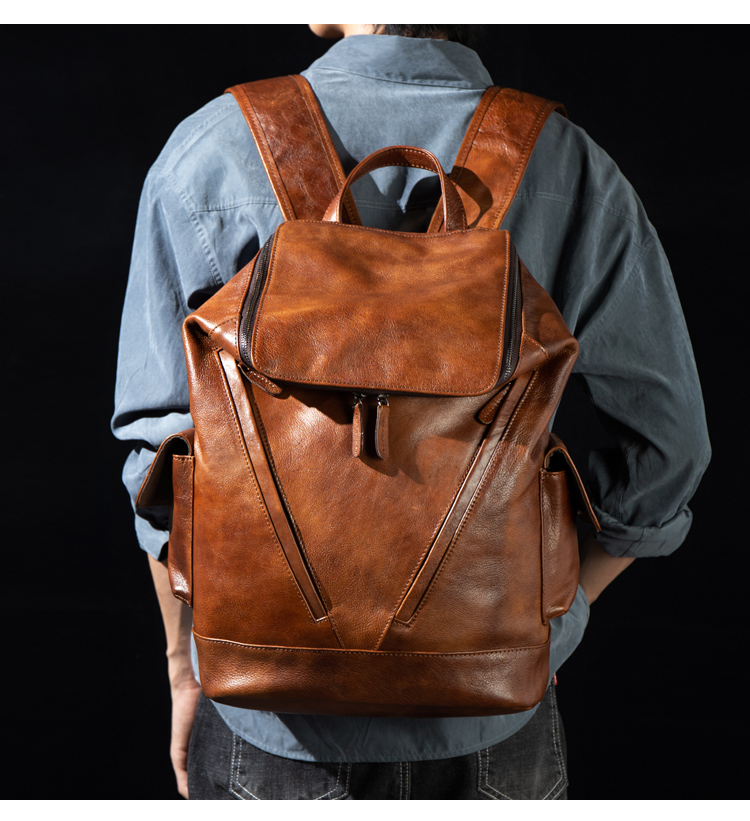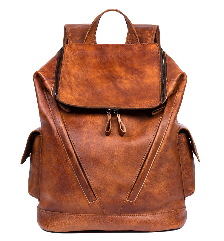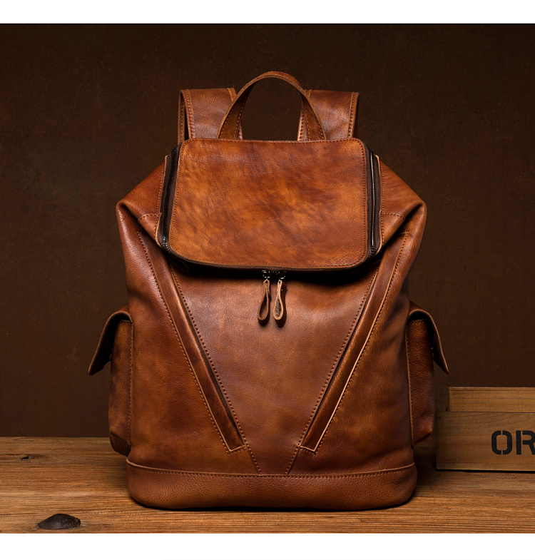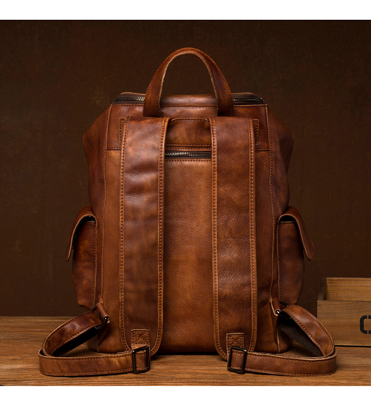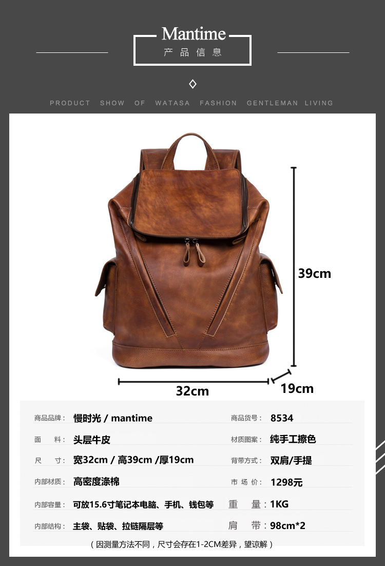 慢时光新品植鞣皮手工擦色复古头层牛皮休闲原创真皮双肩旅行背包