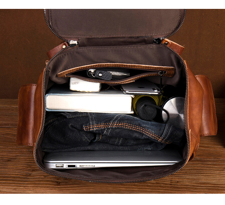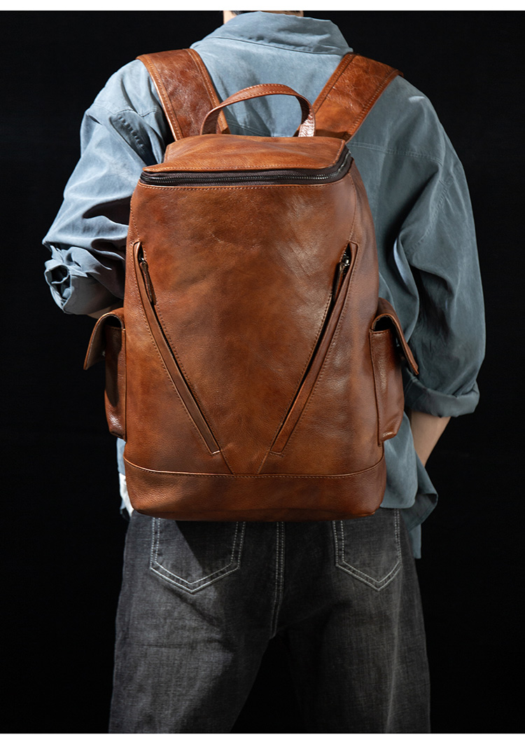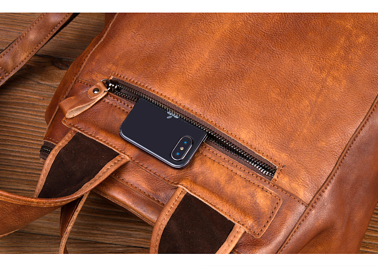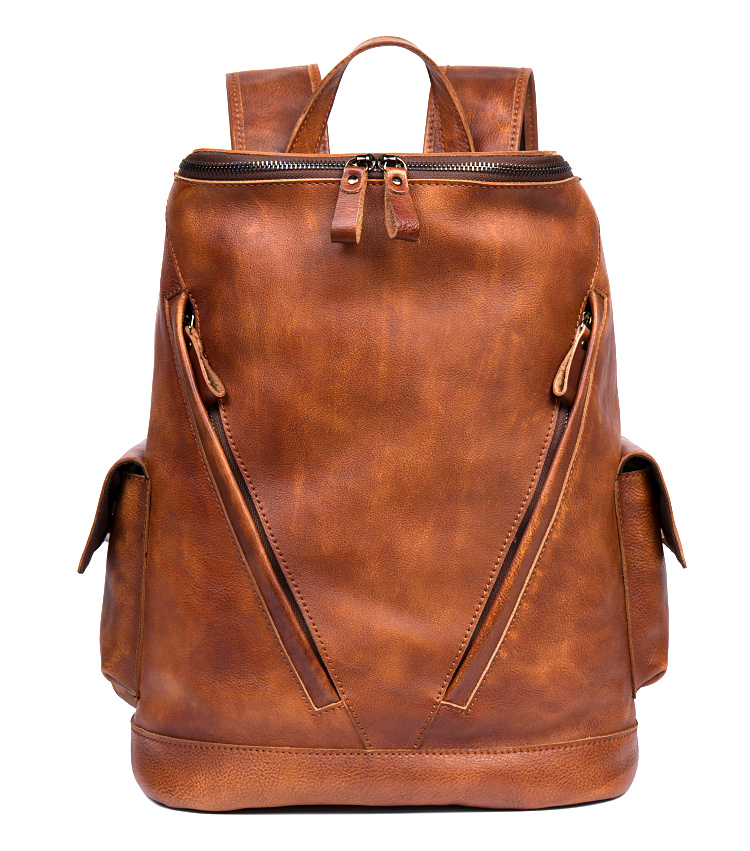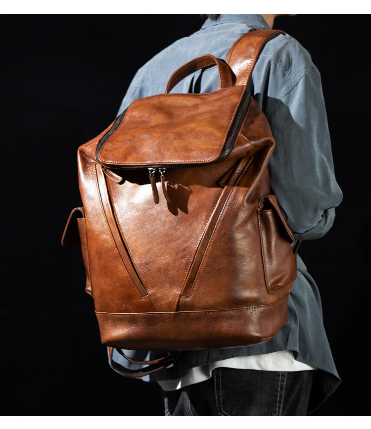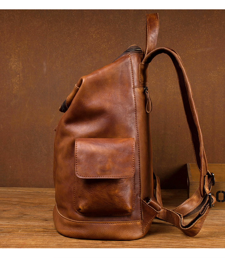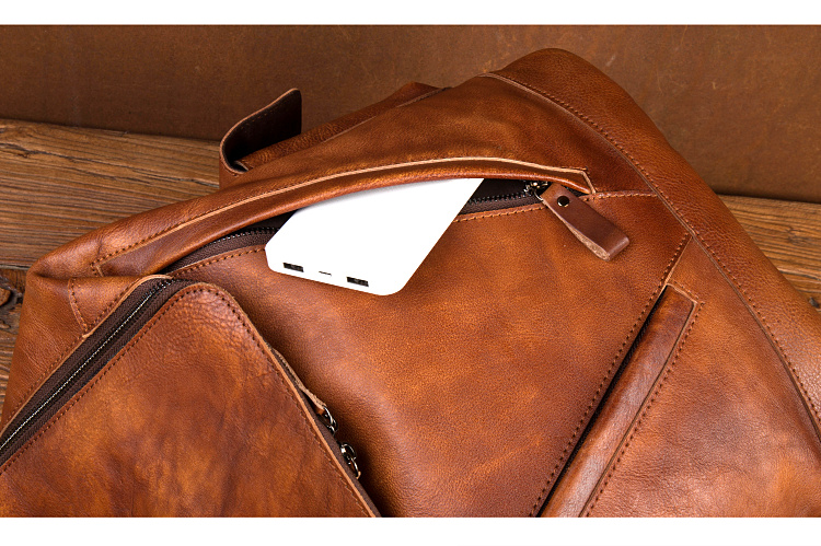 慢时光新品植鞣皮手工擦色复古头层牛皮休闲原创真皮双肩旅行背包