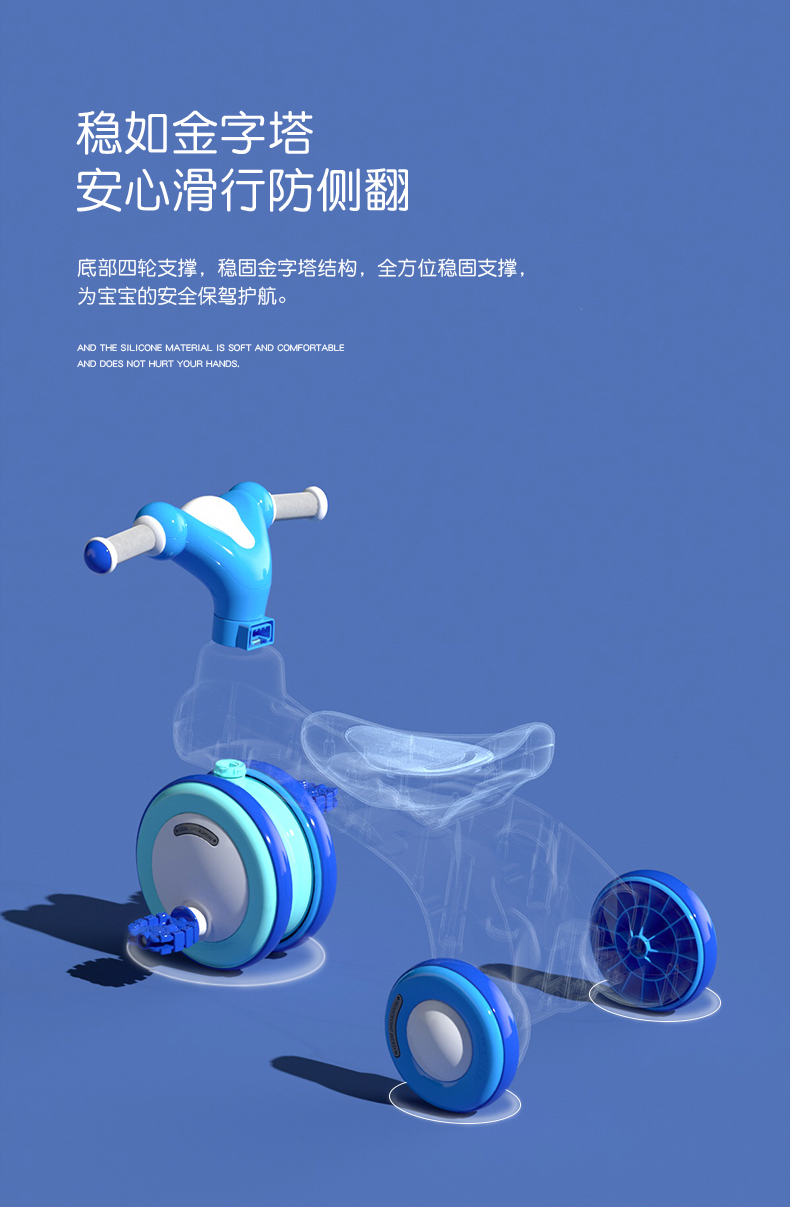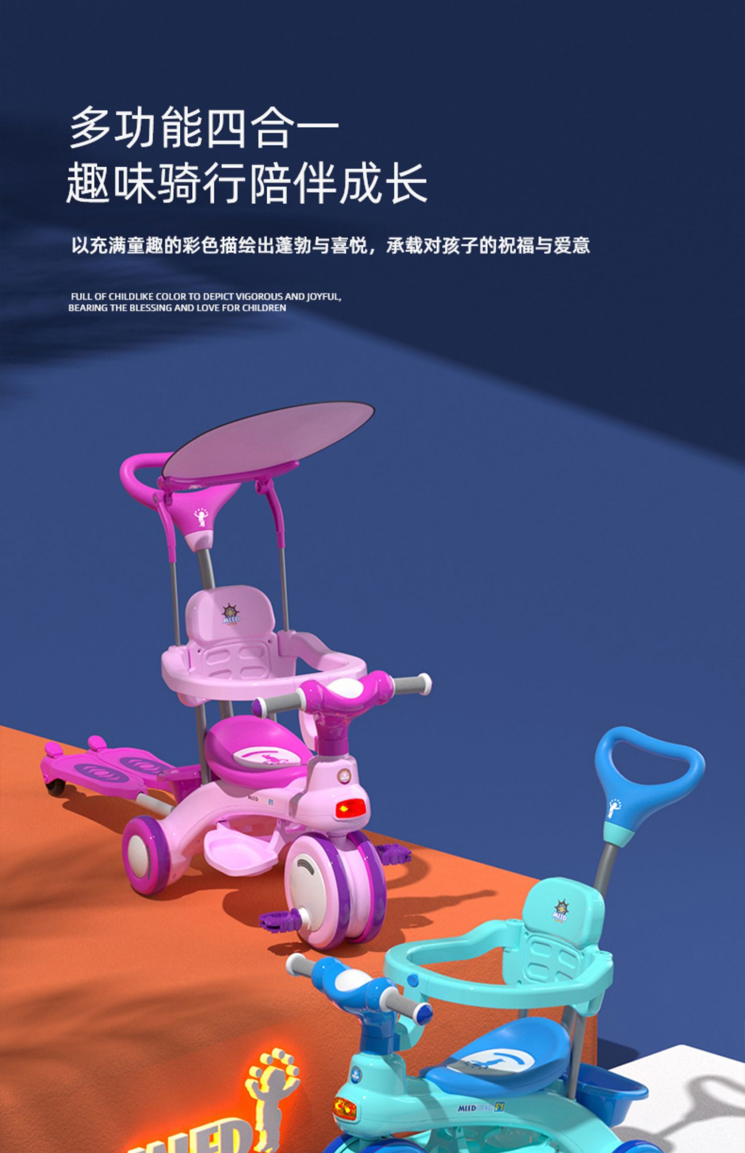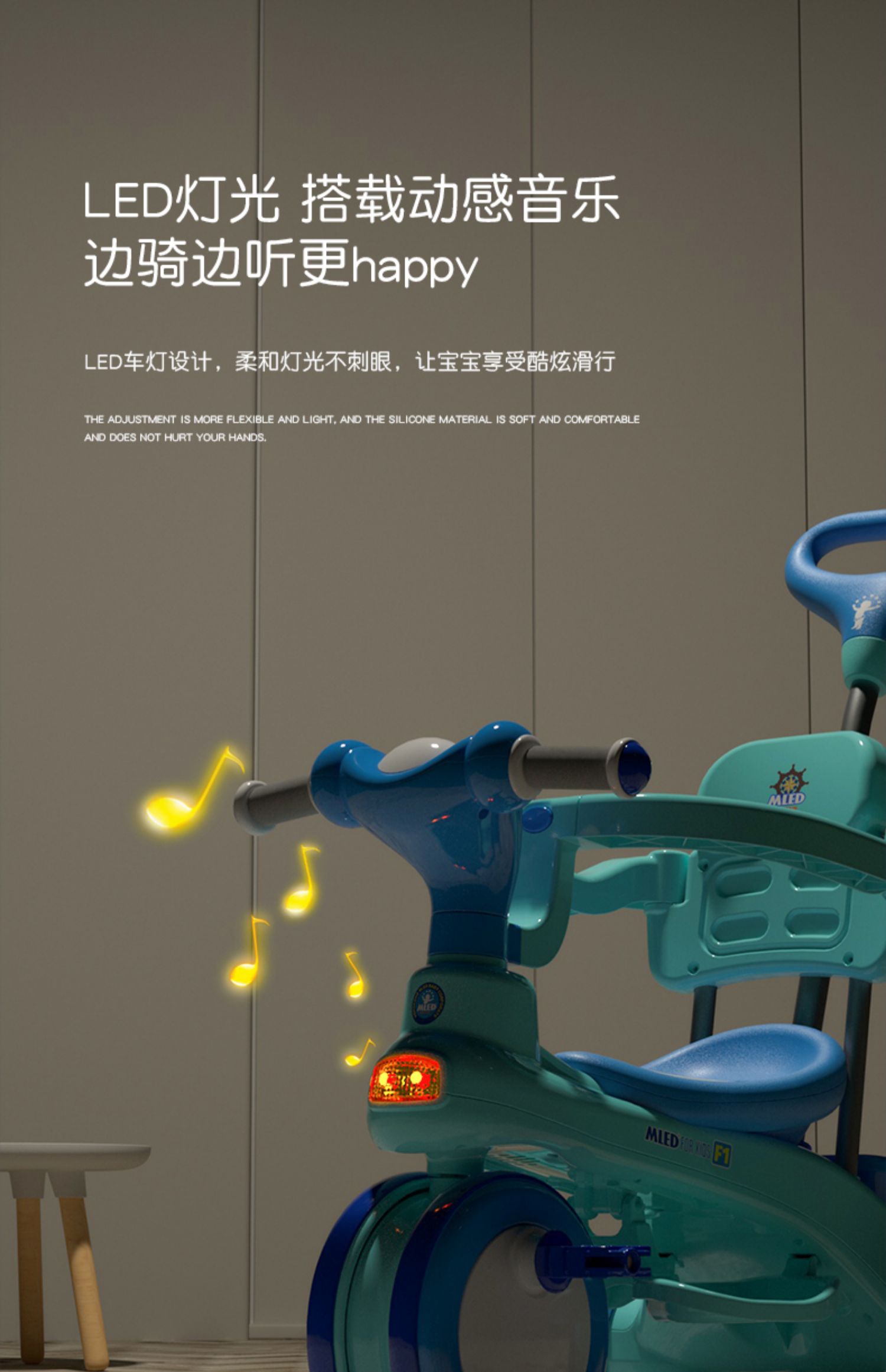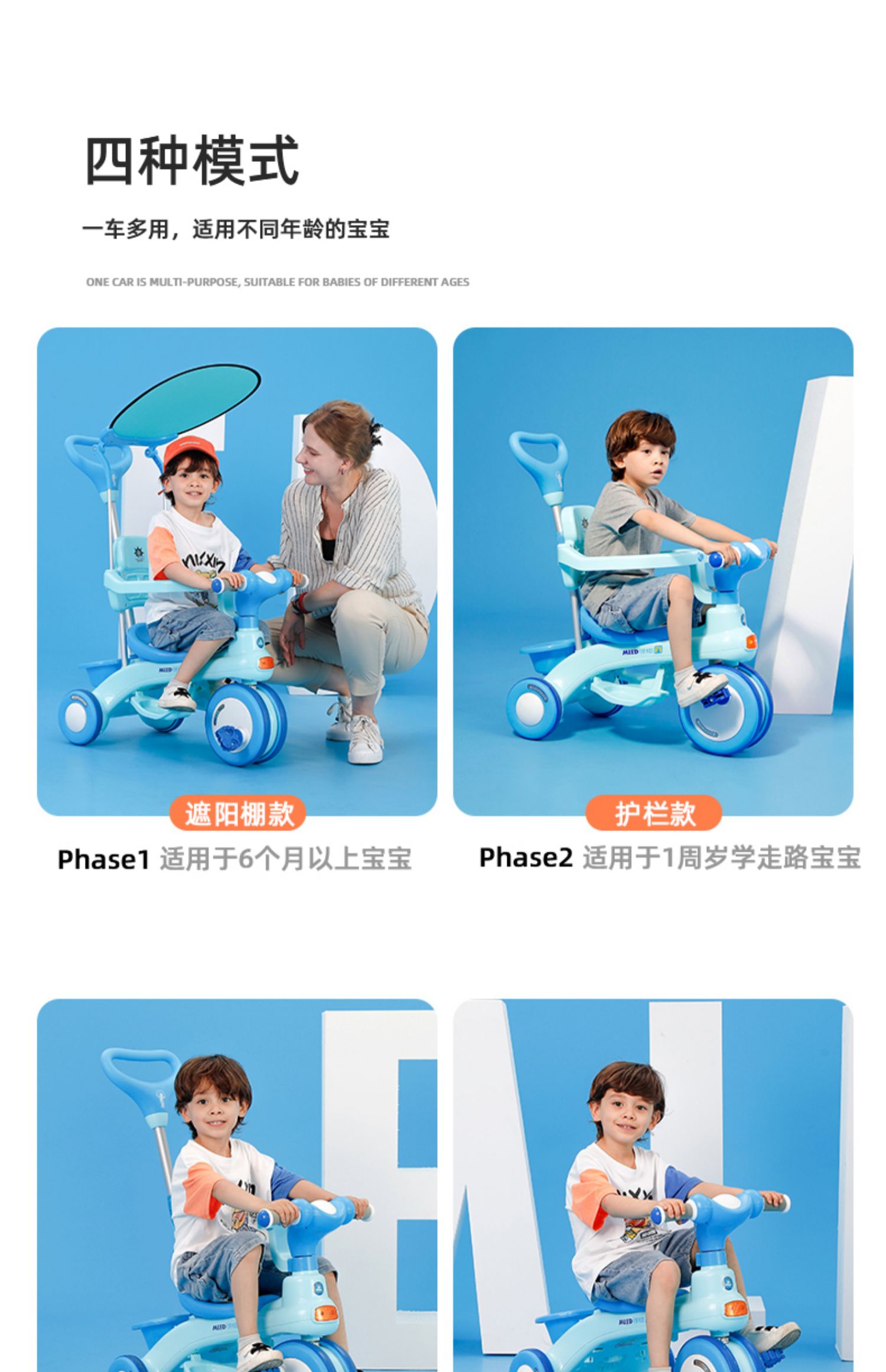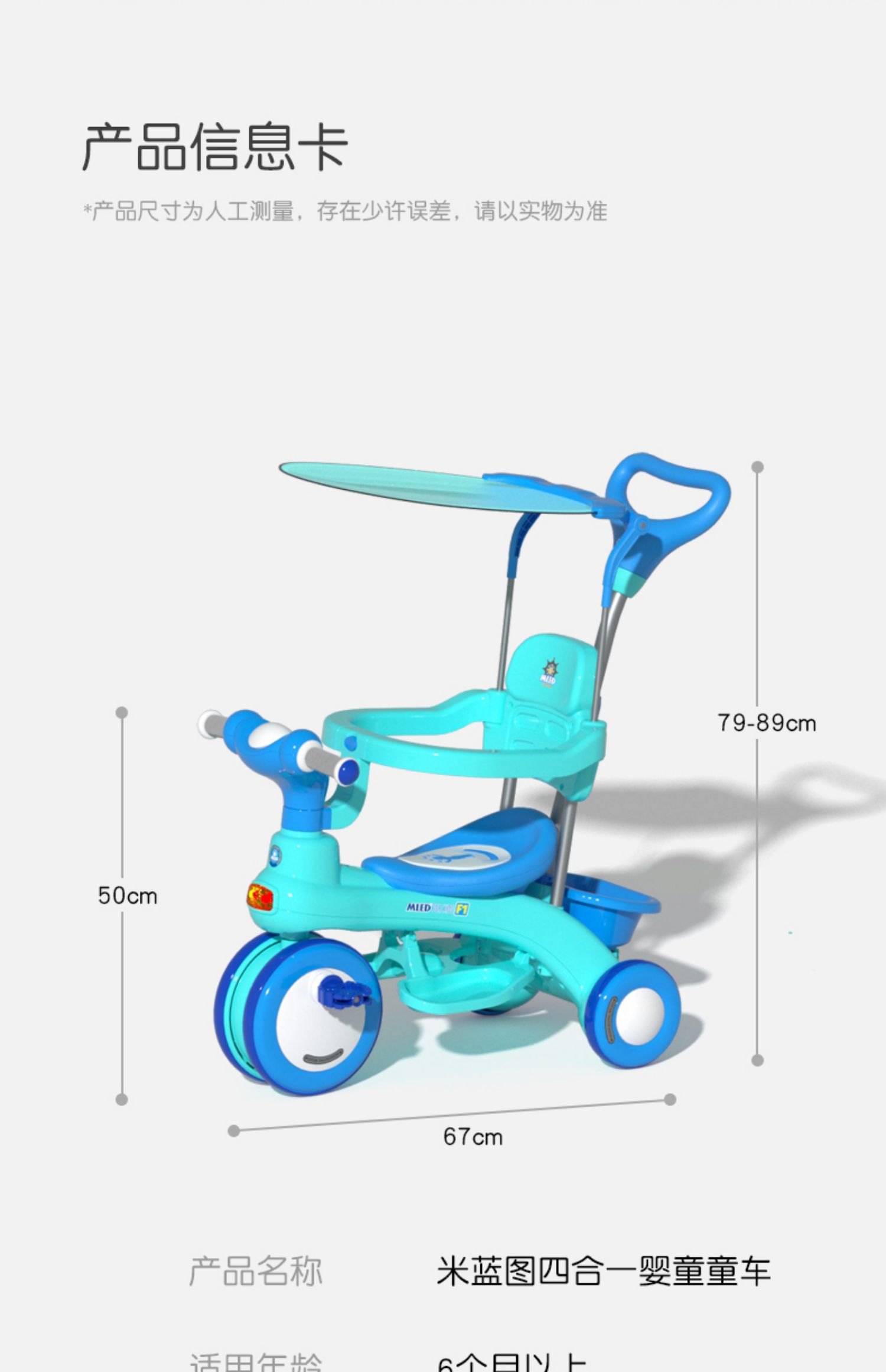 米蓝图宝宝儿童三轮车手推车小孩童车脚踏车婴幼儿童自行车1-3岁
