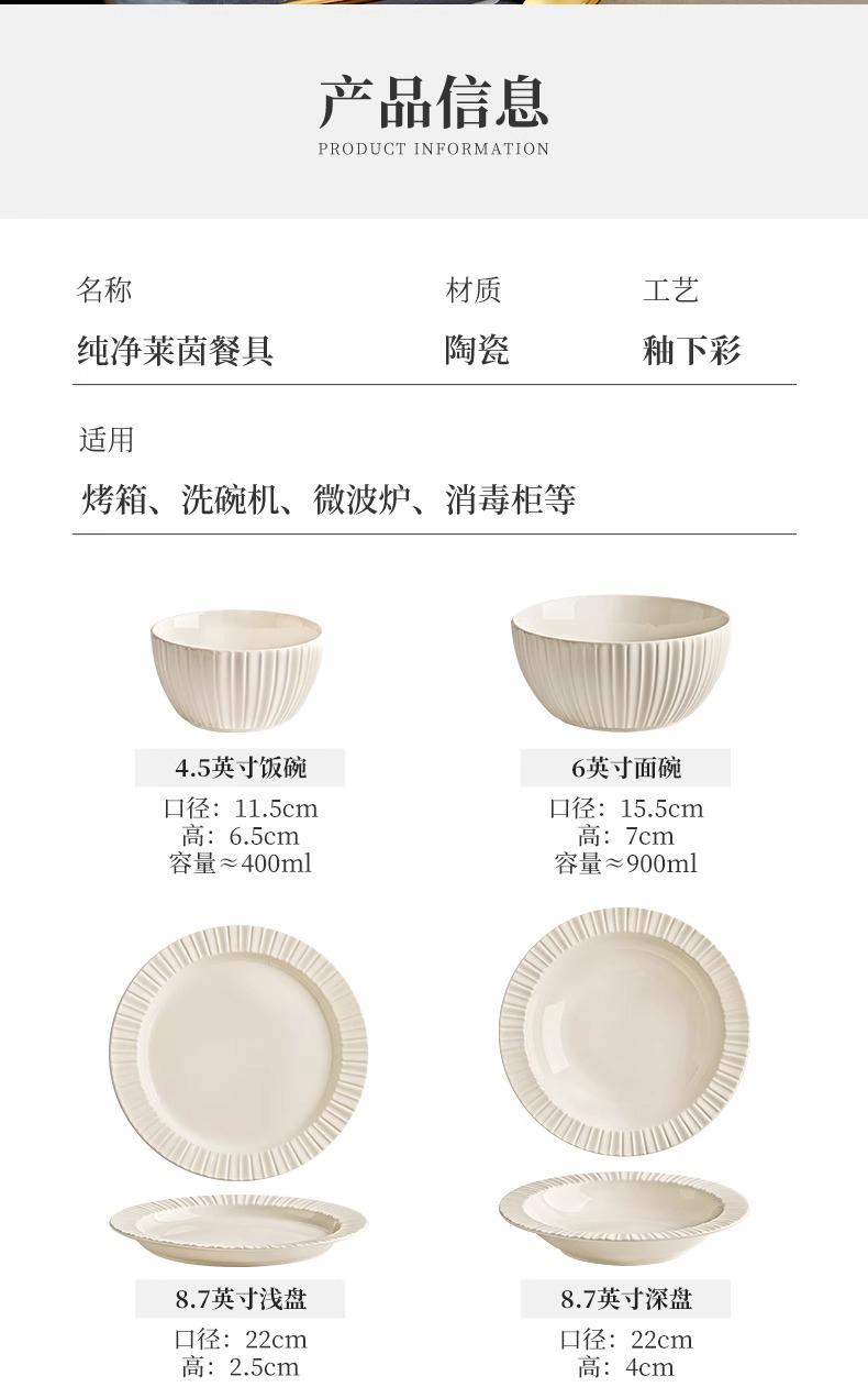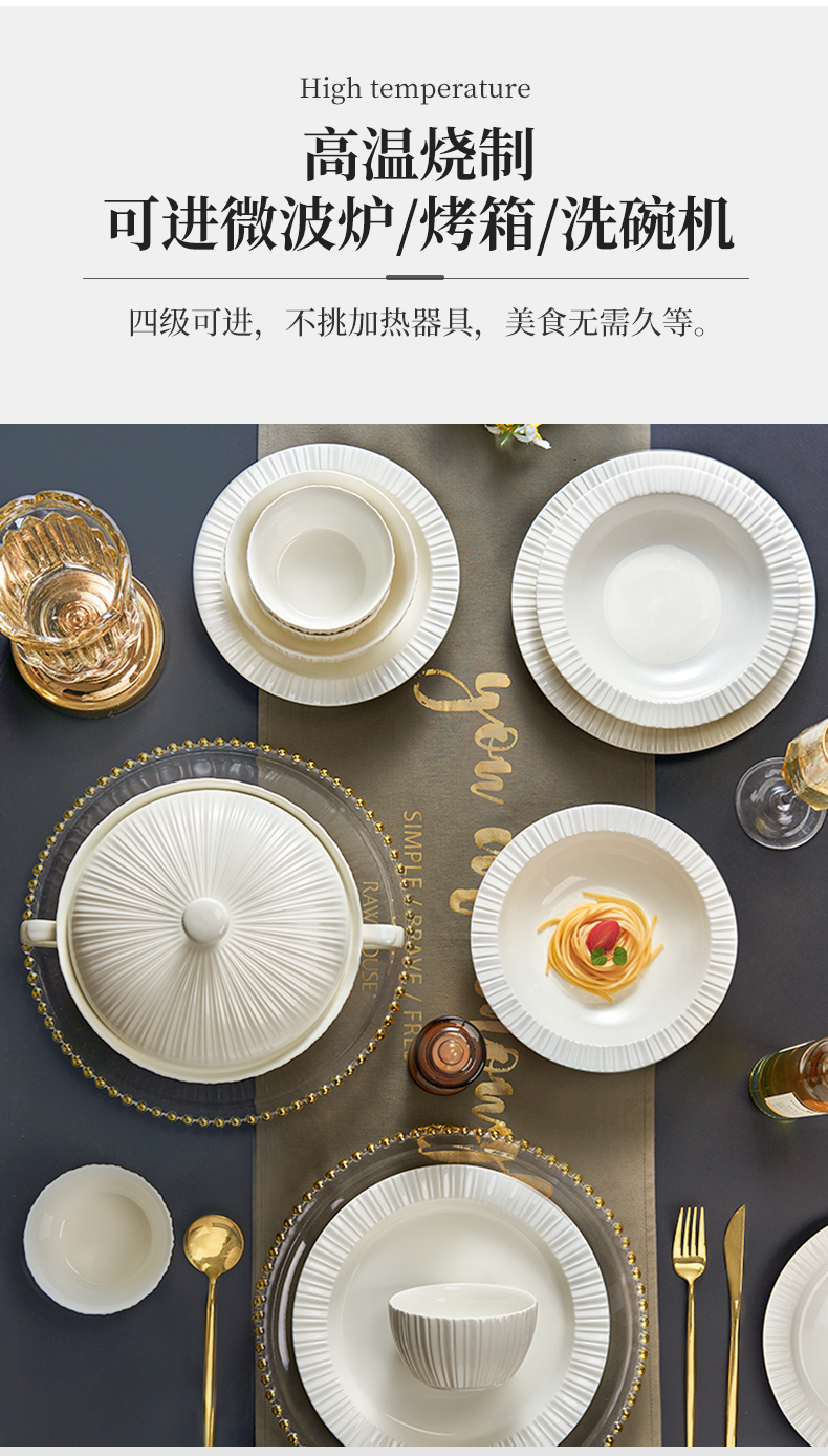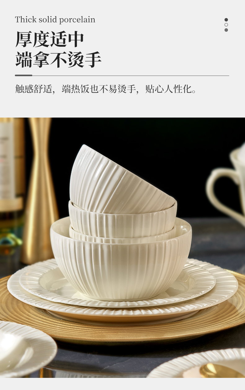 高级感碗碟套装家用2025新款陶瓷盘子碗筷纯白釉下彩餐具乔迁新居