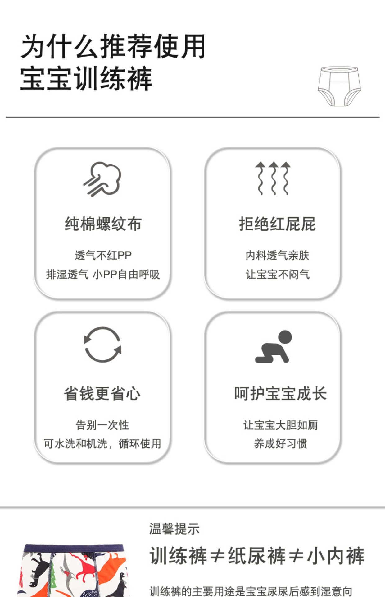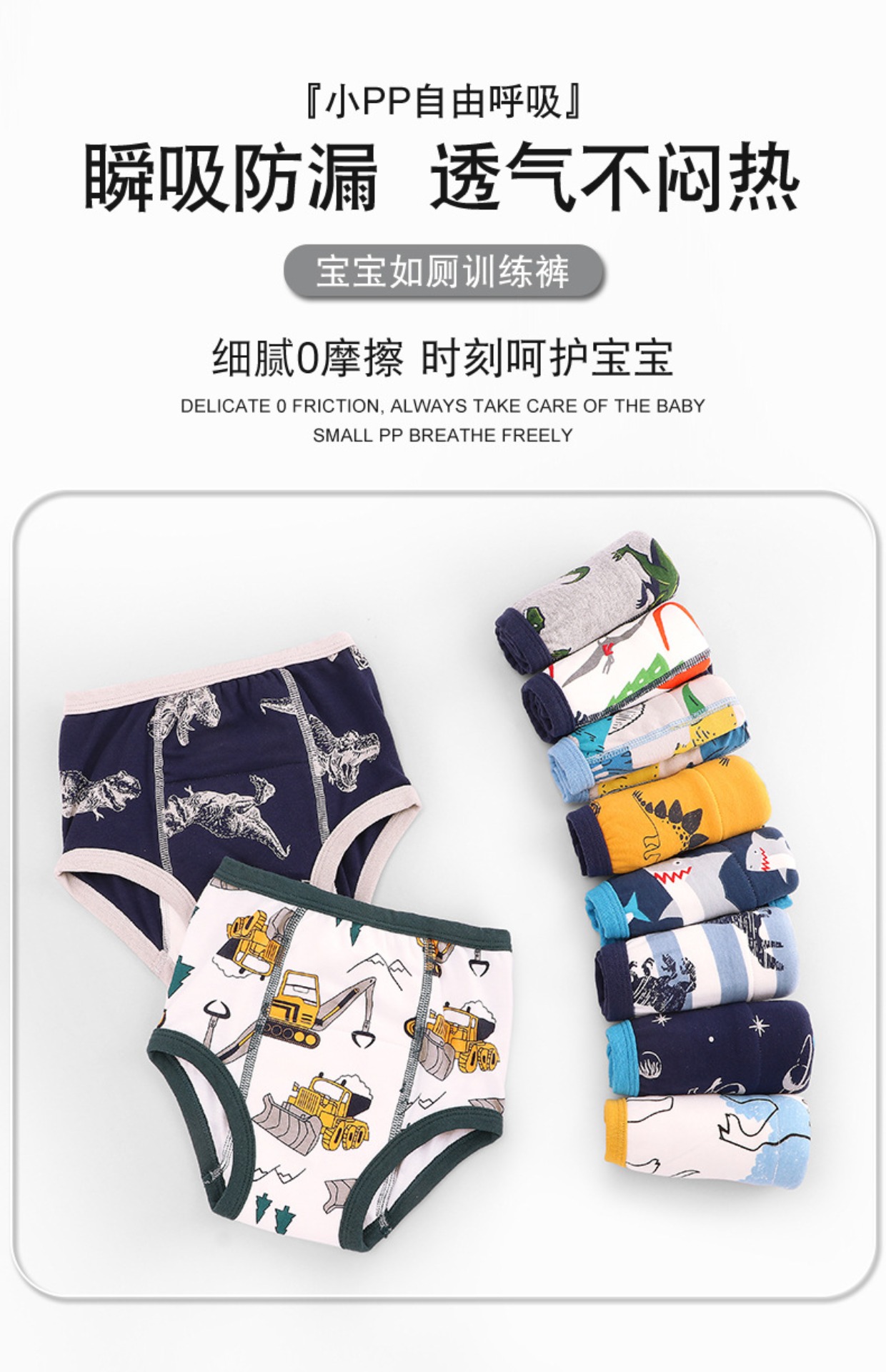 婴儿学习裤跨境婴幼儿如厕纯棉卡通恐龙训练裤戒尿防水宝宝学习裤