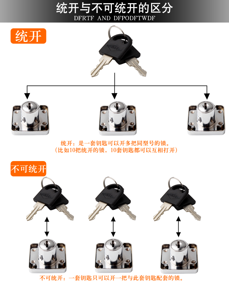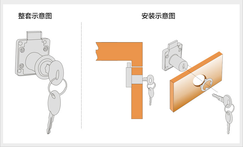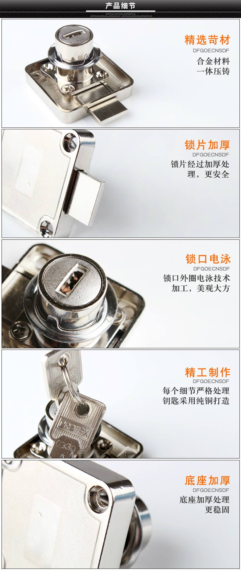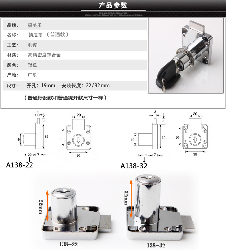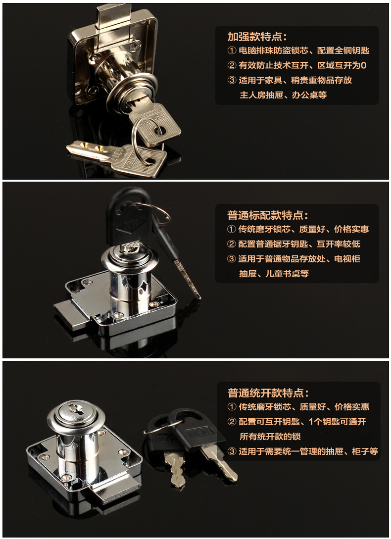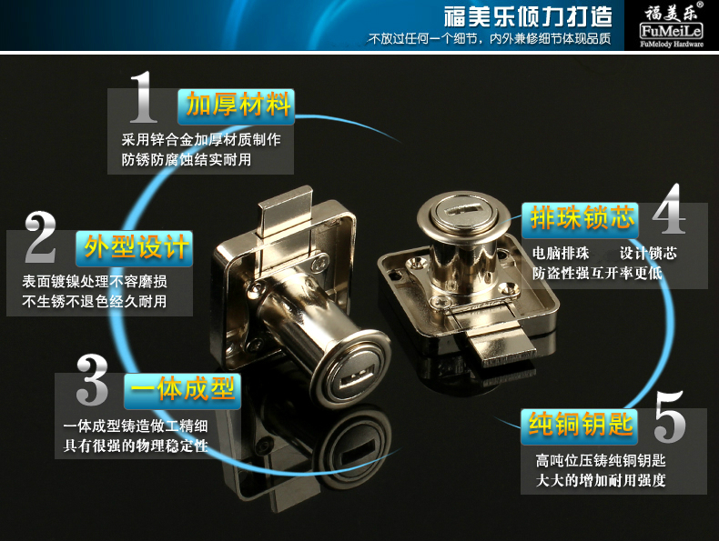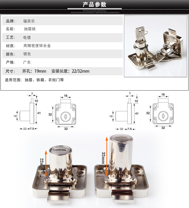 福美乐电脑防盗钥匙抽屉锁 办公桌文件柜锁家用衣柜柜门柜子锁