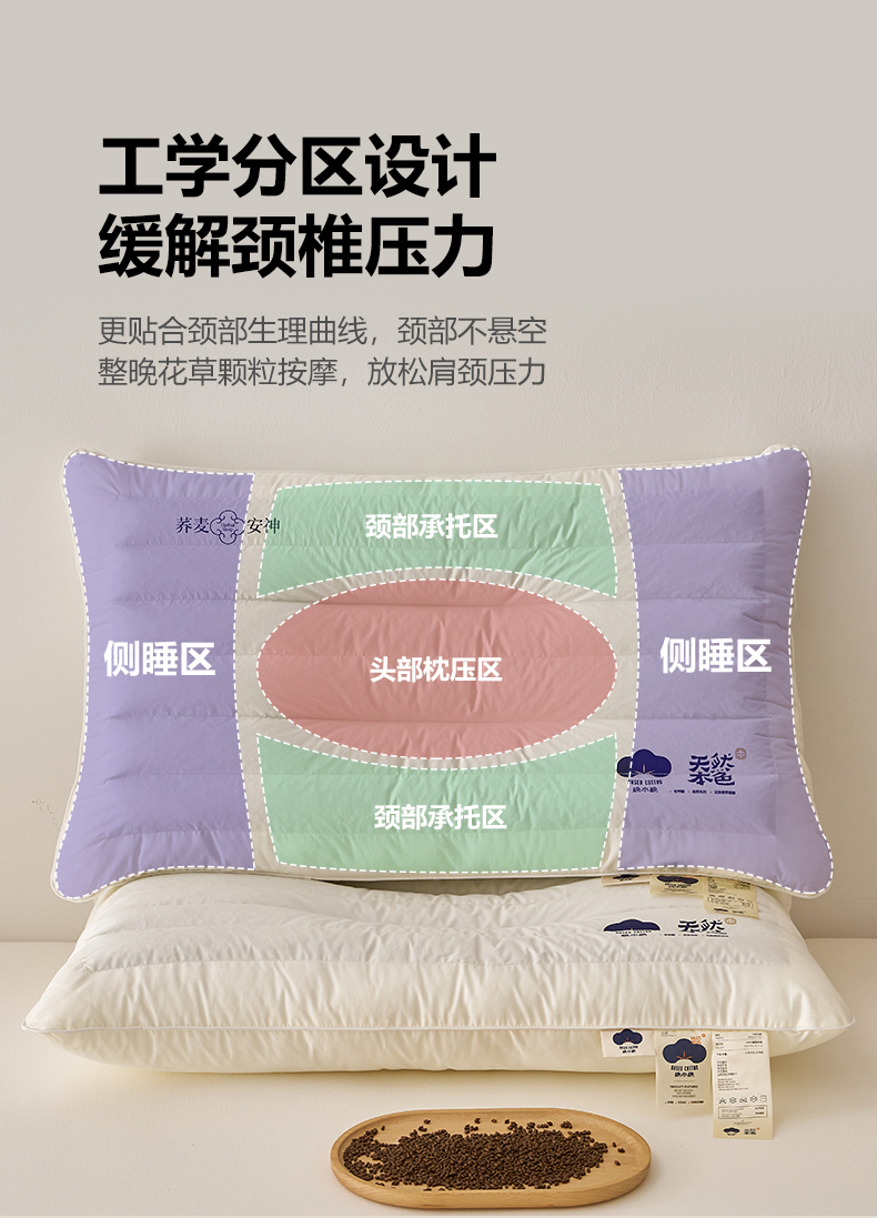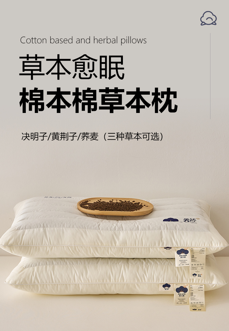 2025新款棉本棉草本枕头助荞麦决明子植物护颈椎睡眠枕芯花草分区
