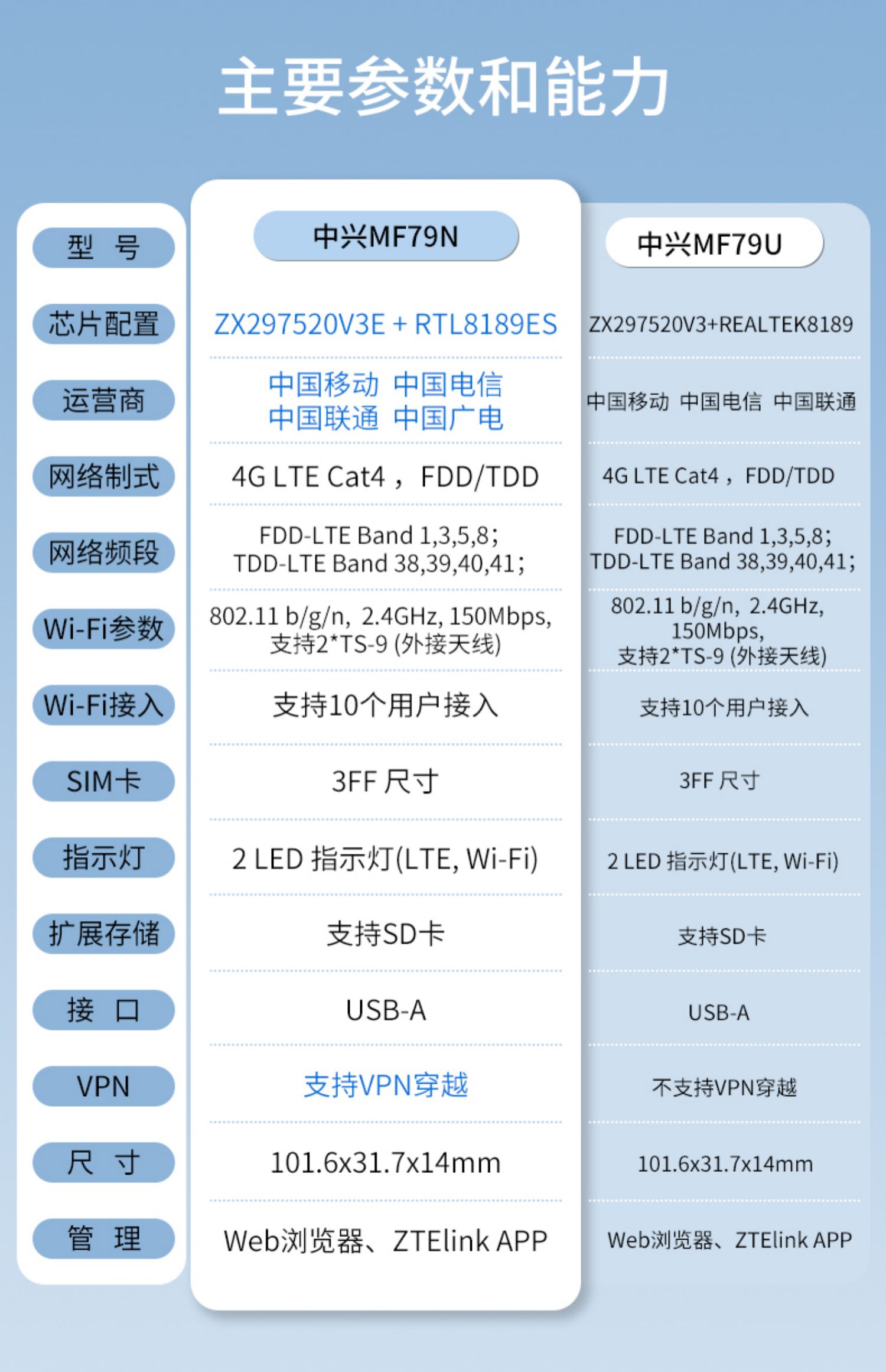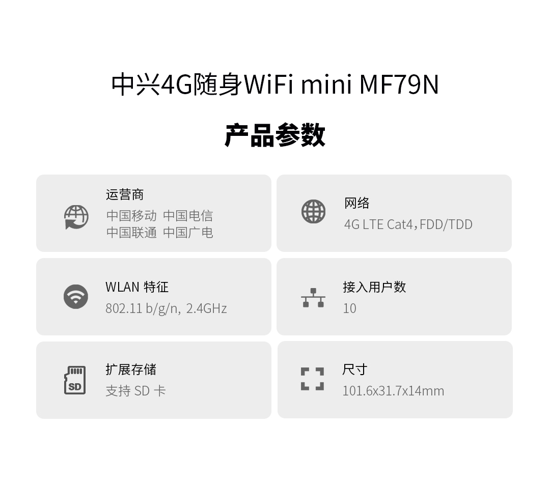 中兴MF79N/U全网通TD-LTE无线上网设备笔记本电脑USB卡托数据终端Mini随身wifi车载办公移动4G热点