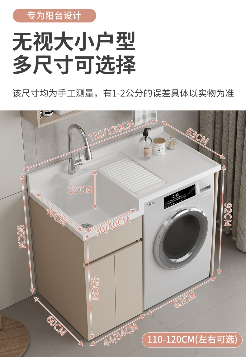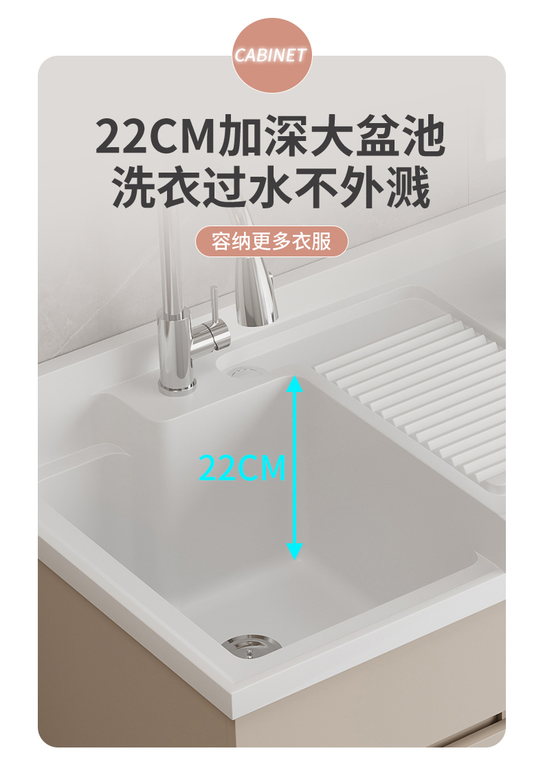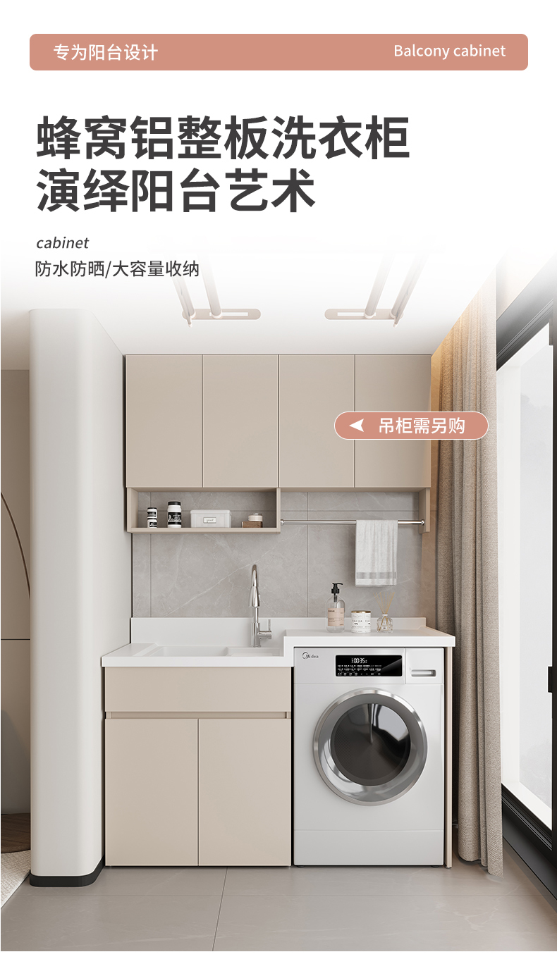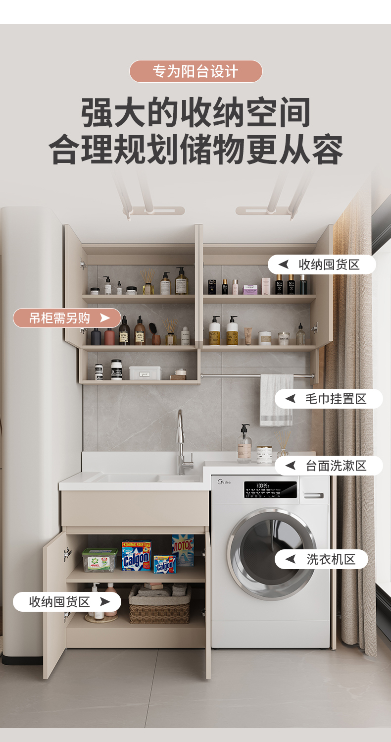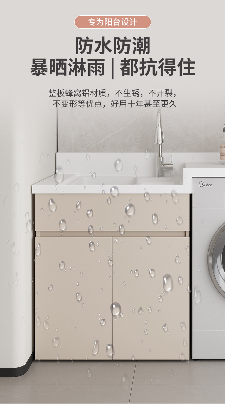 蜂窝铝洗衣柜阳台洗衣池带搓板一体家用人造石水槽台盆浴室柜简约