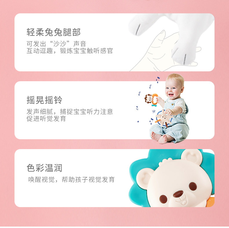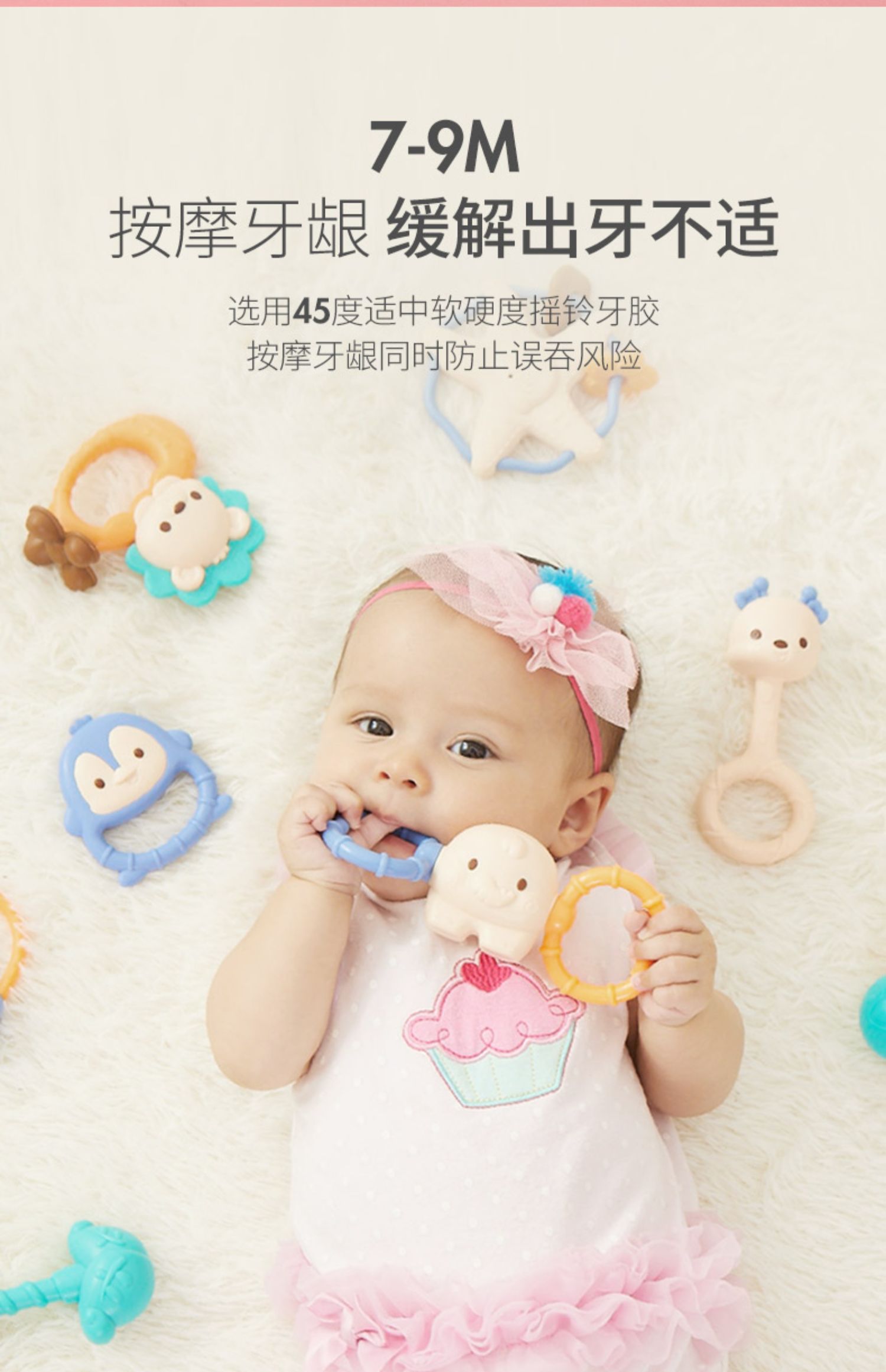 澳贝牙胶摇铃玩具宝宝0-9月新生婴幼儿安抚启蒙玩偶礼盒套装玩具
