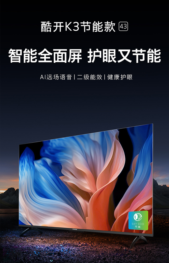 创维酷开K3节能款 43英寸语音金属全面屏平板液晶电视机43P3DGT