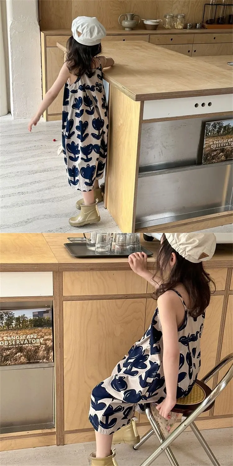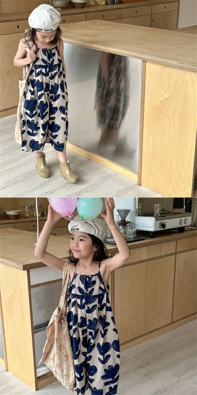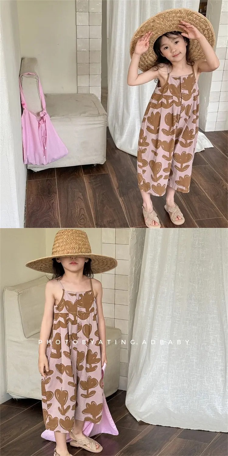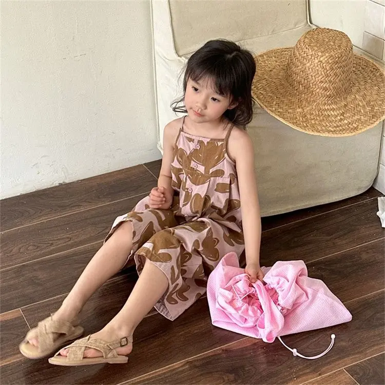 女童夏季背带裤宝宝吊带新款洋气连体连身韩版衣阔儿童七分裤超萌