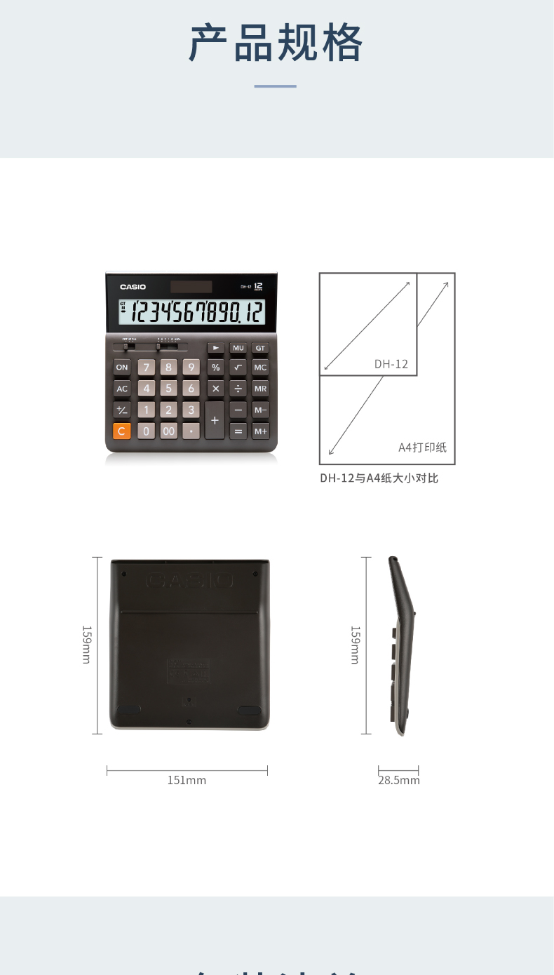 Casio/卡西欧 MH/DH-12 宽屏计算器 日常商务太阳能计算机 财务会计超市前台办公大屏幕大按键双重电源计算器